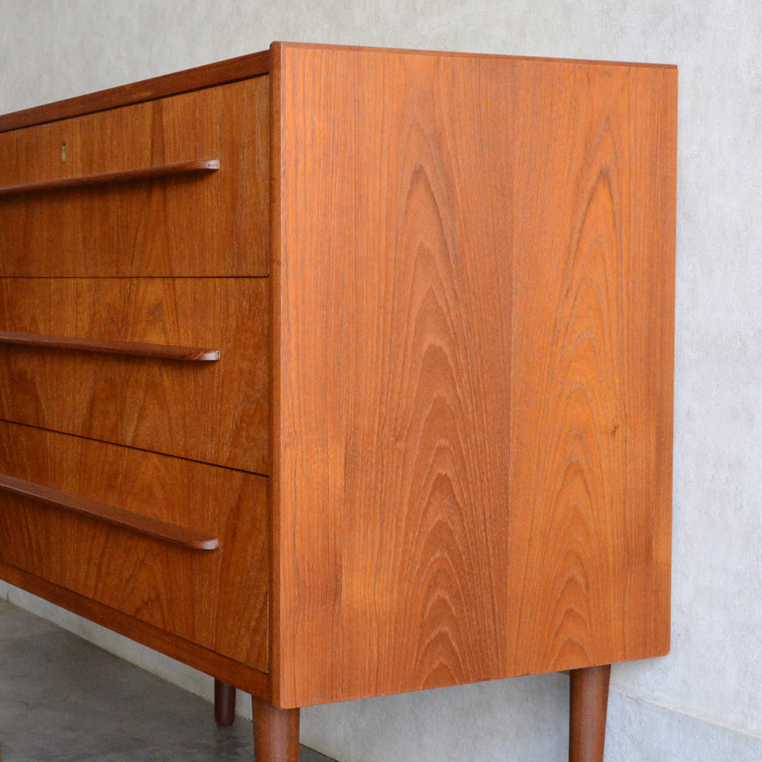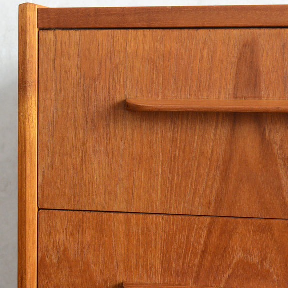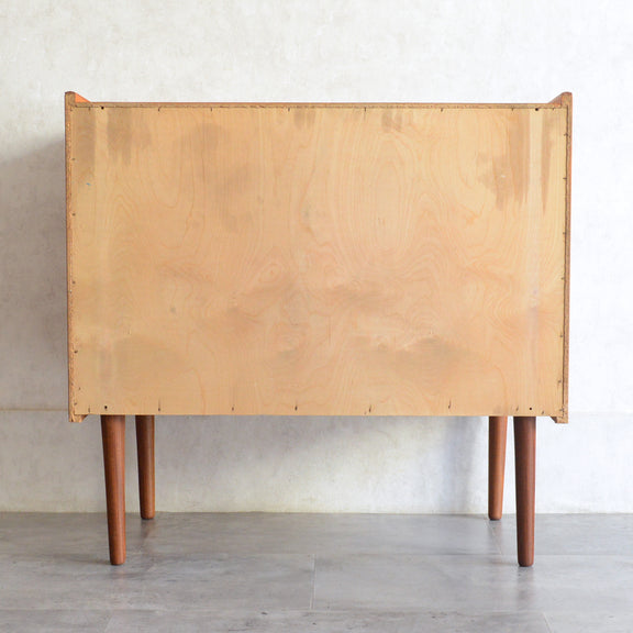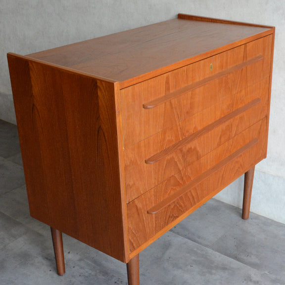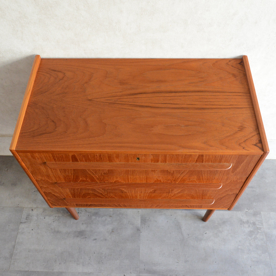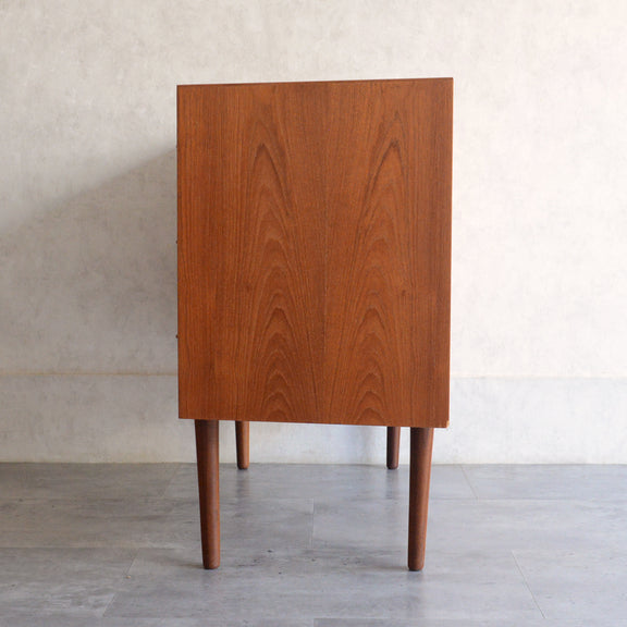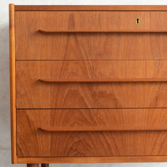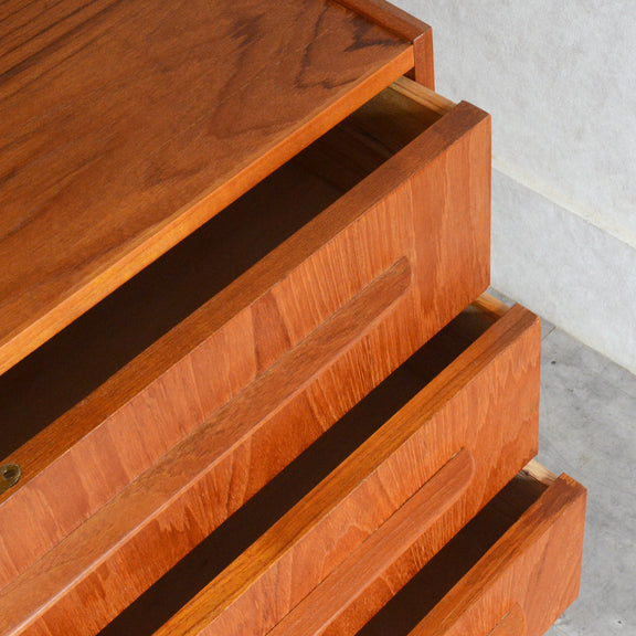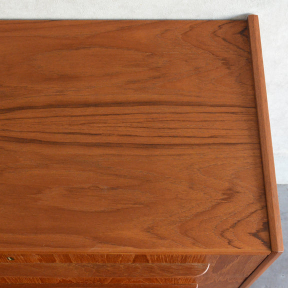 デンマークにて買い付けたヴィンテージチークの木目が美しい3段チェスト。