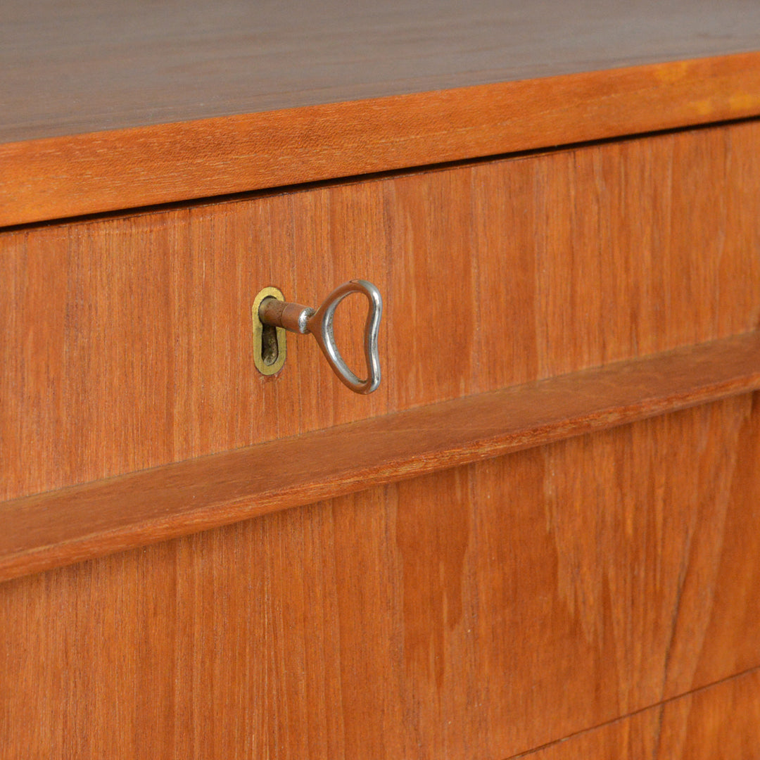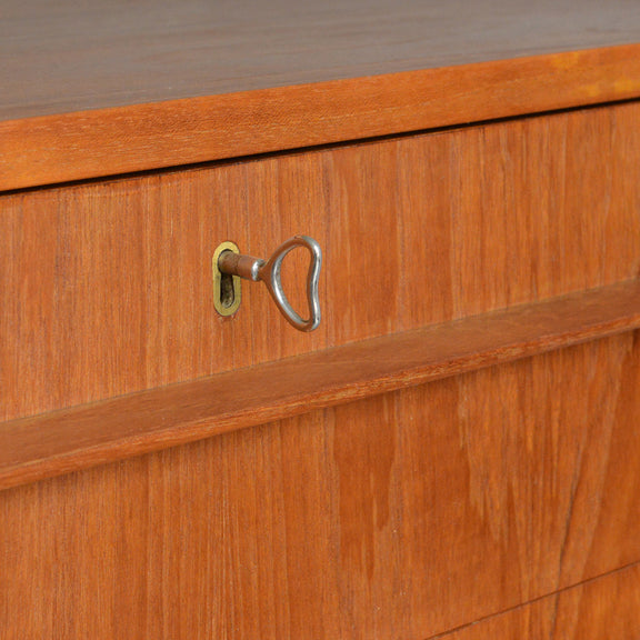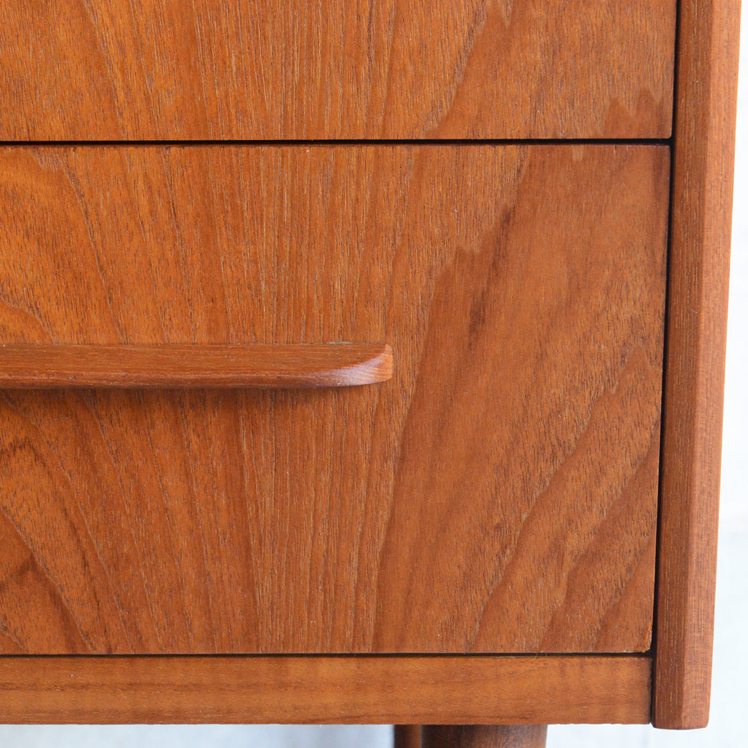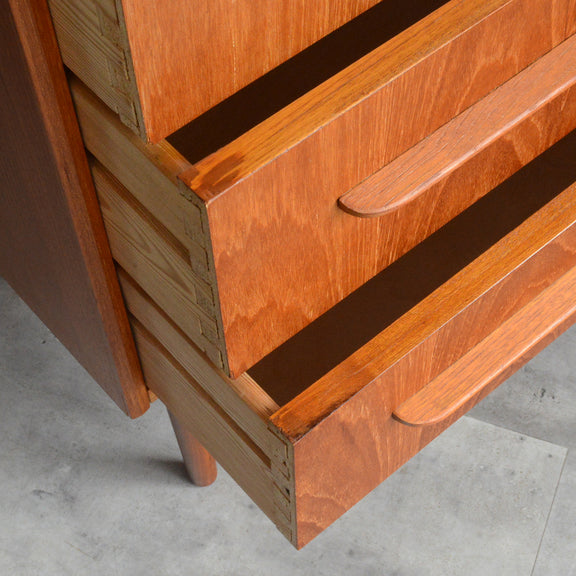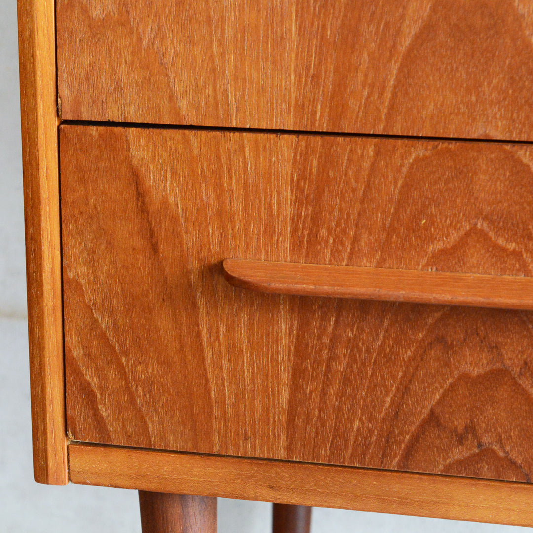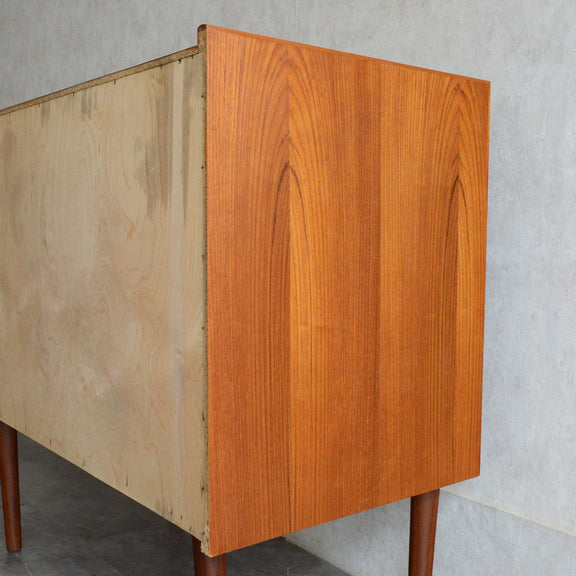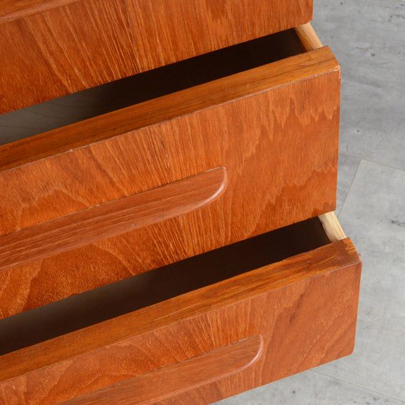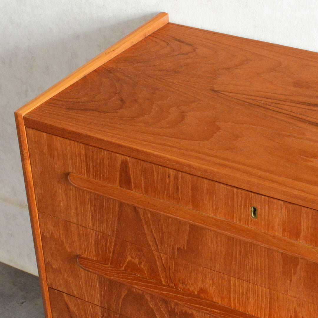 デンマークにて買い付けたヴィンテージチークの木目が美しい3段チェスト。