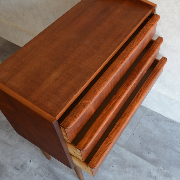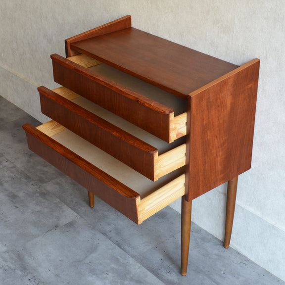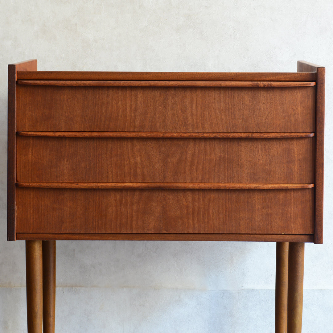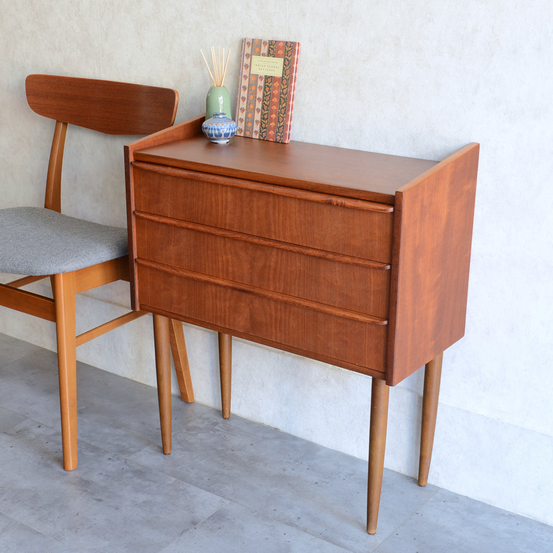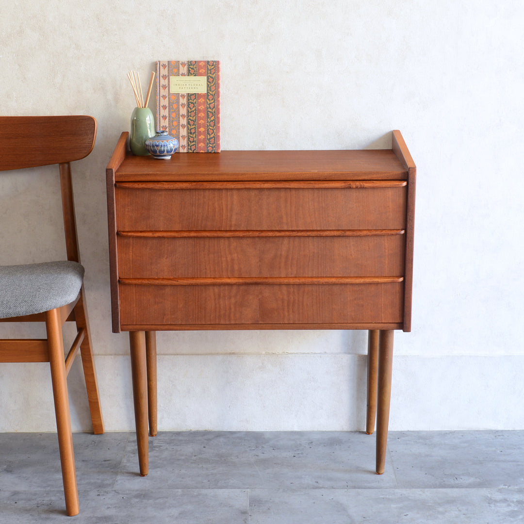 北欧デザインらしいすらりと長めの脚部が印象的な3段チェスト。