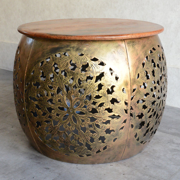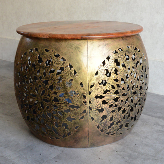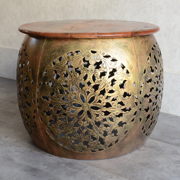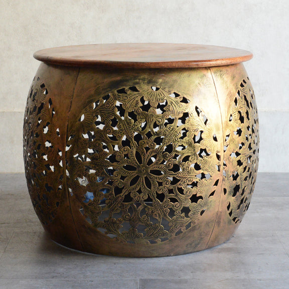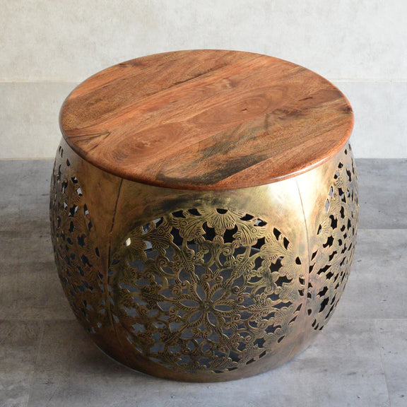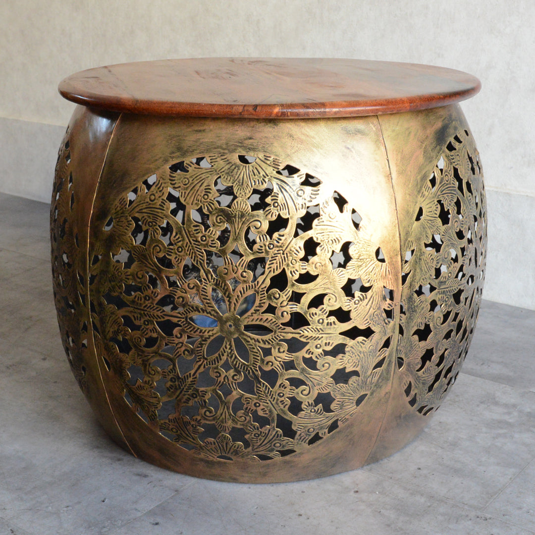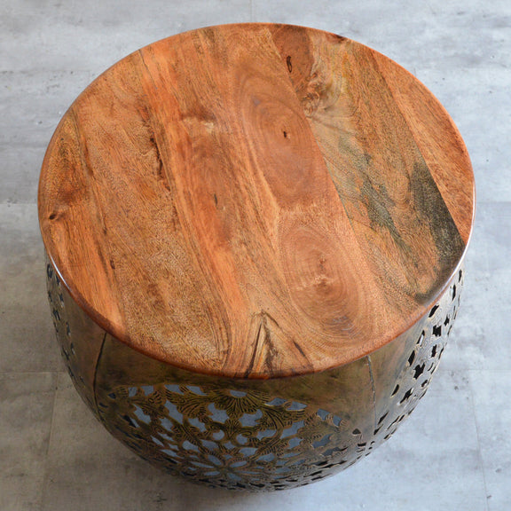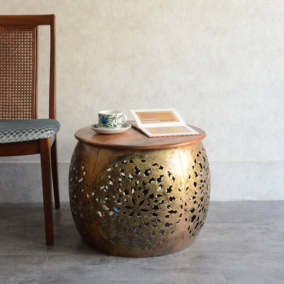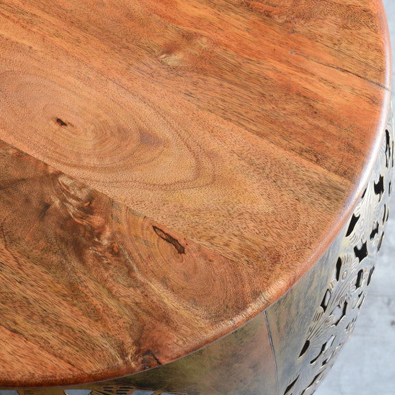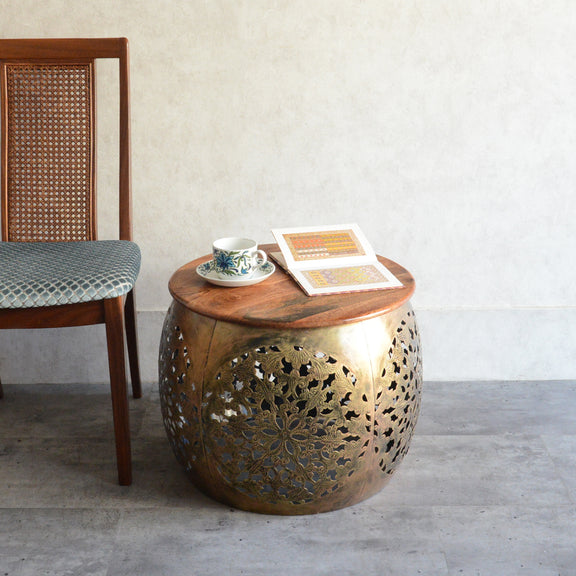 珍しいマンウッドの無垢材を天板に使ったサイドテーブル。