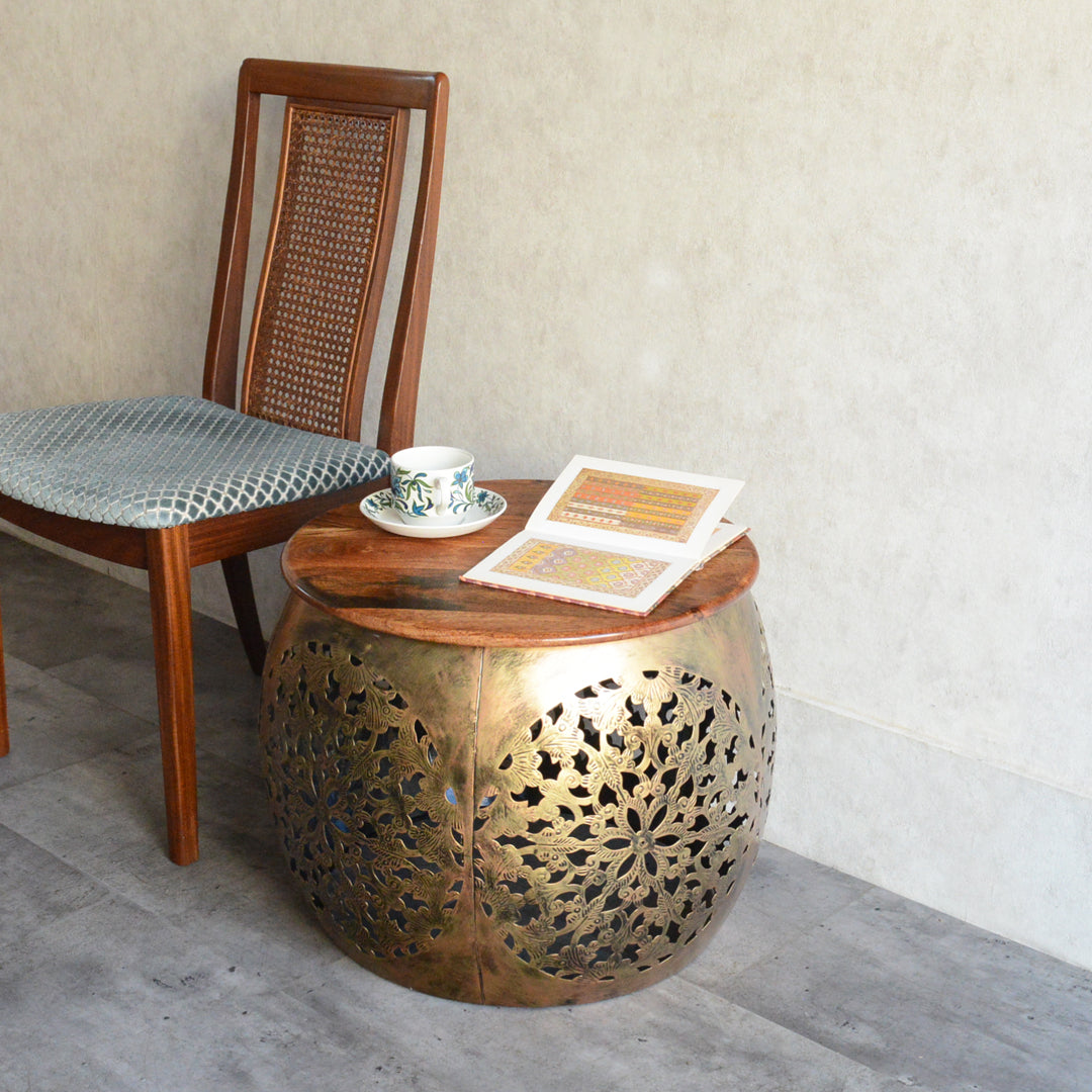 画像の様にチェアのサイドでドリンクを置くサイドテーブルとしてもお使いになれますし、プランター等の飾り台としてもお勧めです。
