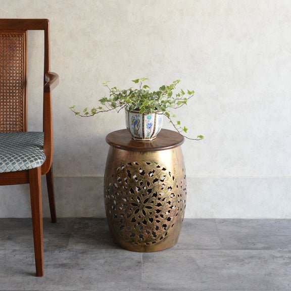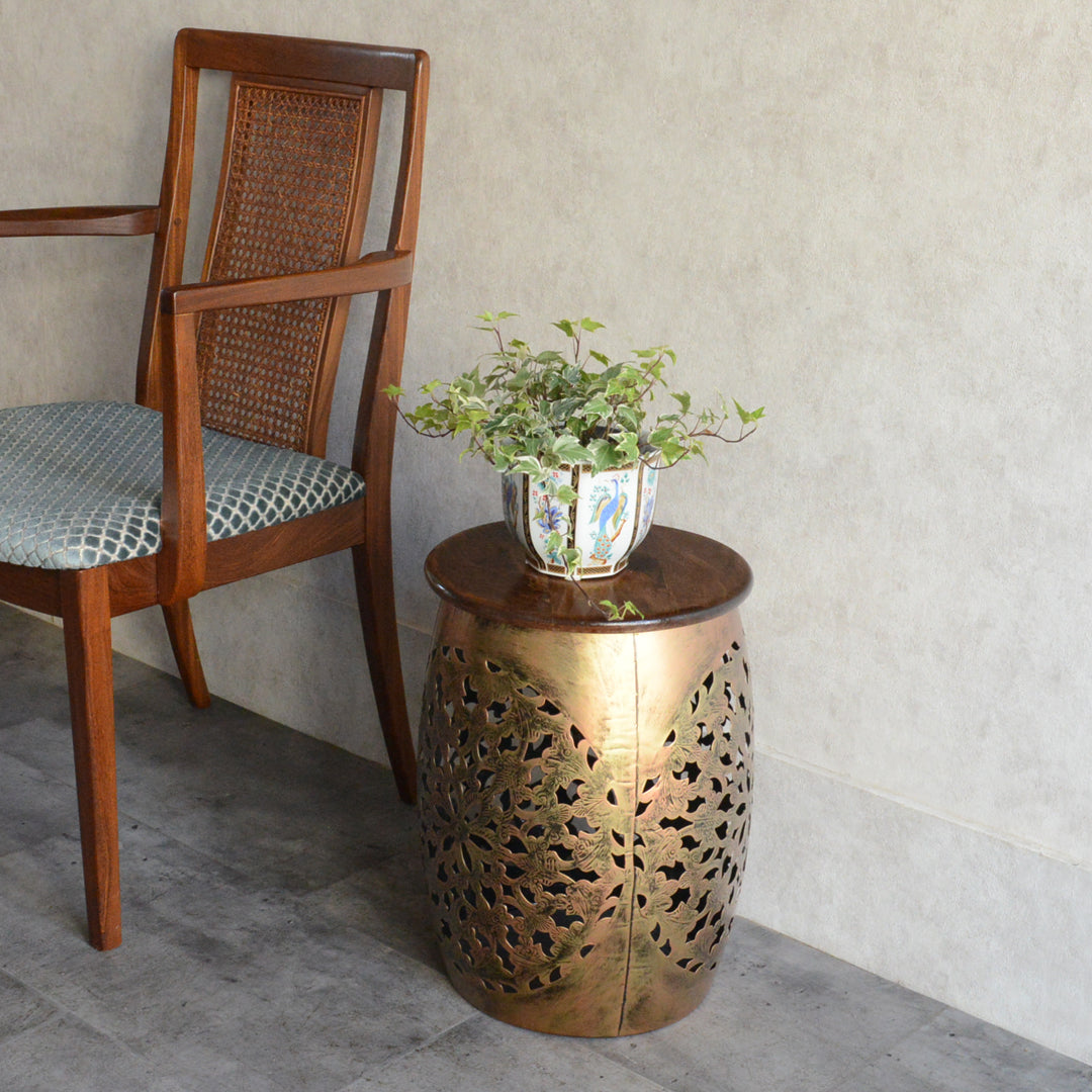 画像の様にプランター等の飾り台としてもお使いになれますし、チェアの傍でドリンクを置くサイドテーブルや、スツールとしてもお勧めです。