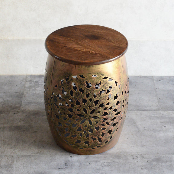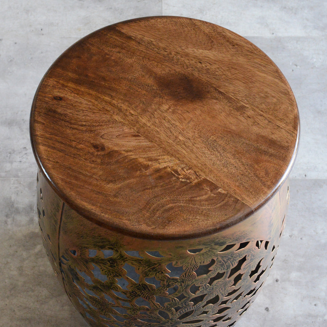 珍しいマンゴーウッドの無垢材を天板に使ったサイドテーブル。
