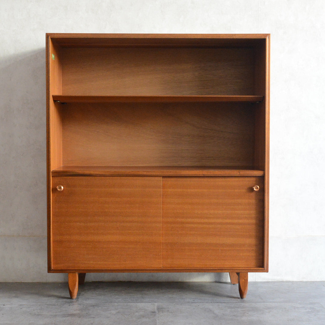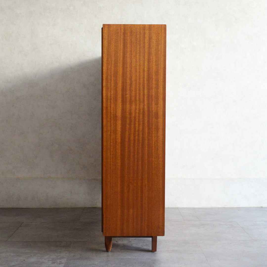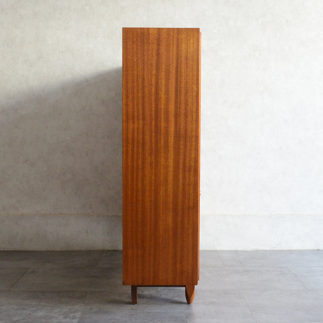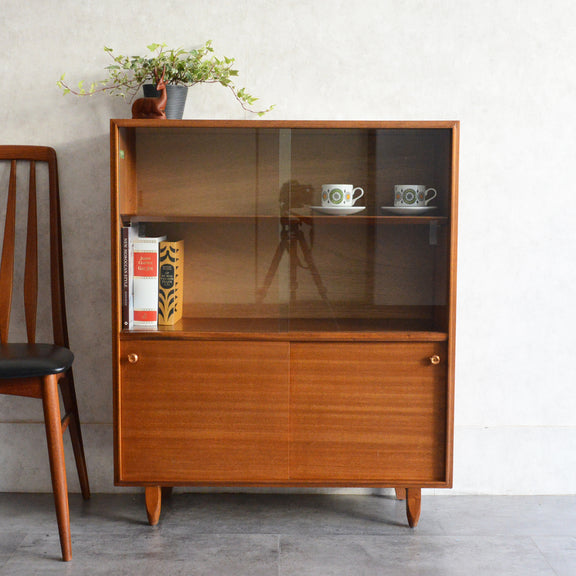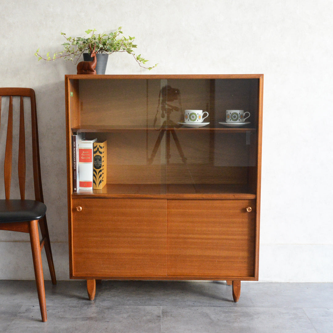 英国ミッドセンチュリー期のインテリアメーカー BEAVER & TAPLEY LTD(ビーバー&タプレイ)により1960年代に製造された、ミッドセンチュリーらしい脚付のコンパクトなチークガラスキャビネット