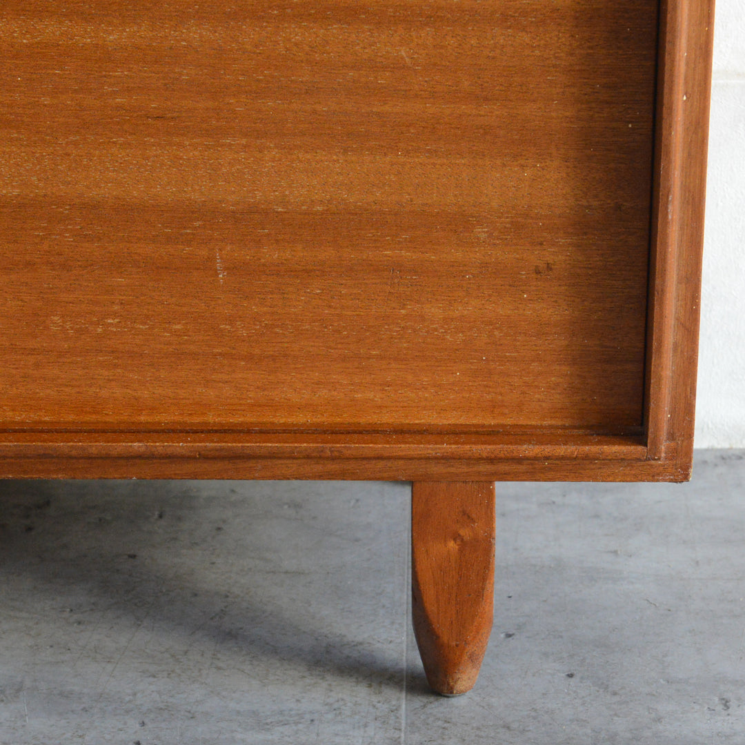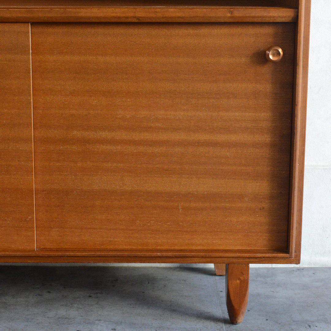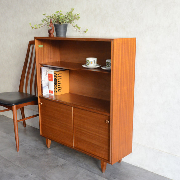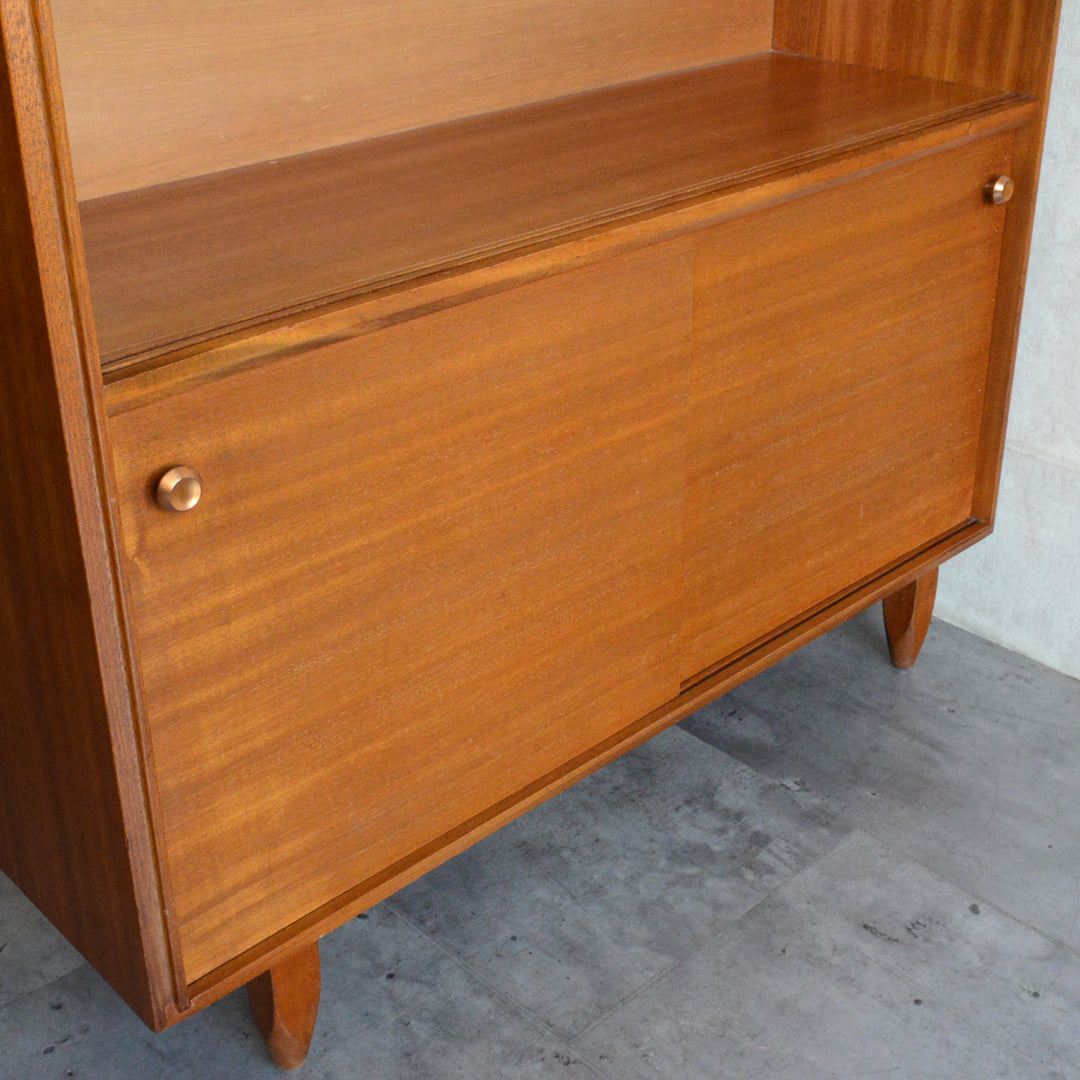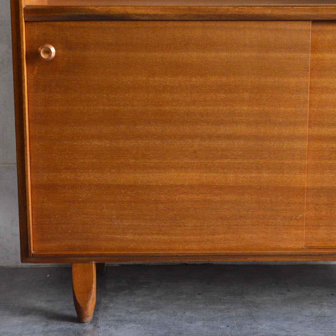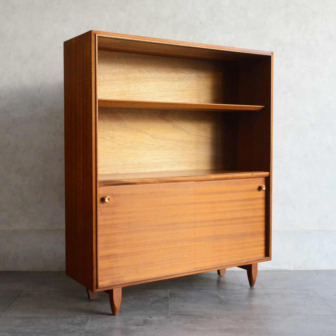 英国ミッドセンチュリー期のインテリアメーカー BEAVER & TAPLEY LTD(ビーバー&タプレイ)により1960年代に製造された、ミッドセンチュリーらしい脚付のコンパクトなチークガラスキャビネット