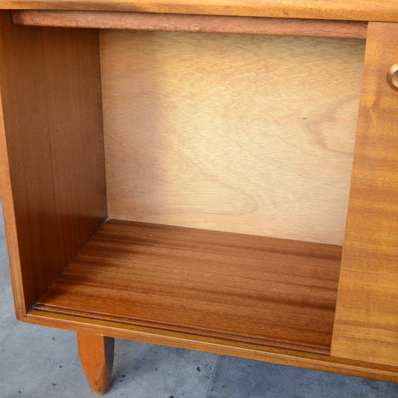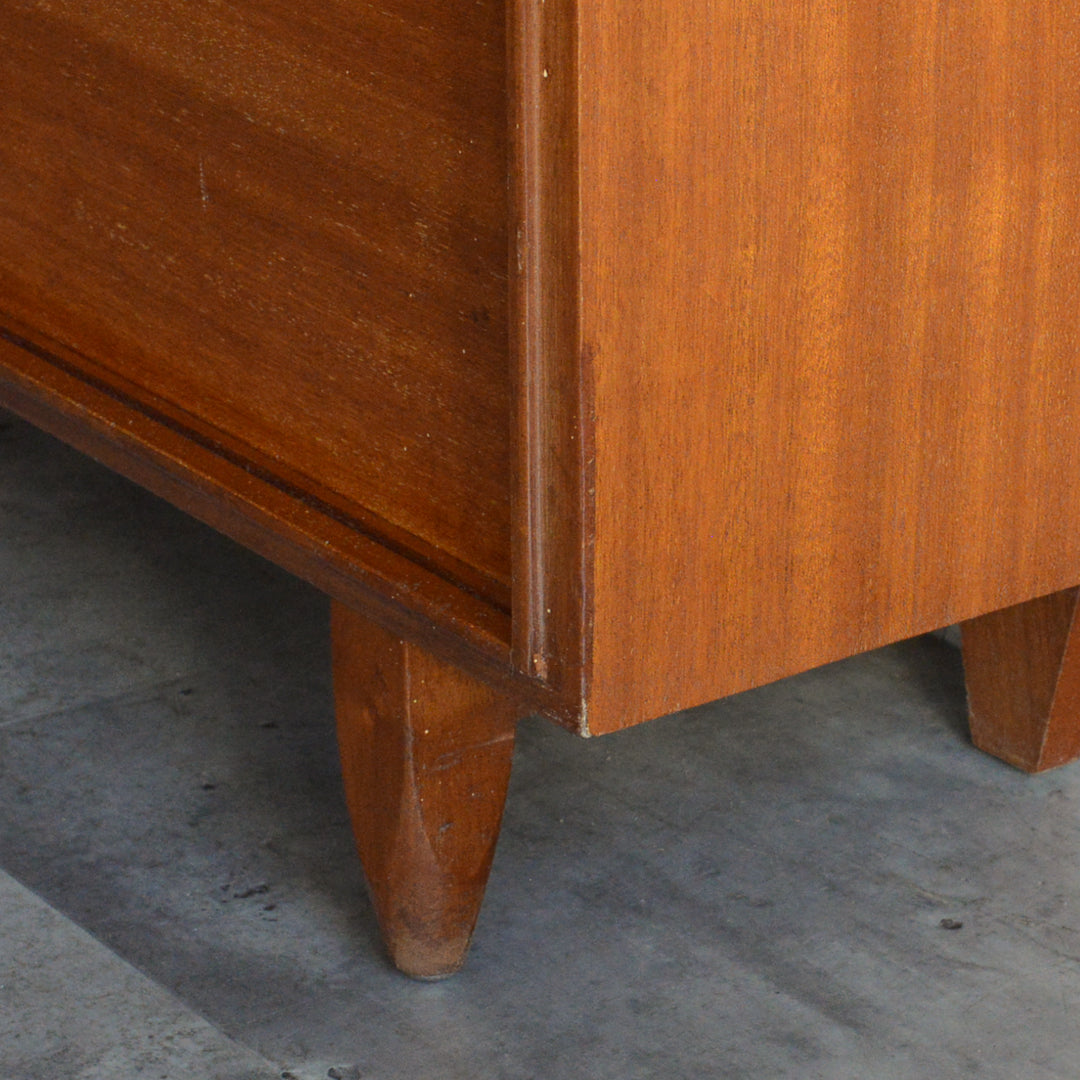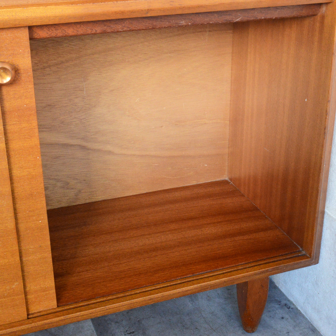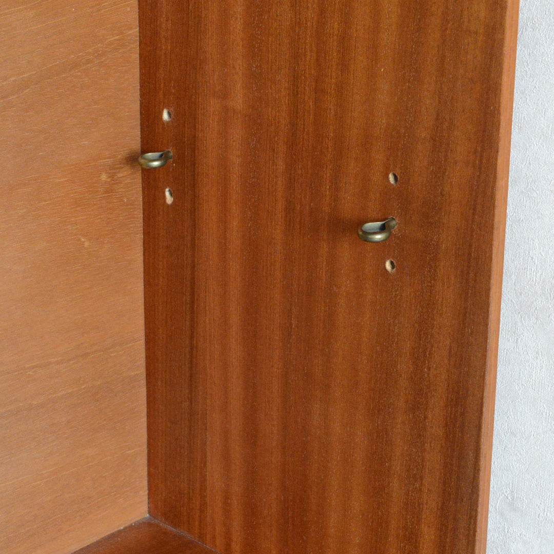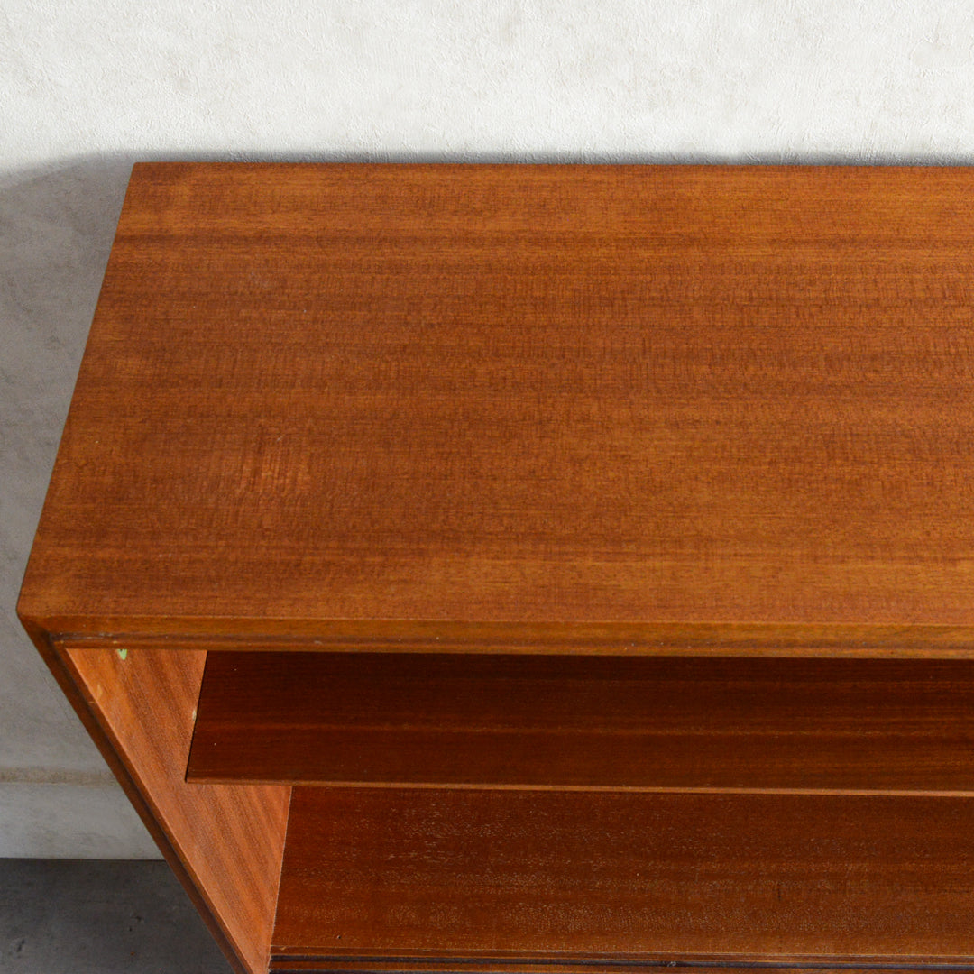 英国ミッドセンチュリー期のインテリアメーカー BEAVER & TAPLEY LTD(ビーバー&タプレイ)により1960年代に製造された、ミッドセンチュリーらしい脚付のコンパクトなチークガラスキャビネット
