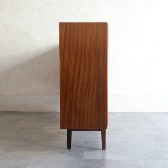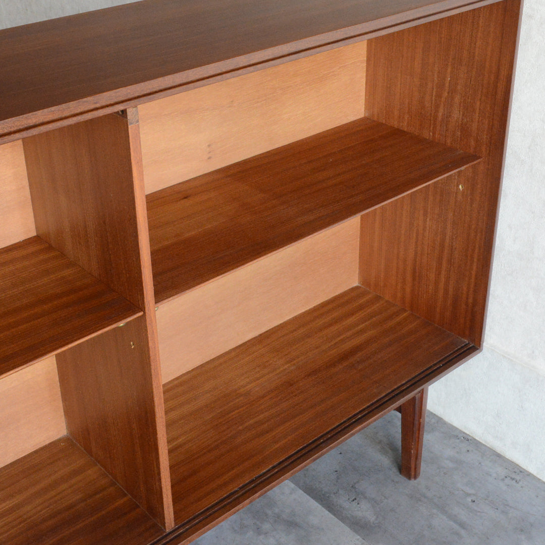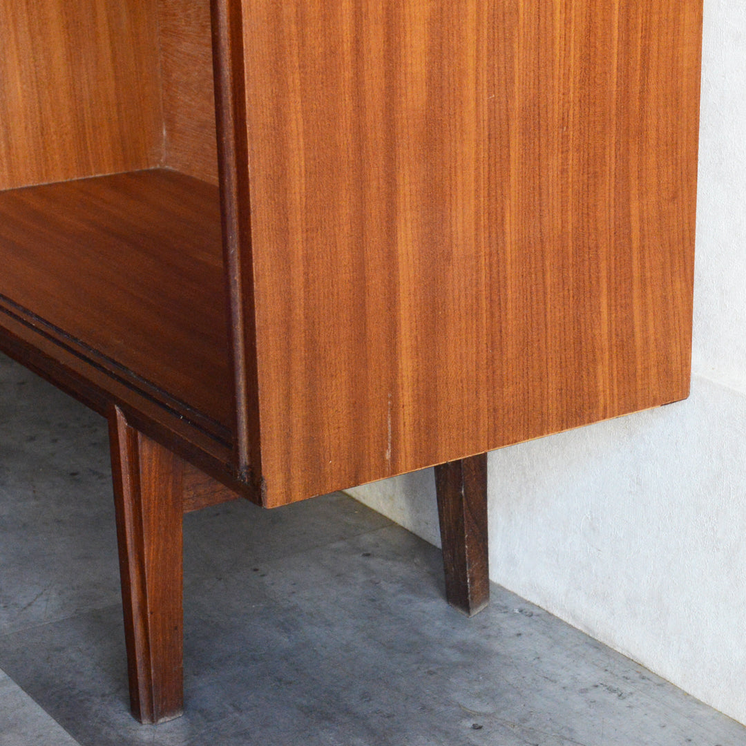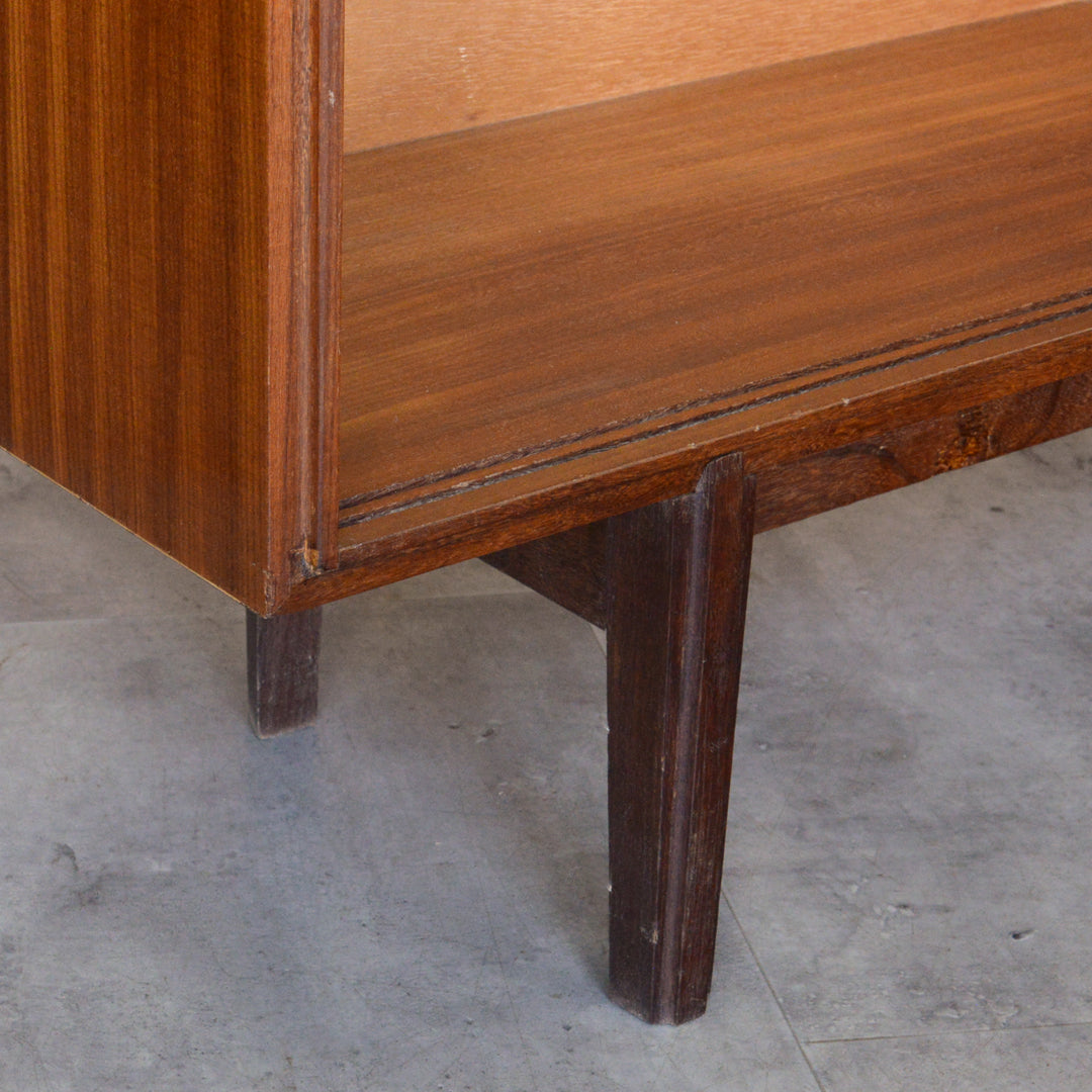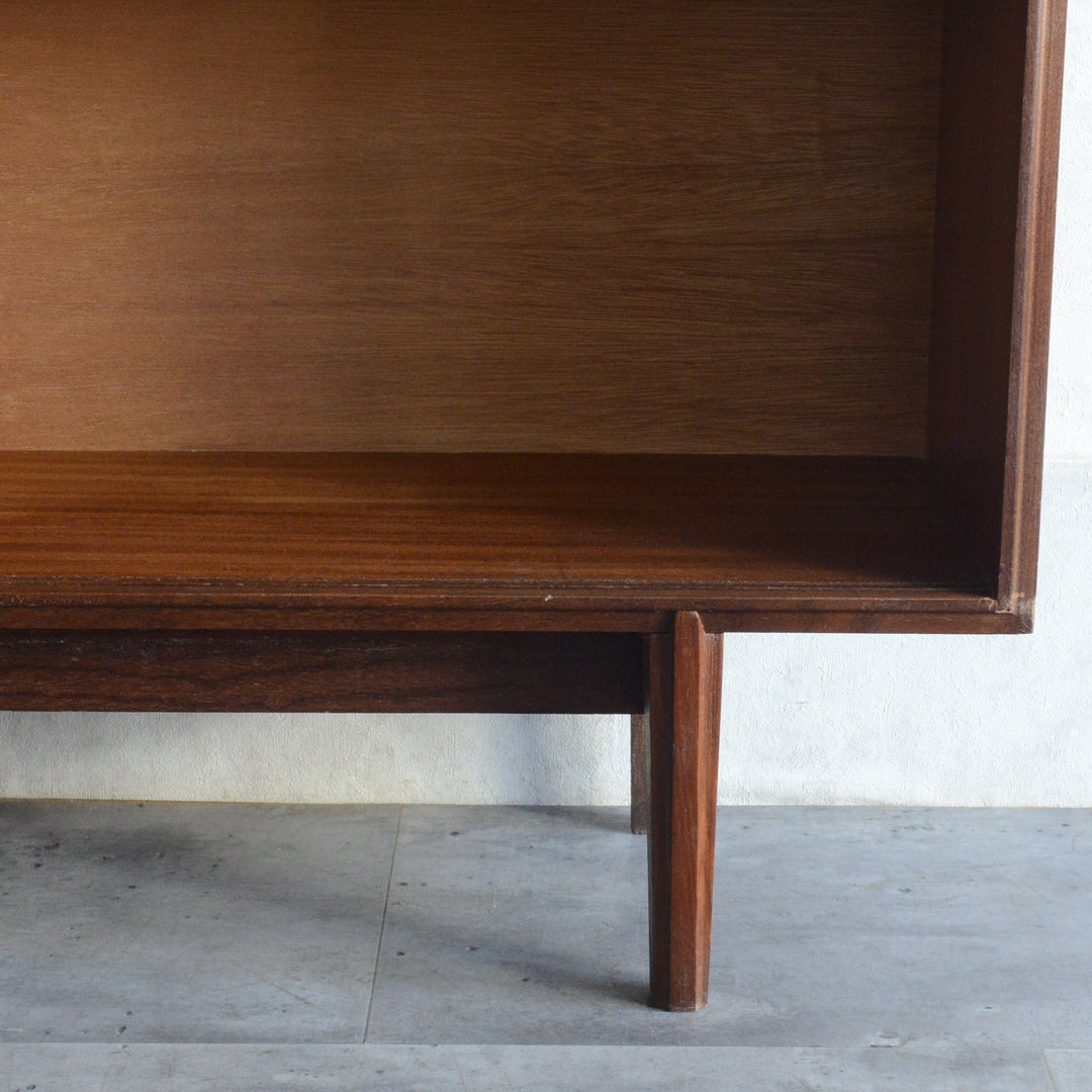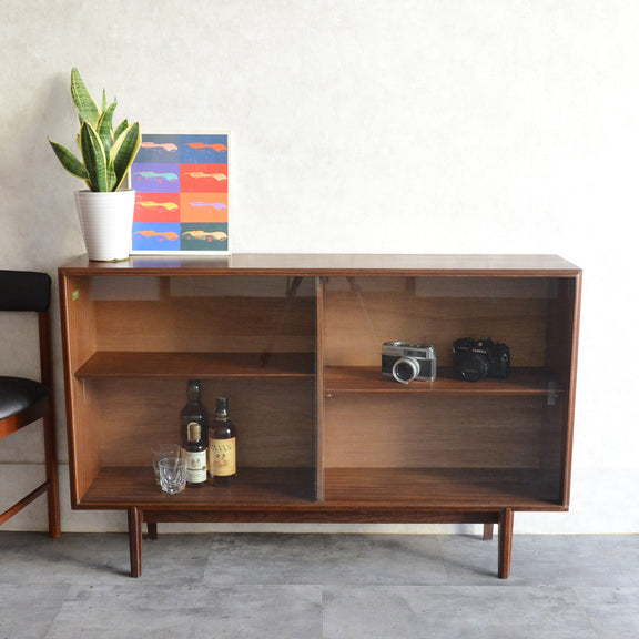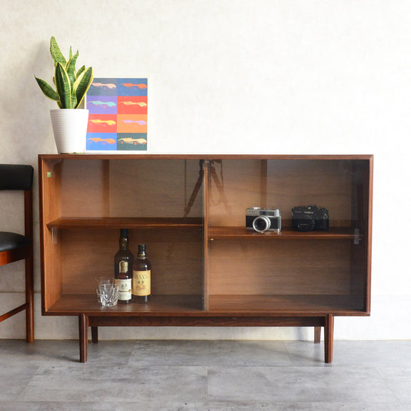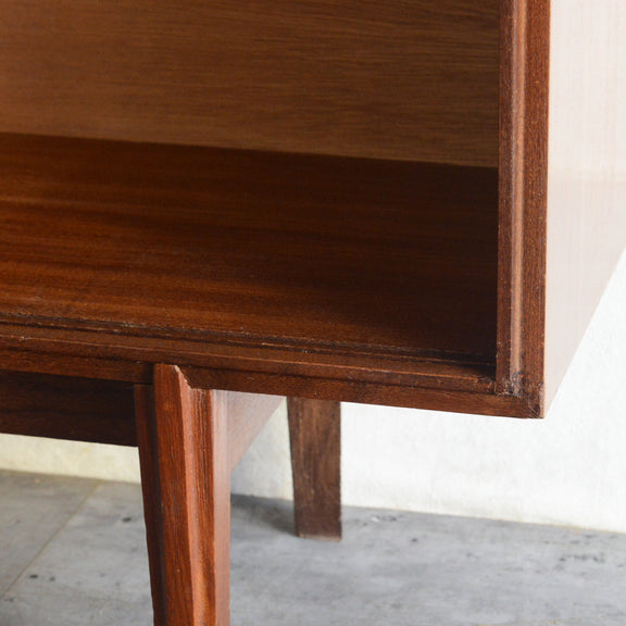英国ミッドセンチュリー期のインテリアメーカー BEAVER & TAPLEY LTD(ビーバー&タプレイ)により1960年代に製造された、ミッドセンチュリーらしい脚付のチークガラスキャビネット