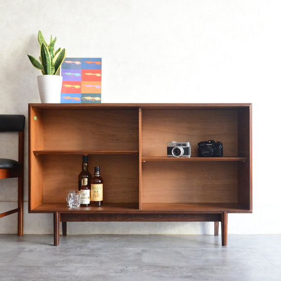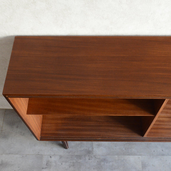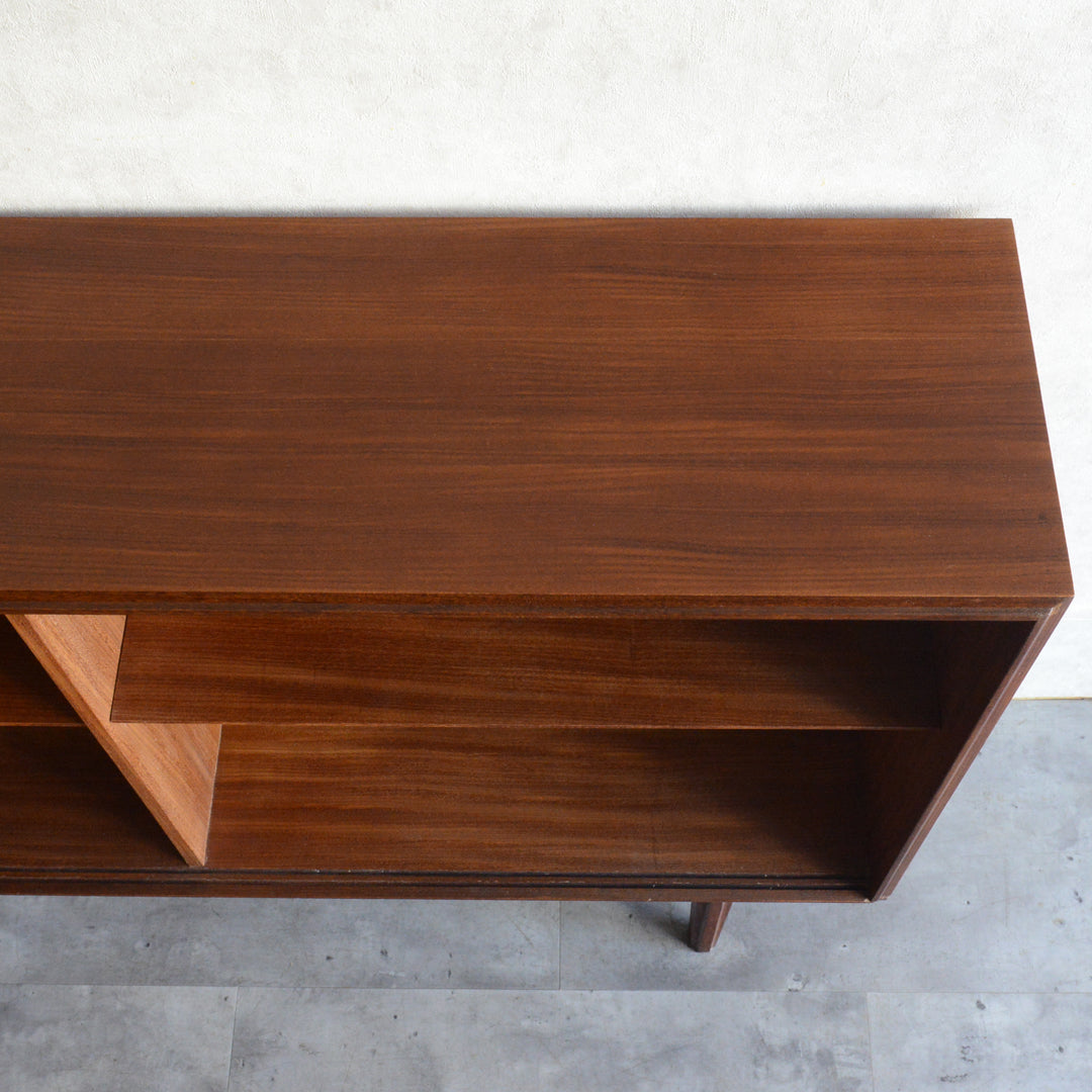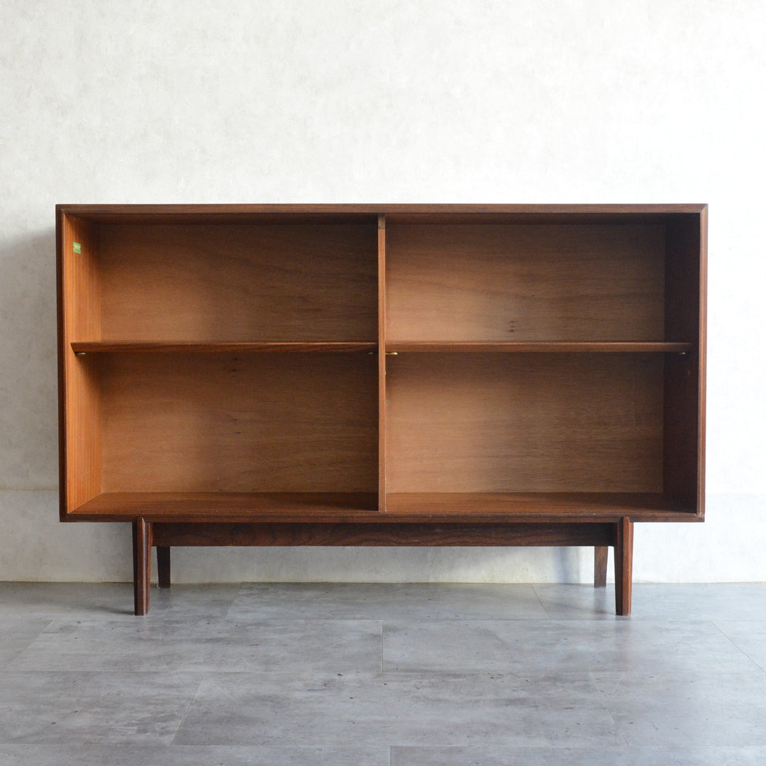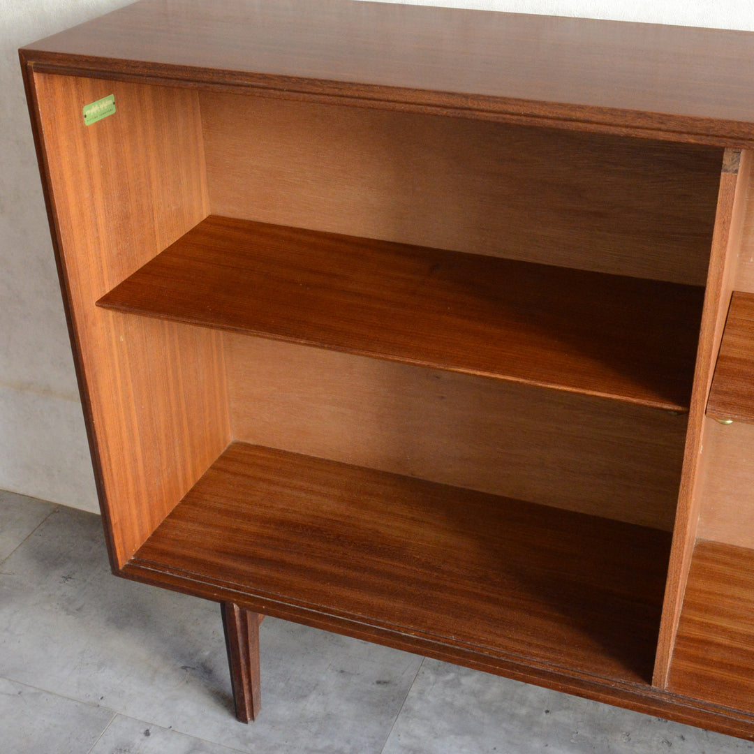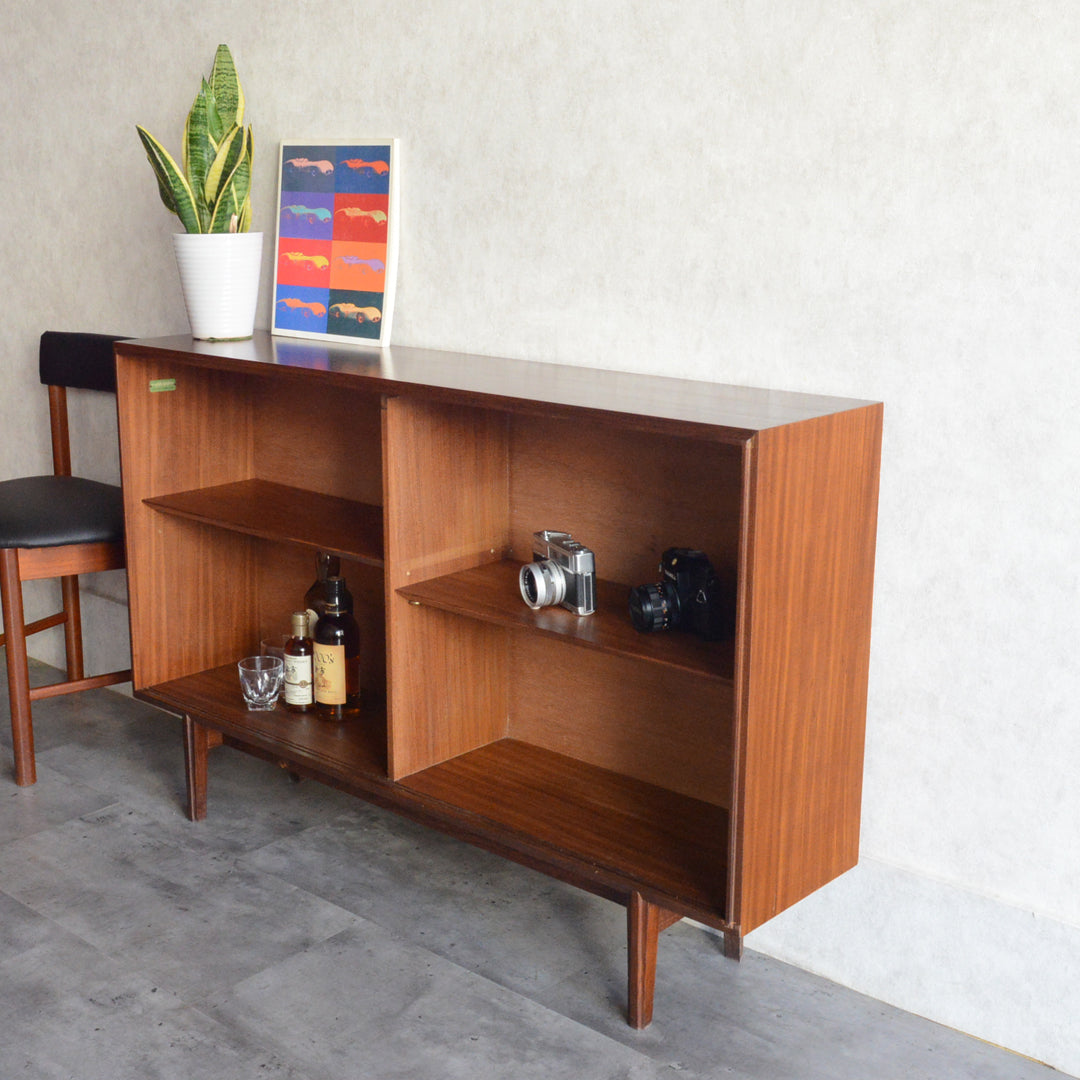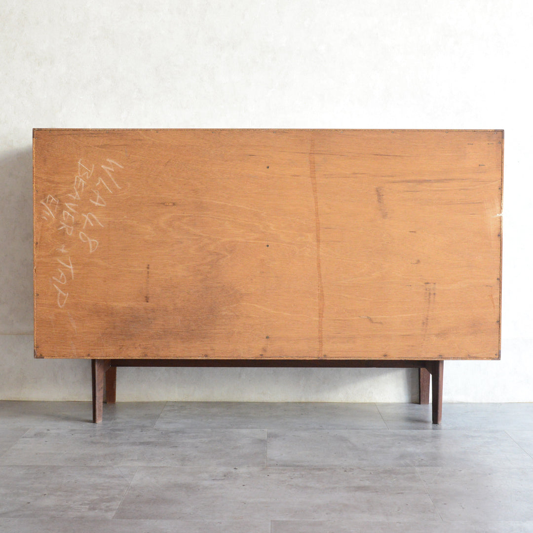英国ミッドセンチュリー期のインテリアメーカー BEAVER & TAPLEY LTD(ビーバー&タプレイ)により1960年代に製造された、ミッドセンチュリーらしい脚付のチークガラスキャビネット