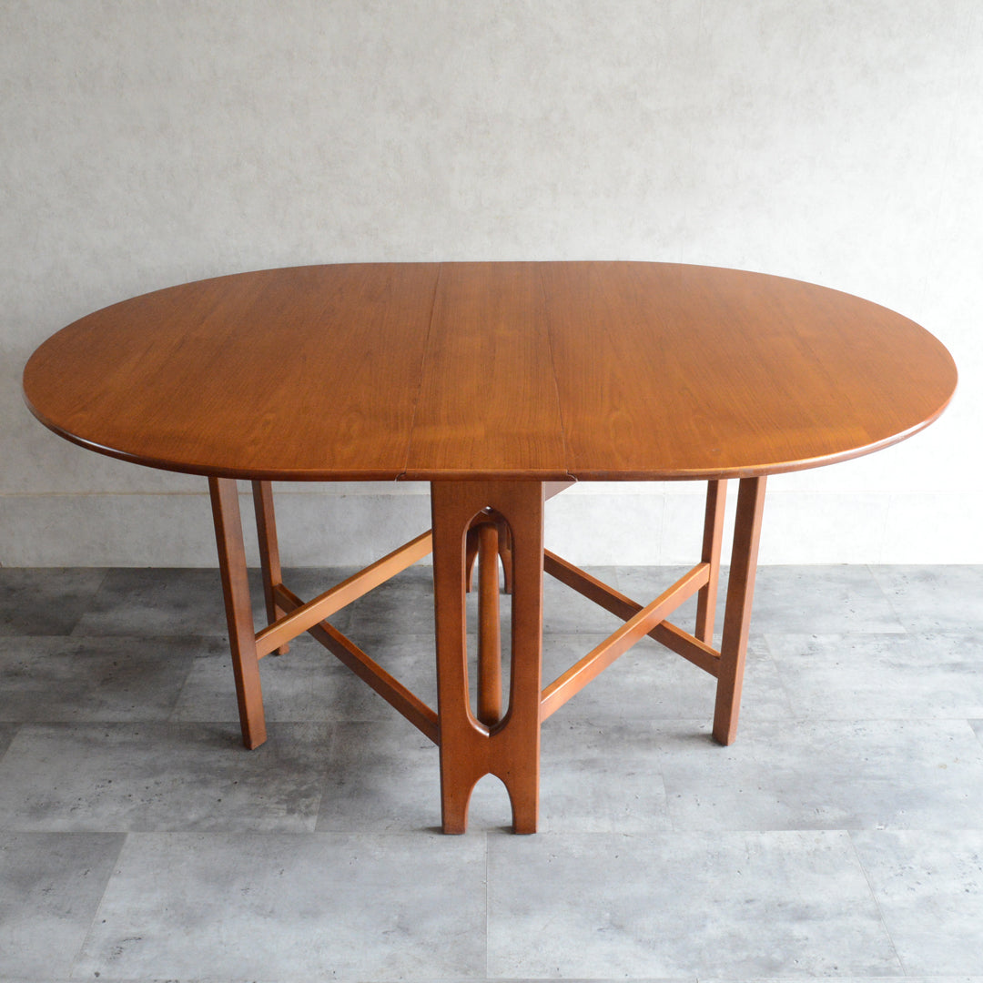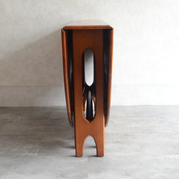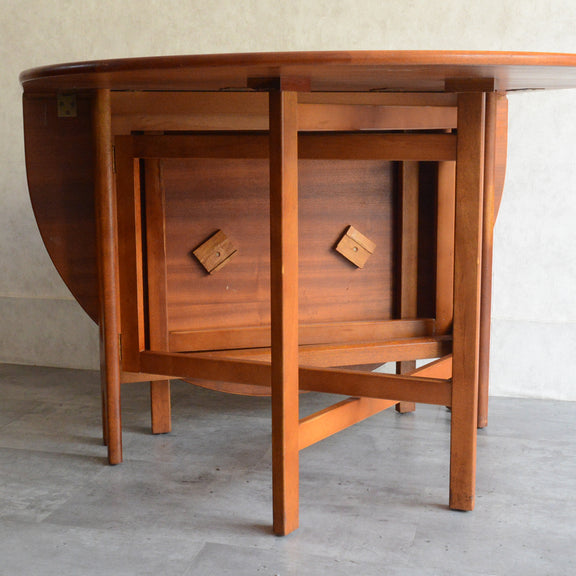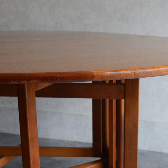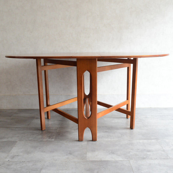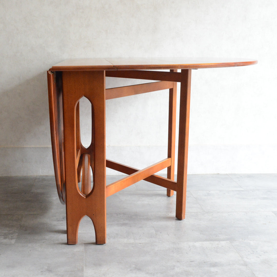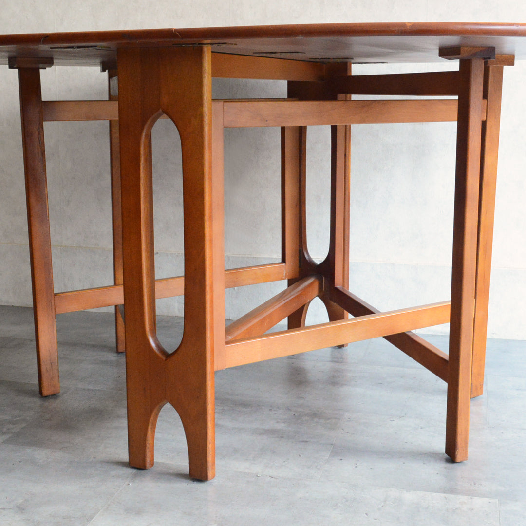 こちらはDrop Leaf Tableとも呼ばれるゲートレッグスタイル、脚部を動かすことによって、広々とした幅約155cmのテーブルを約25cmまでコンパクトに畳む事ができます。
