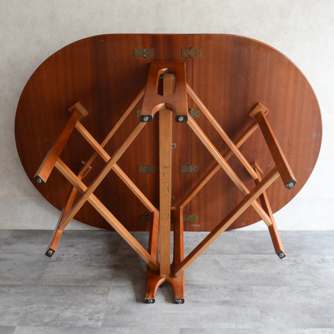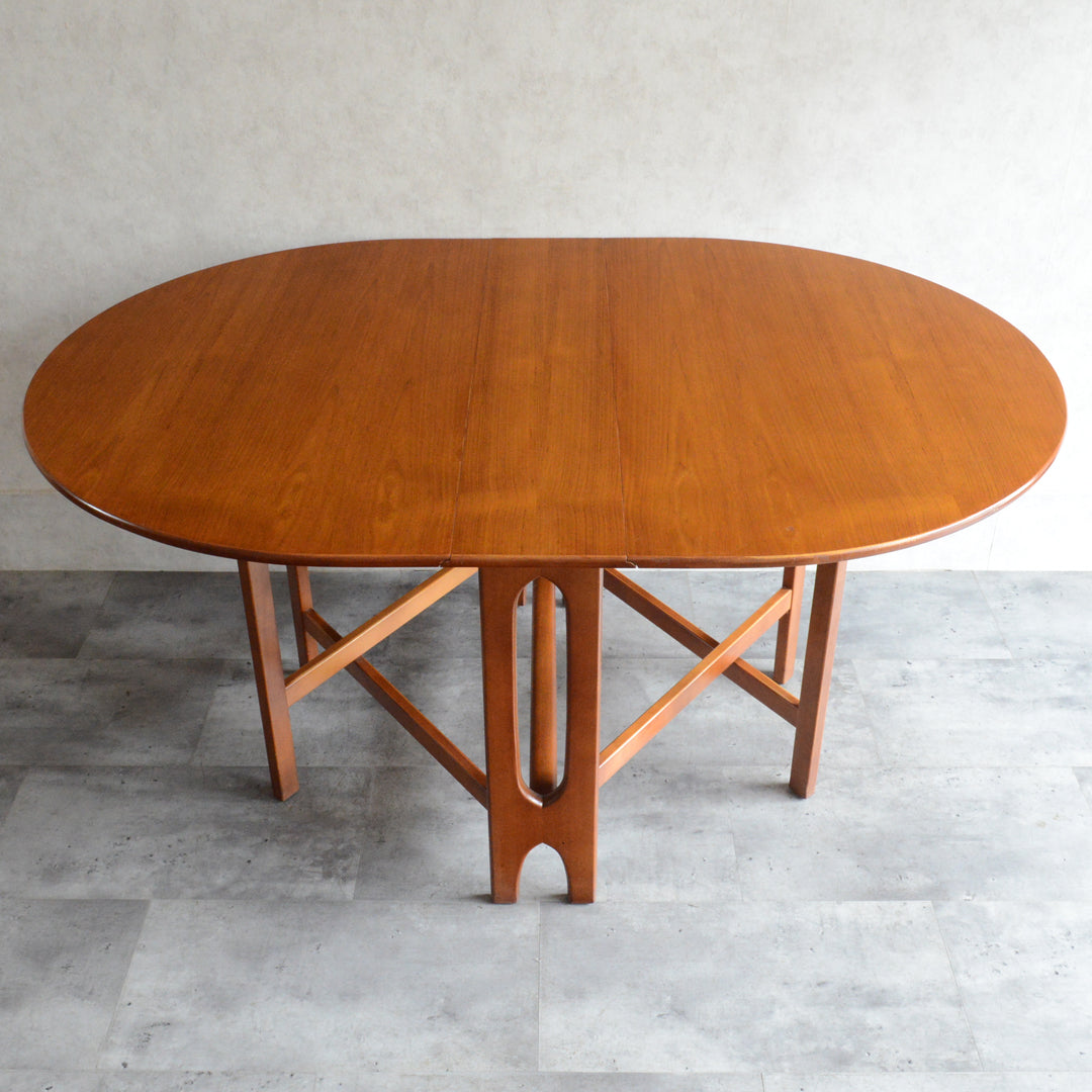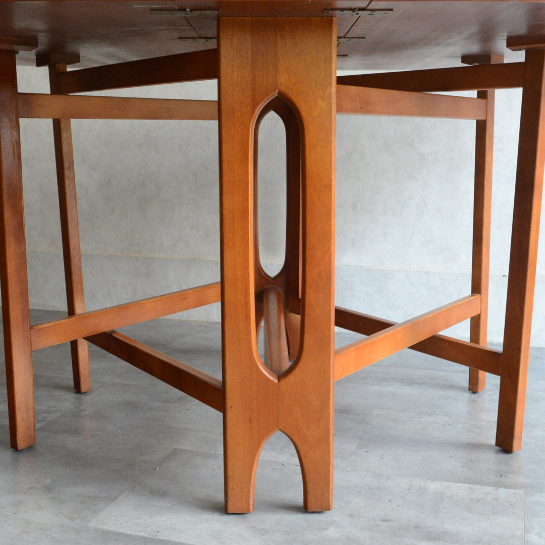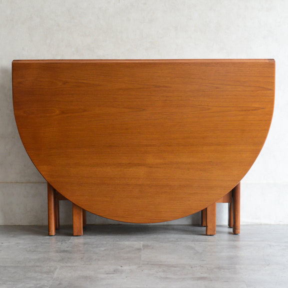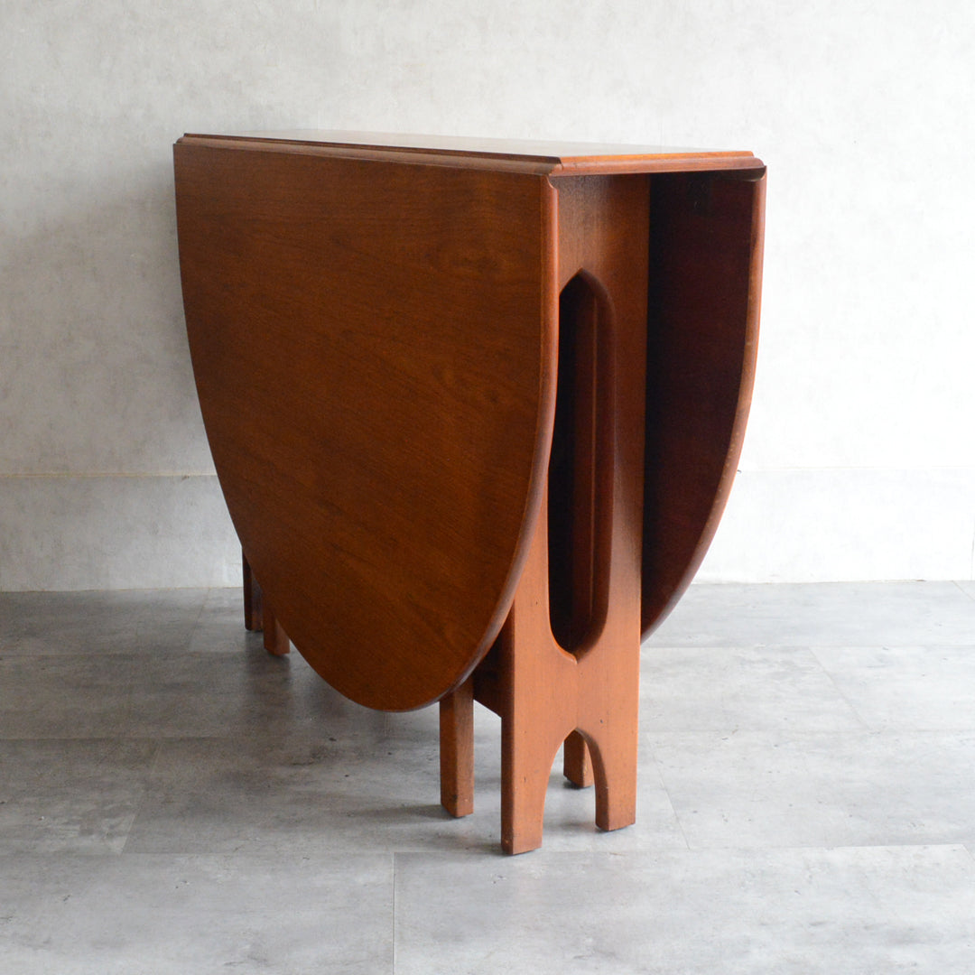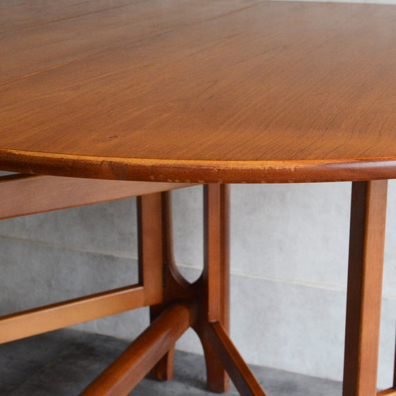 こちらはDrop Leaf Tableとも呼ばれるゲートレッグスタイル、脚部を動かすことによって、広々とした幅約155cmのテーブルを約25cmまでコンパクトに畳む事ができます。