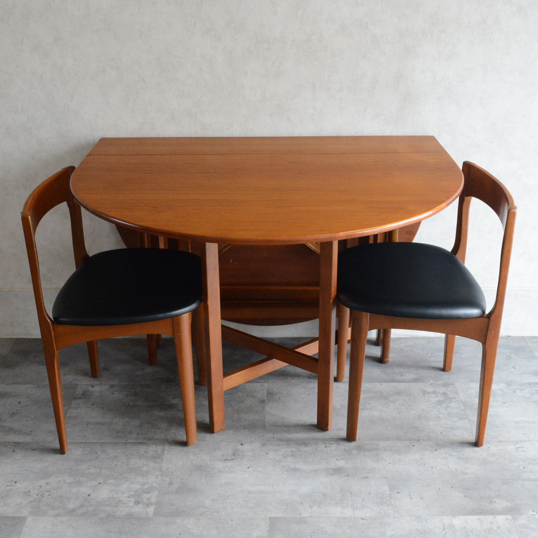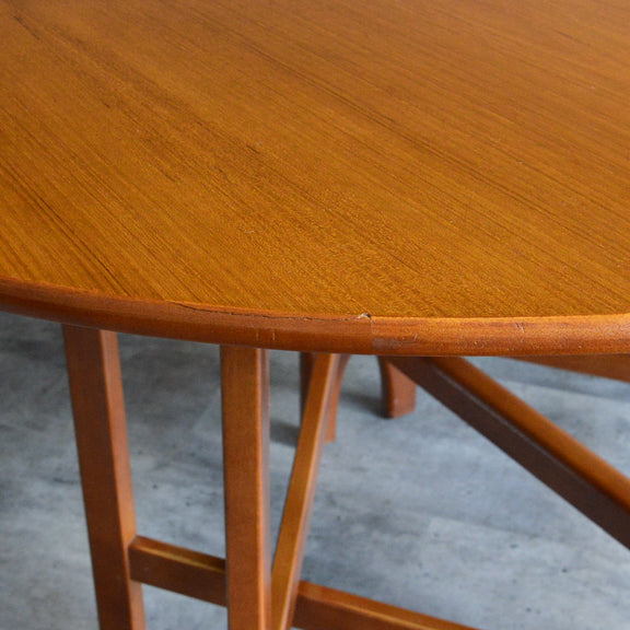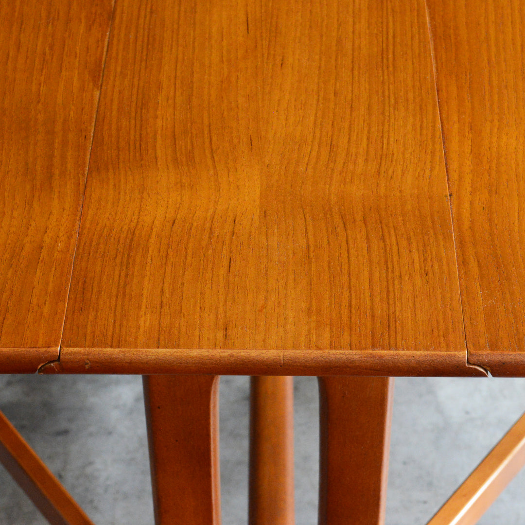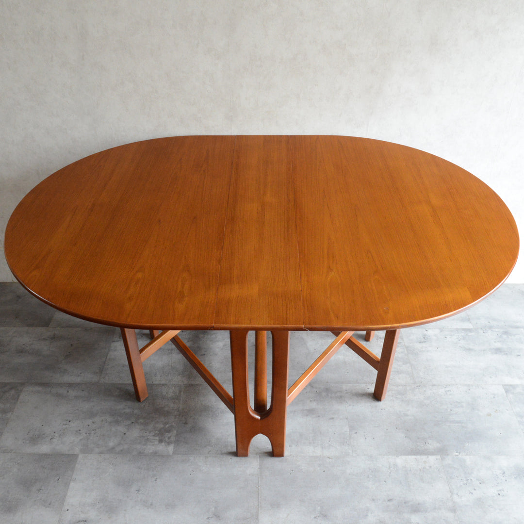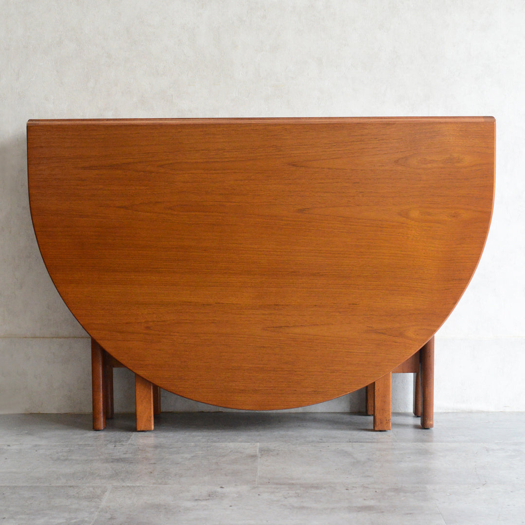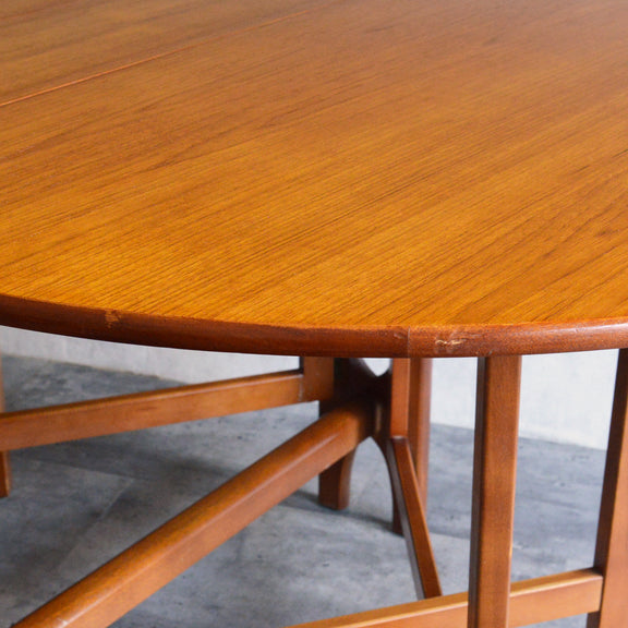 こちらはDrop Leaf Tableとも呼ばれるゲートレッグスタイル、脚部を動かすことによって、広々とした幅約155cmのテーブルを約25cmまでコンパクトに畳む事ができます。