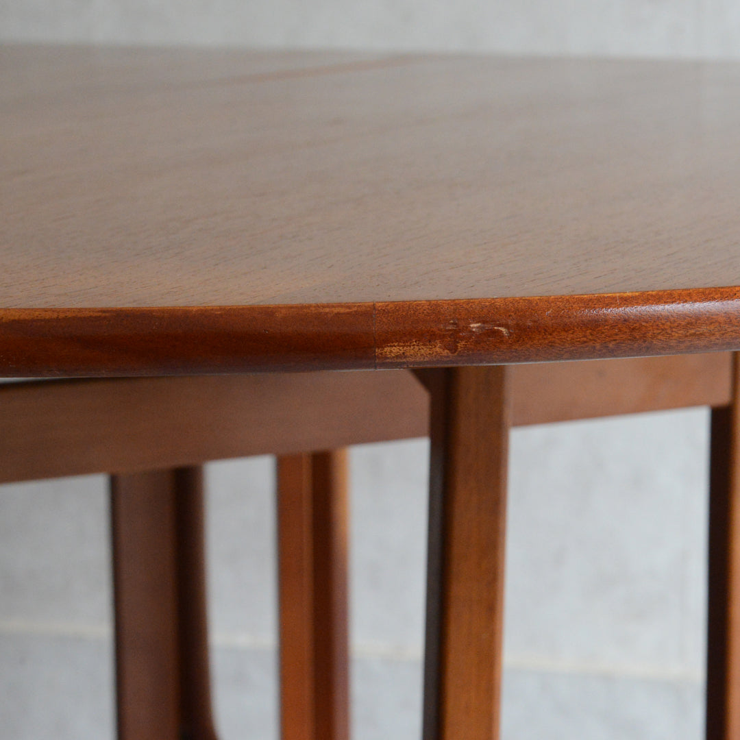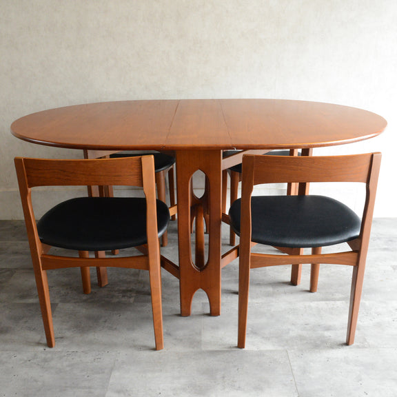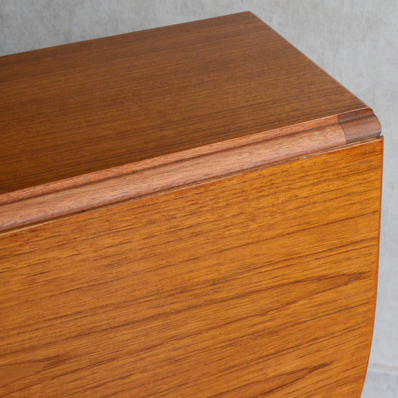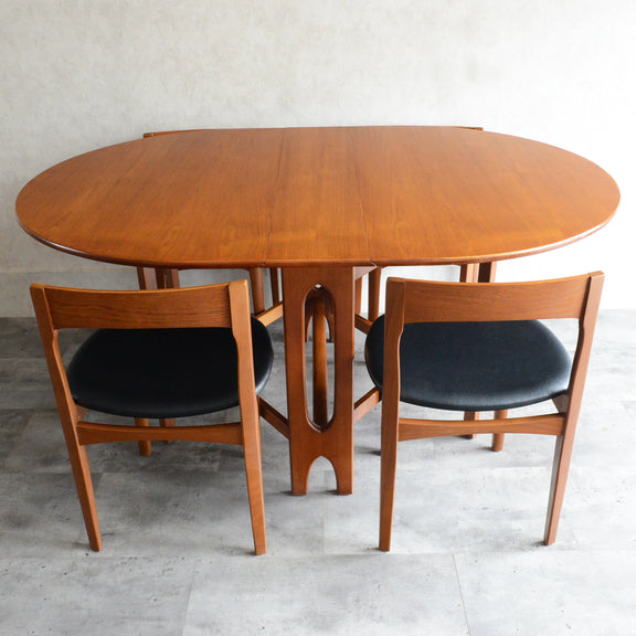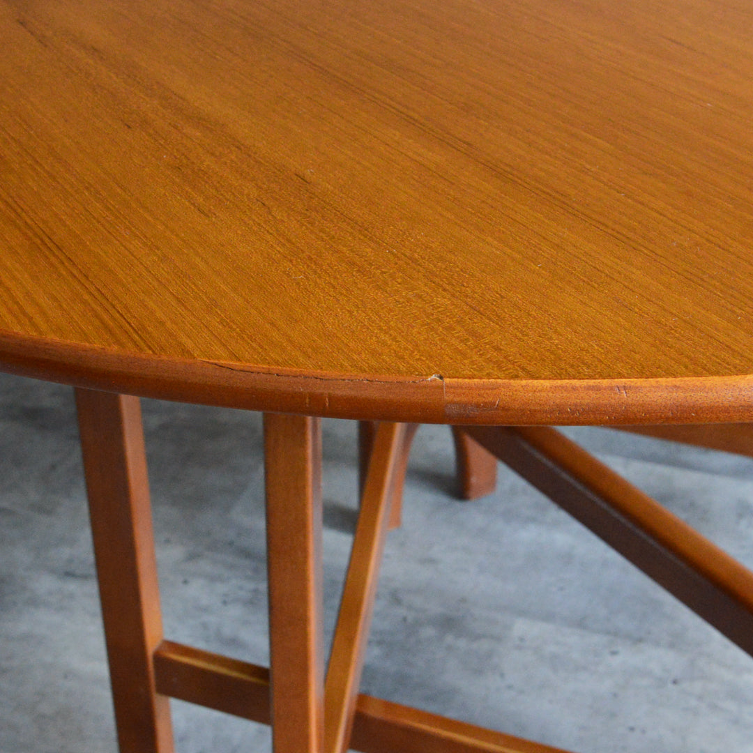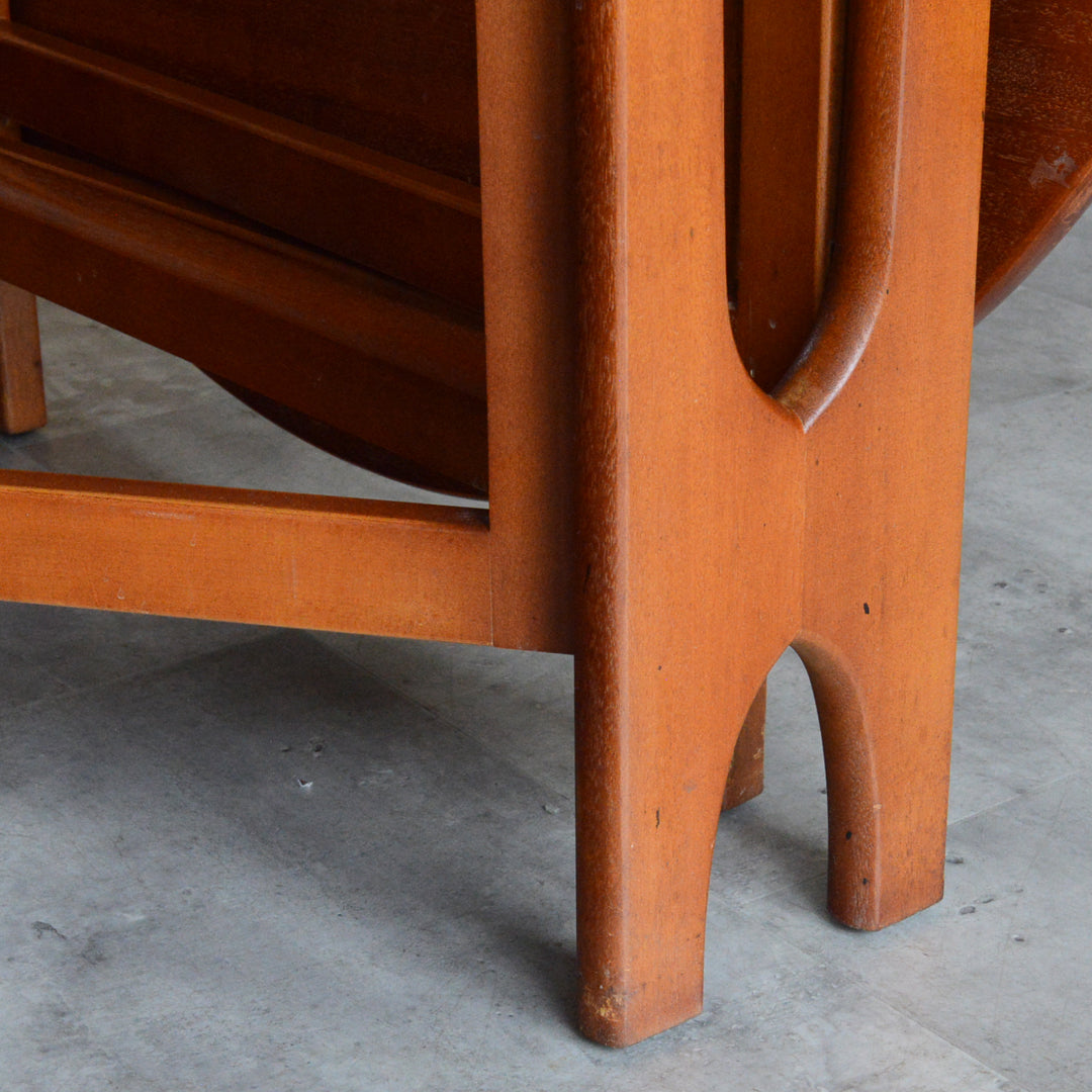 こちらはDrop Leaf Tableとも呼ばれるゲートレッグスタイル、脚部を動かすことによって、広々とした幅約155cmのテーブルを約25cmまでコンパクトに畳む事ができます。