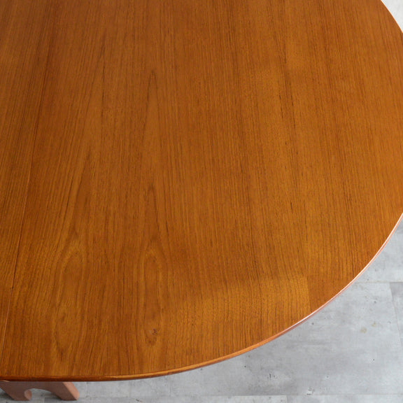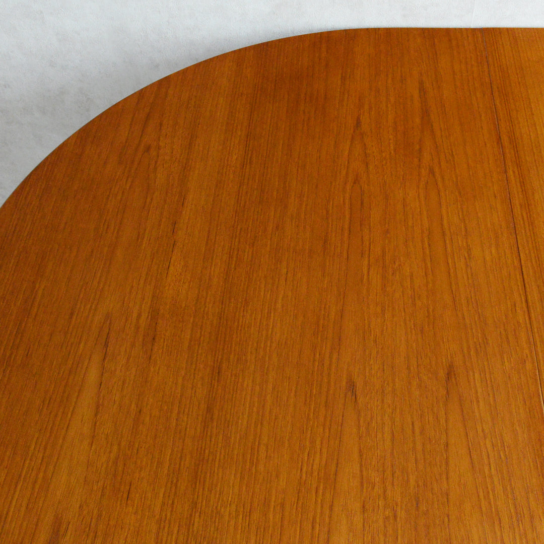 良質なチークの天板が美しい楕円形(オーバル)のエクステンション(伸長式)テーブルです。