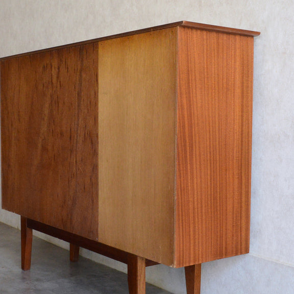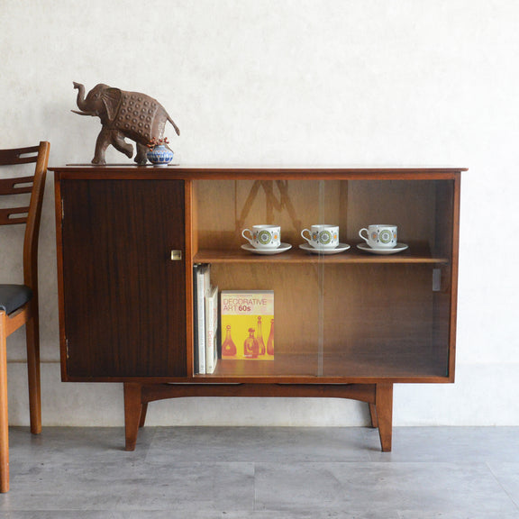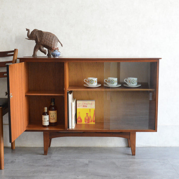 ミッドセンチュリーらしい脚付のガラスキャビネット