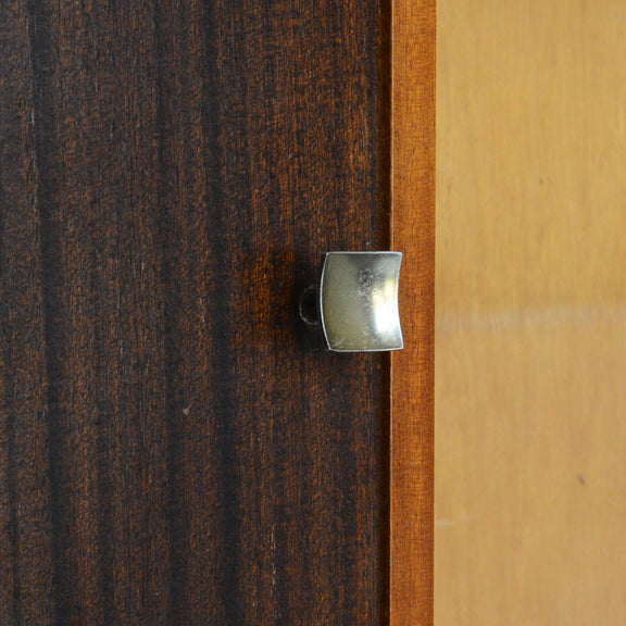濃いめカラーの木製扉と金属の把手がアクセントとなっています。