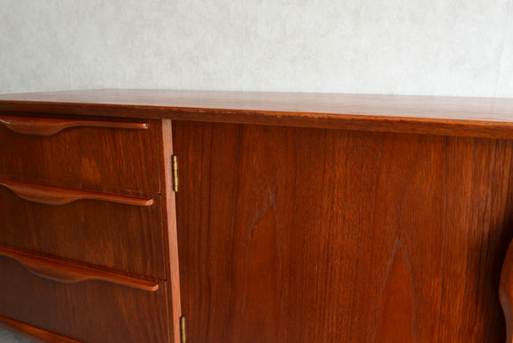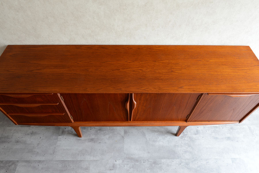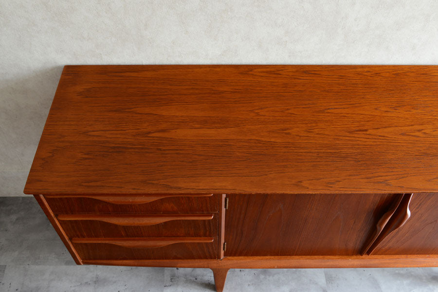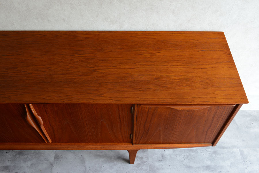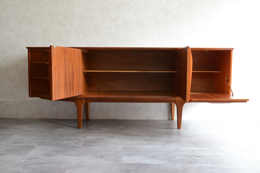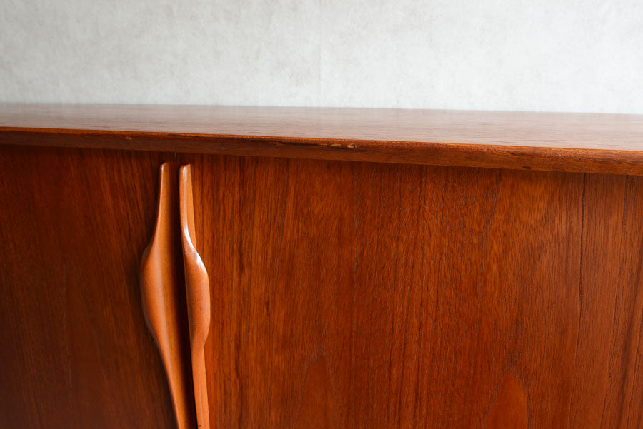 ミッドセンチュリー期のチークの杢目が素晴らしく、リビングの主役に相応しい逸品です。