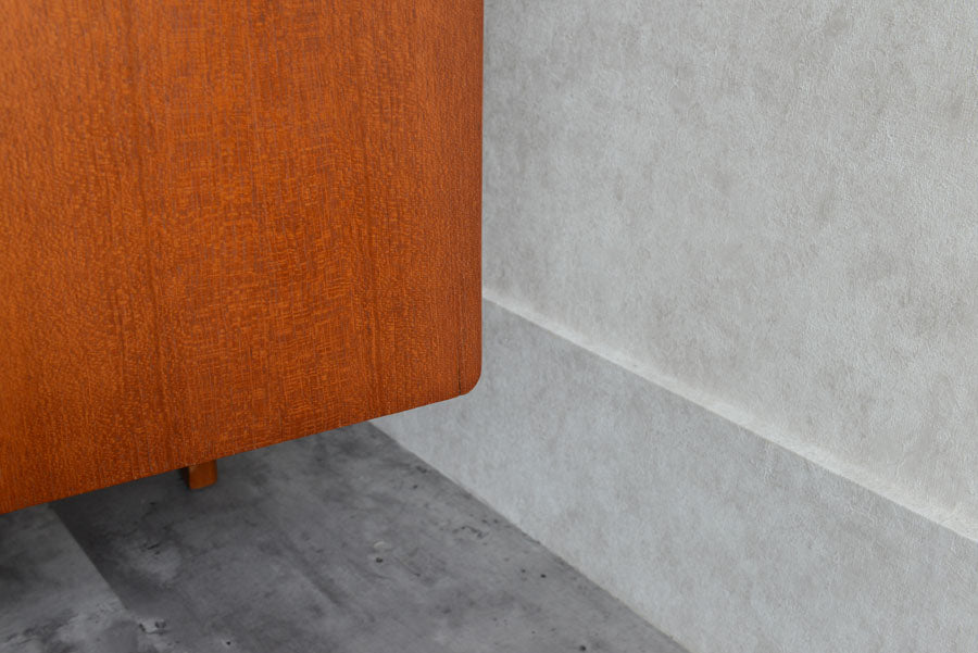 美しいチークで丹念に作り込まれた取っ手がアクセントとなったサイドボード。