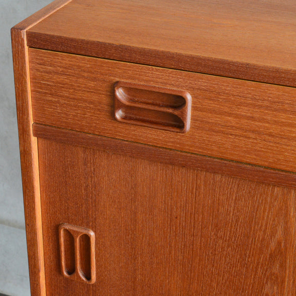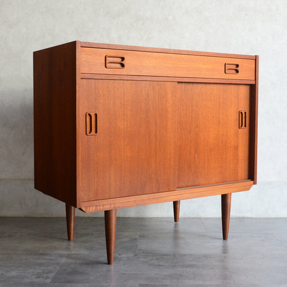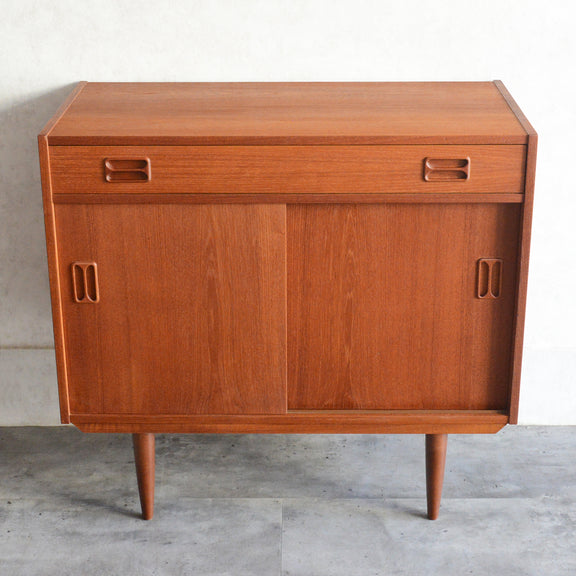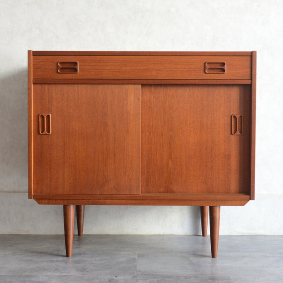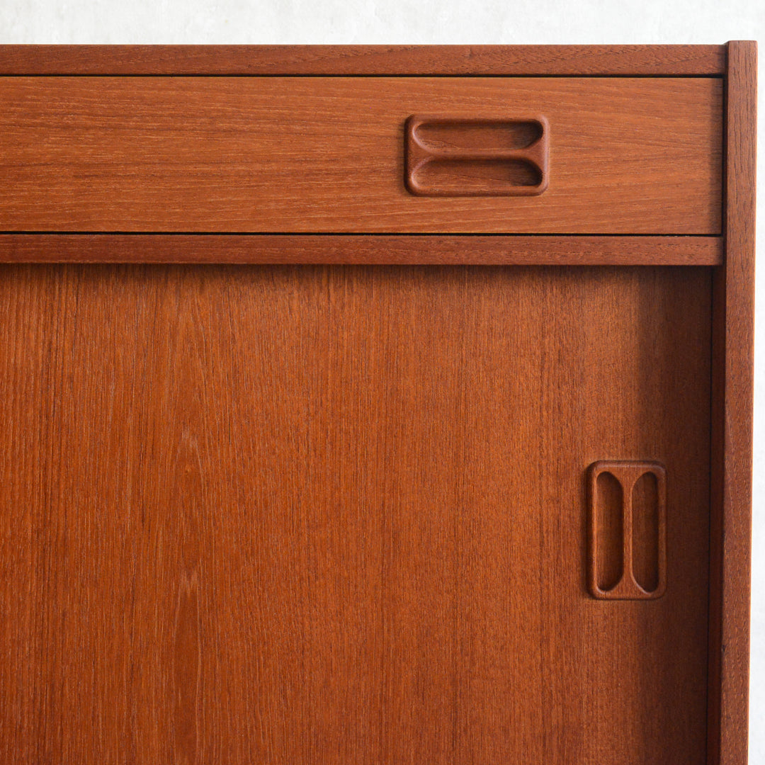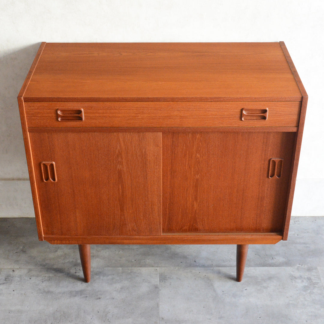 北欧らしい温かみあるスクエアの把手が印象的なキャビネット。