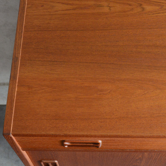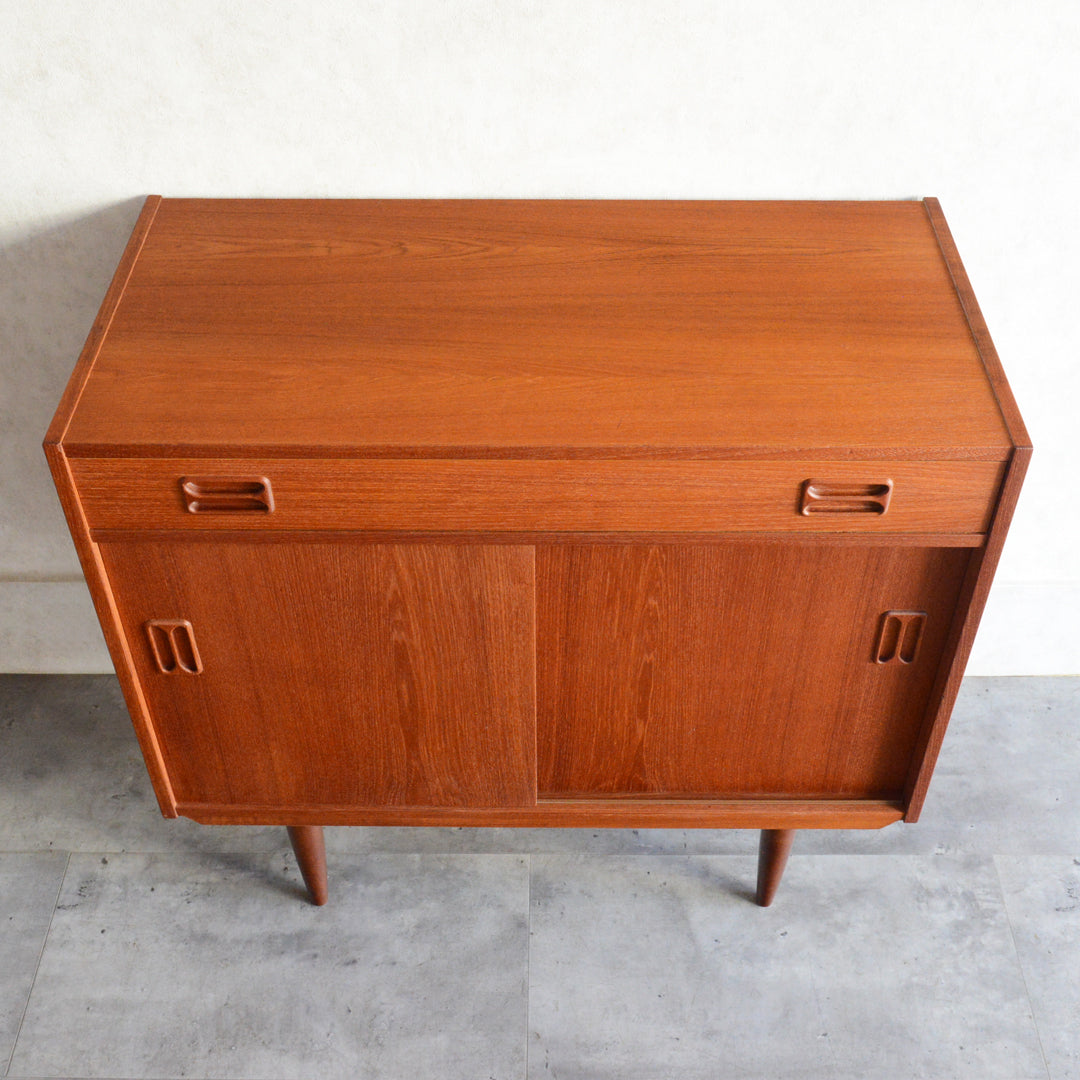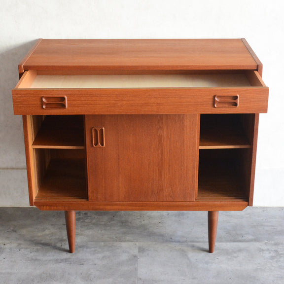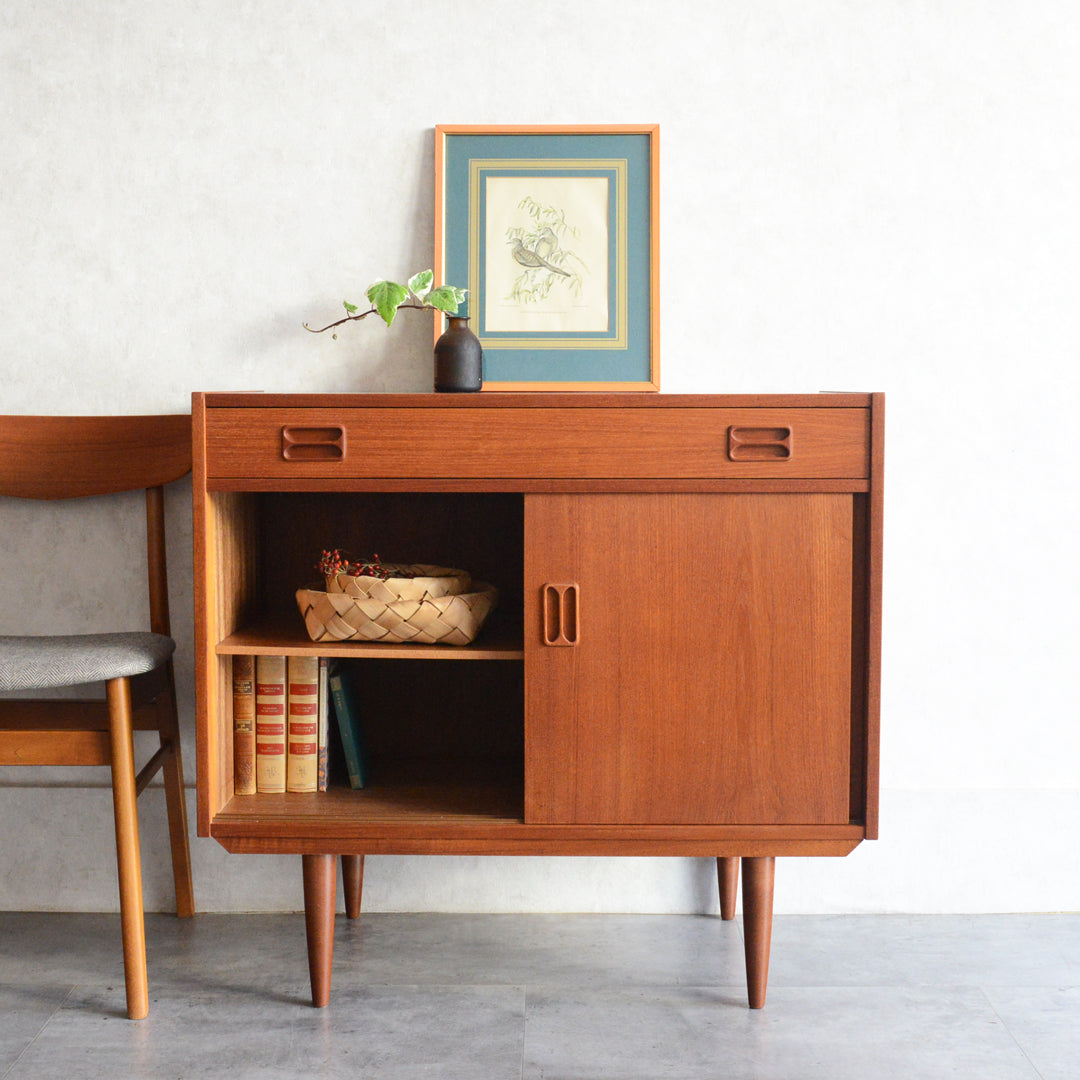 上部の抽斗は機能的で、下部の扉内とあわせてリビングの日用品等もすっきりと収納する事ができそうです。抽斗の底板は新しく交換済みです。