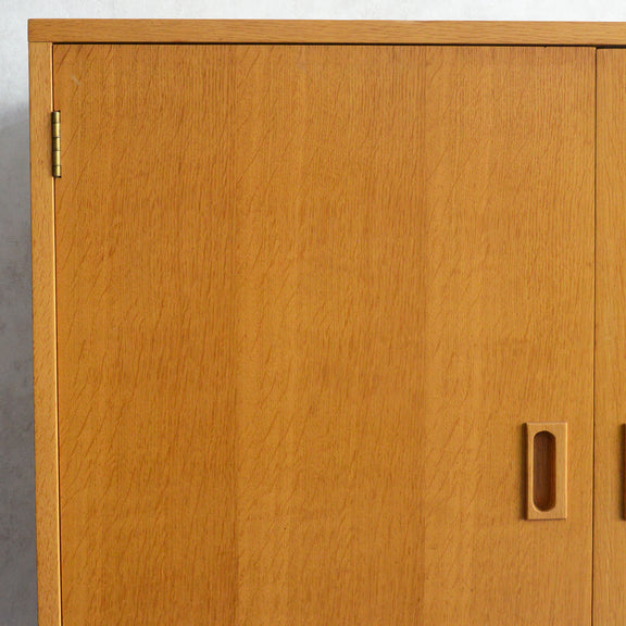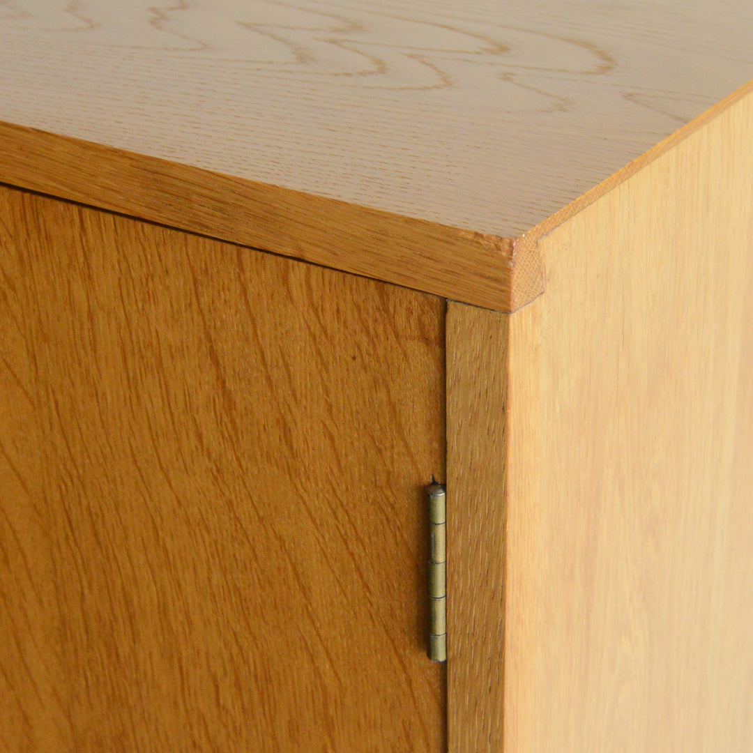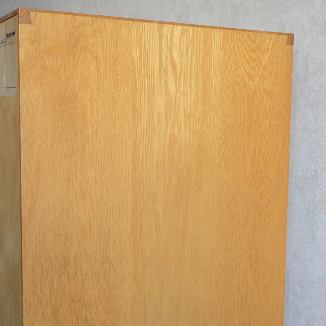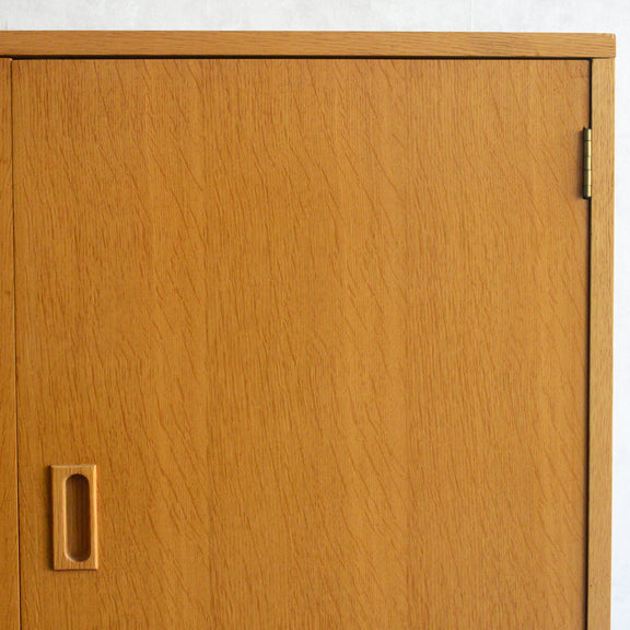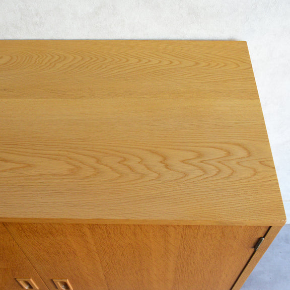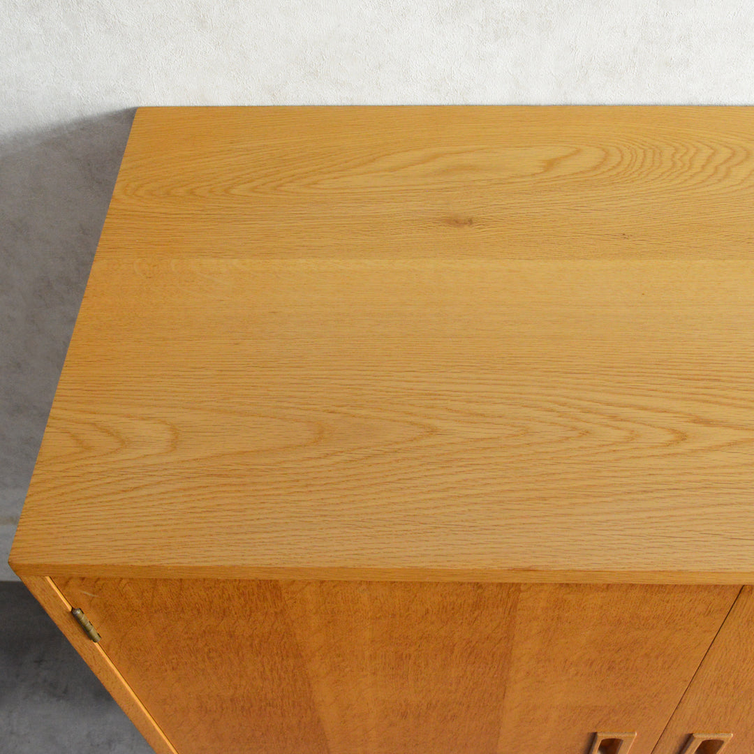 オーク材のシンプルな本体にアイアンのヘアピンレッグで脚部をカスタムし、モダンなテイストがプラスされたキャビネット。
