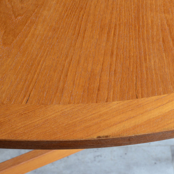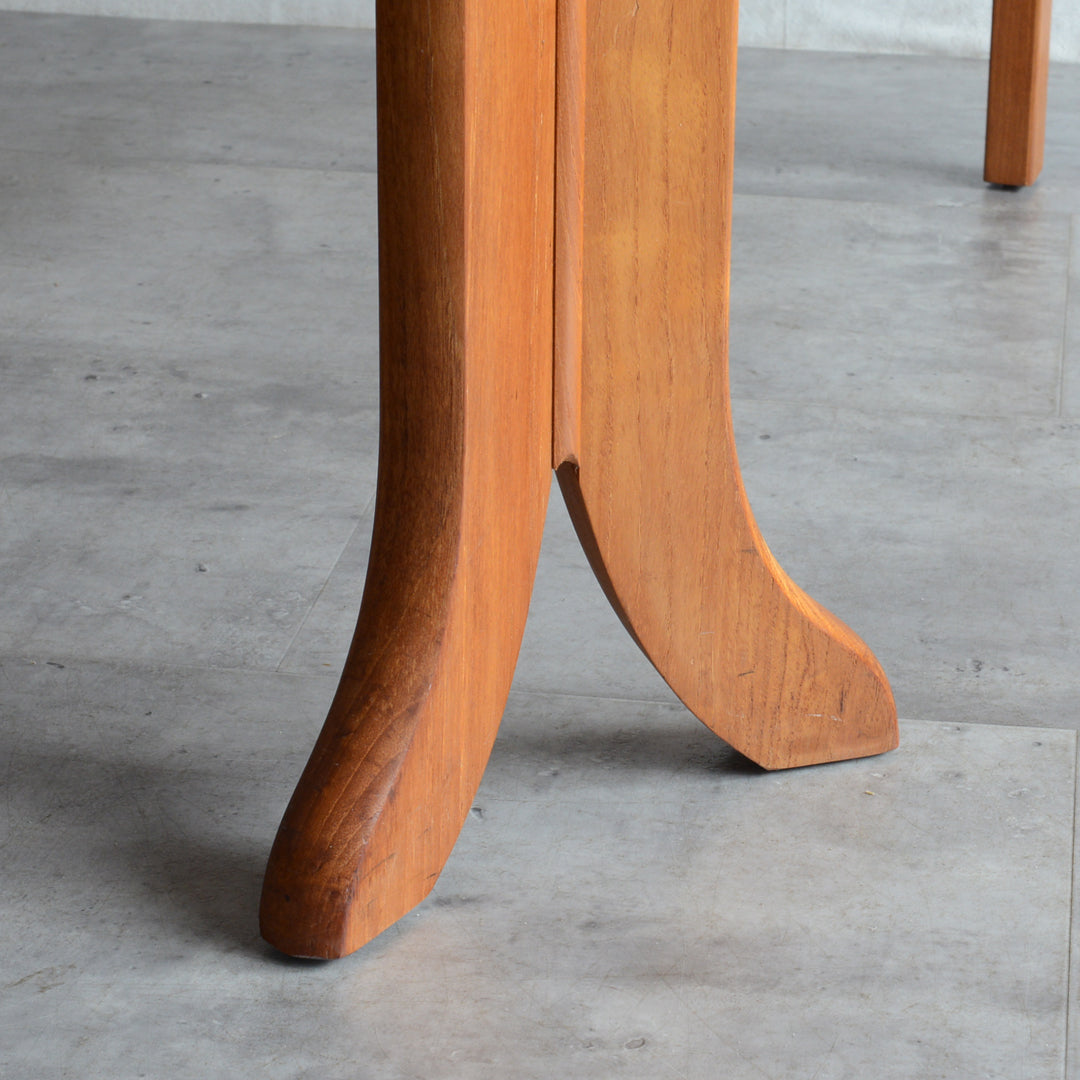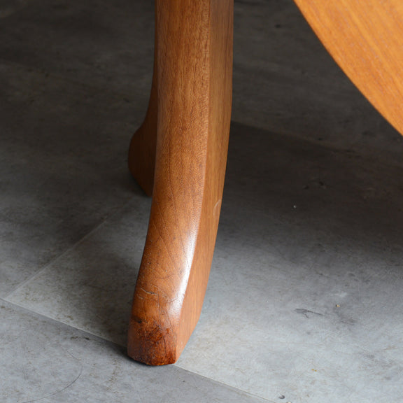 チークの天板の縁はパーケットリー(寄木細工)が施され、オーバルの形と相まって優美な雰囲気のデザインとなっています。
