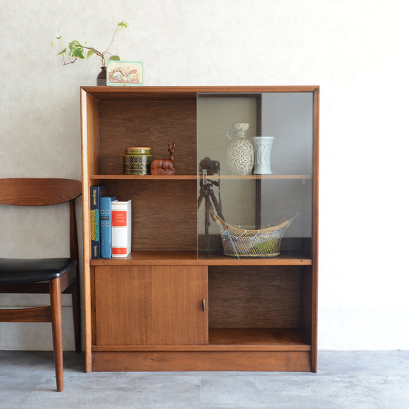 ガラス部分でディスプレイを楽しみながら、チーク扉内には日用品等をすっきりと収納する事も出来ます。