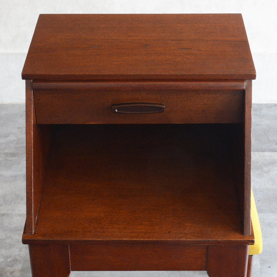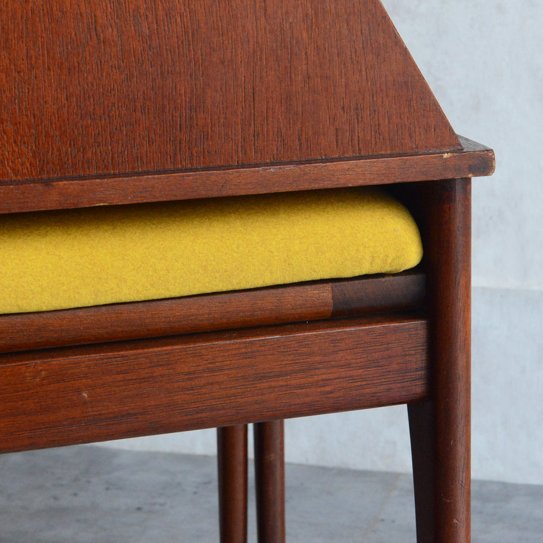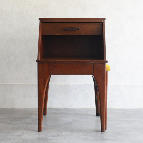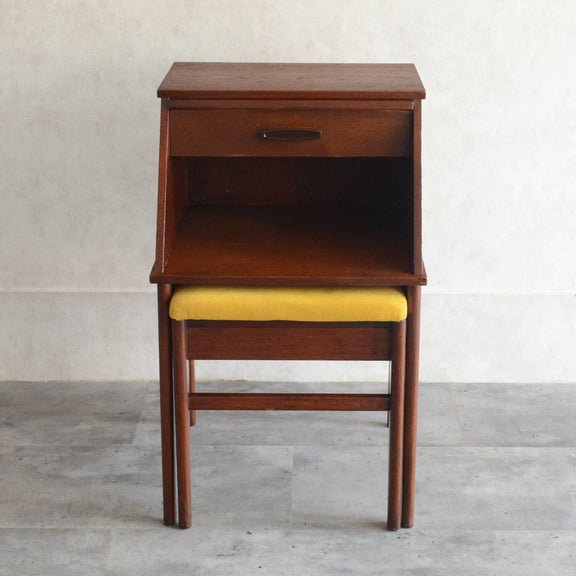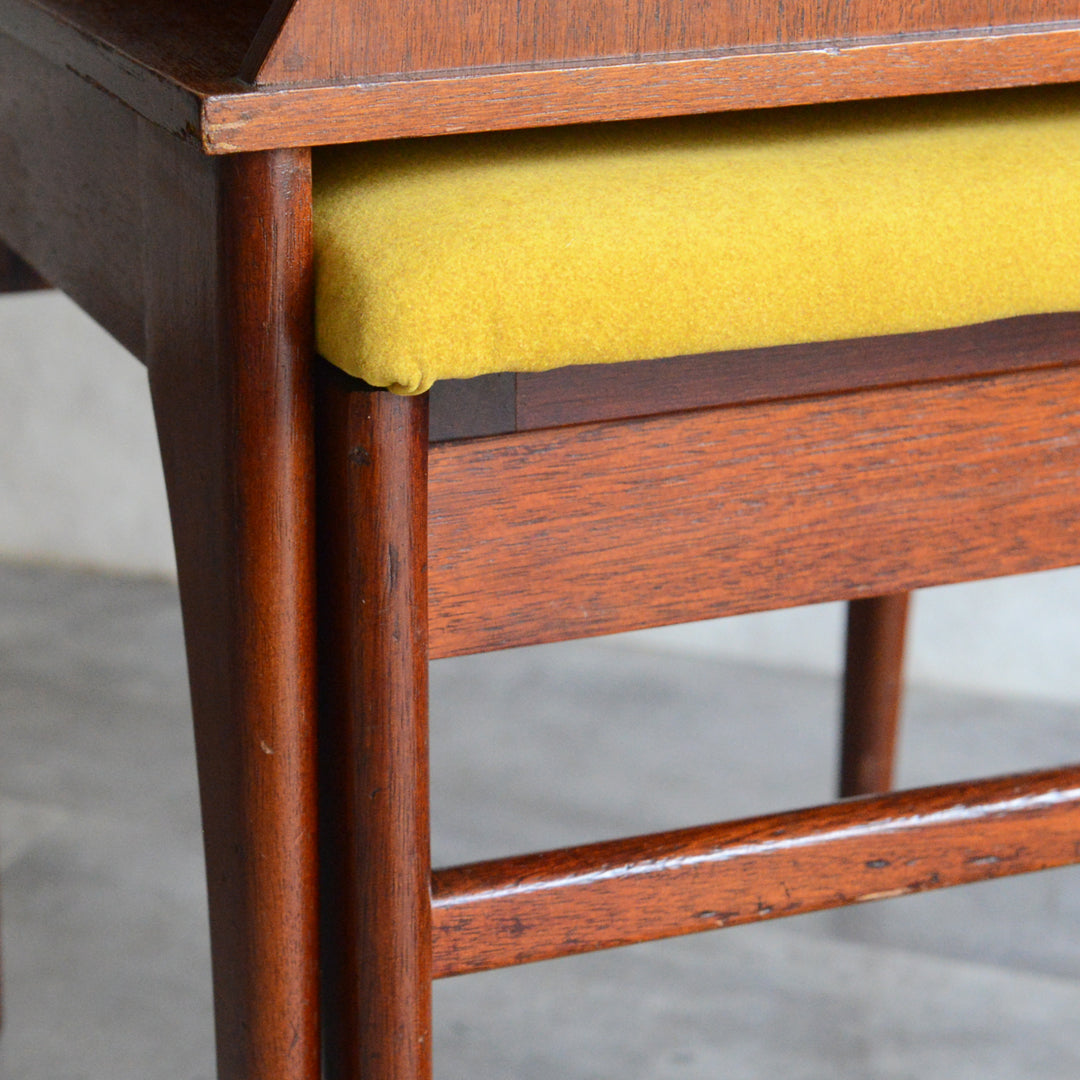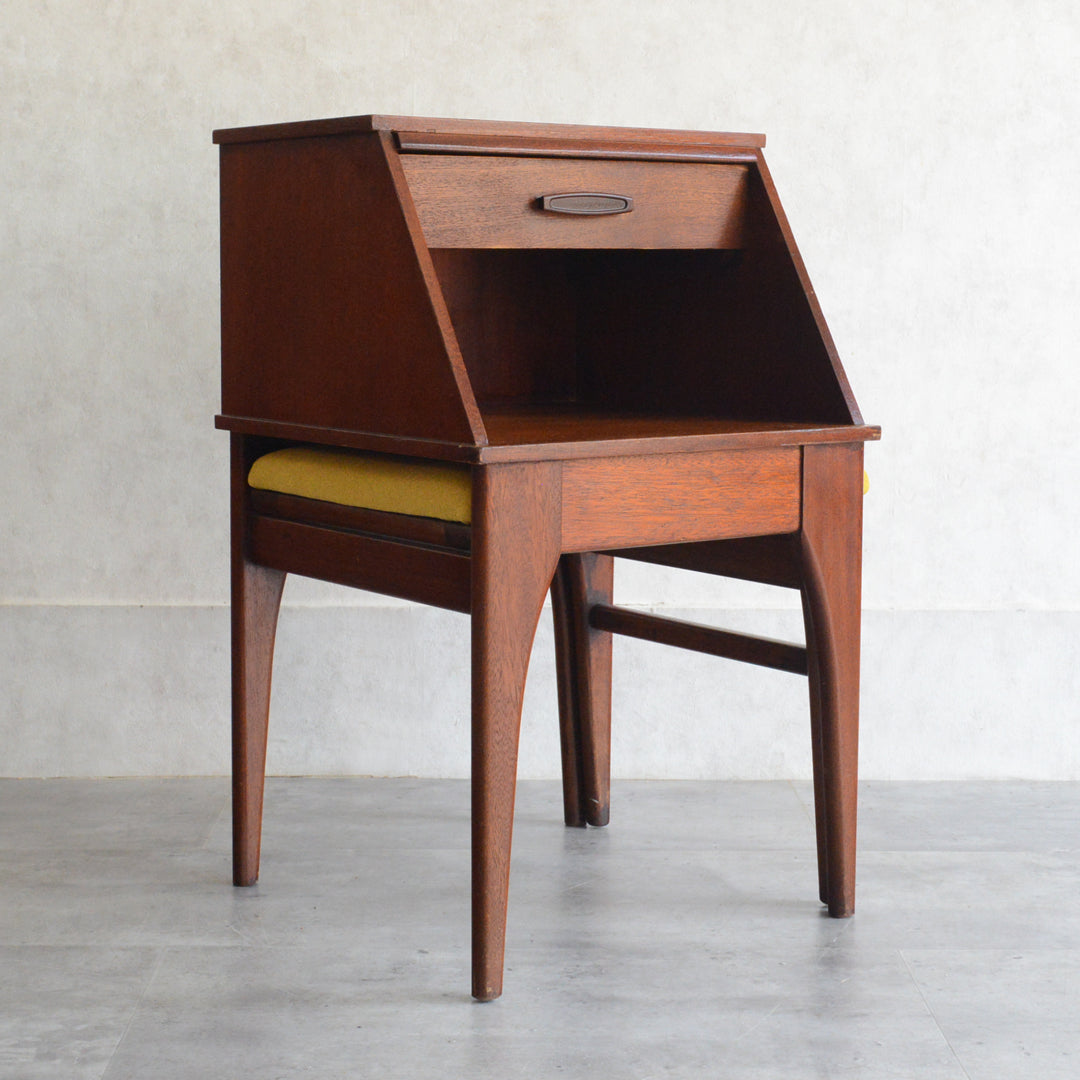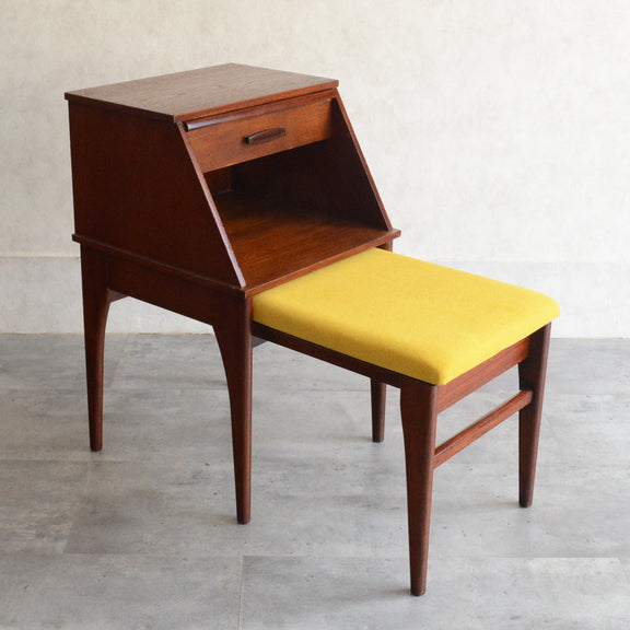 ミッドセンチュリーに流行した、天板に固定電話を置いてベンチに座りながら電話をする為のレトロな家具です。座面部分は押し込むだけで本体に収納可能です。