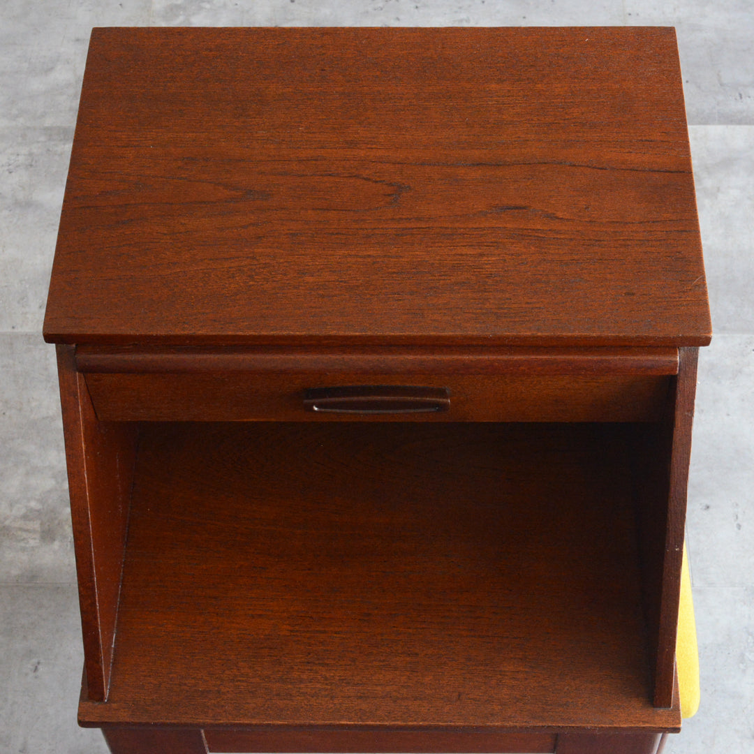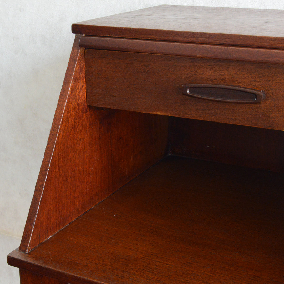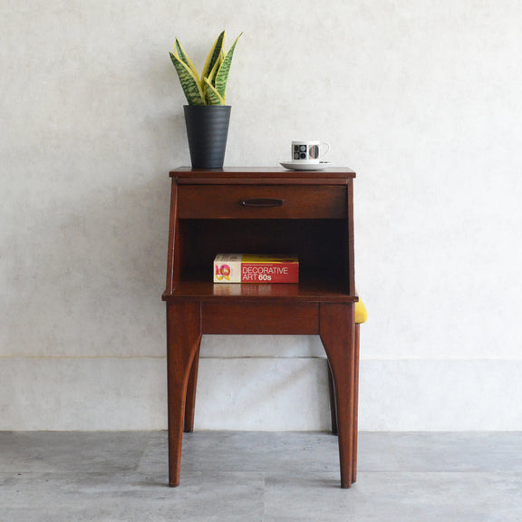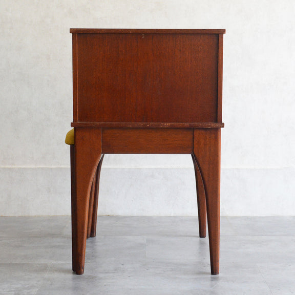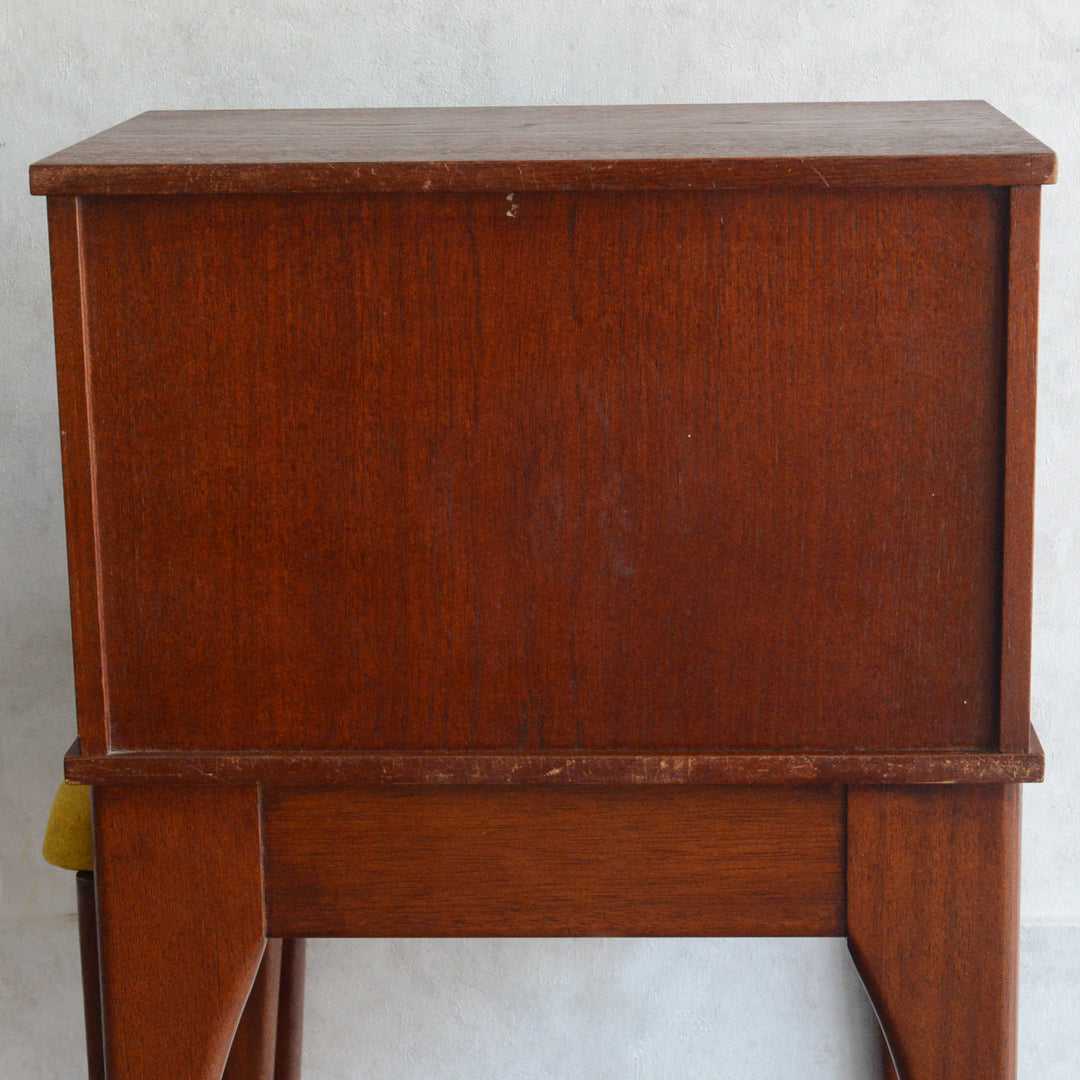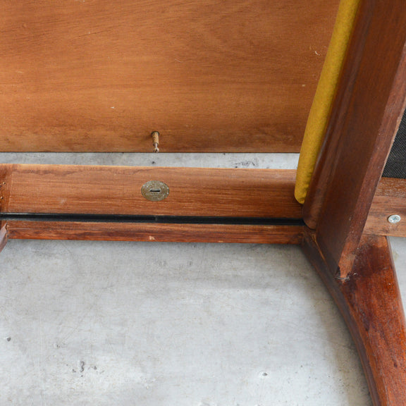 ミッドセンチュリーに流行した、天板に固定電話を置いてベンチに座りながら電話をする為のレトロな家具です。座面部分は押し込むだけで本体に収納可能です。