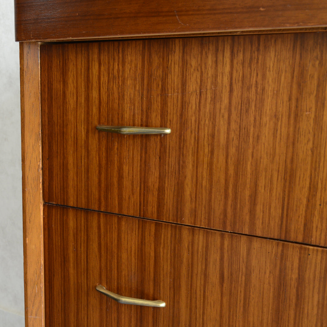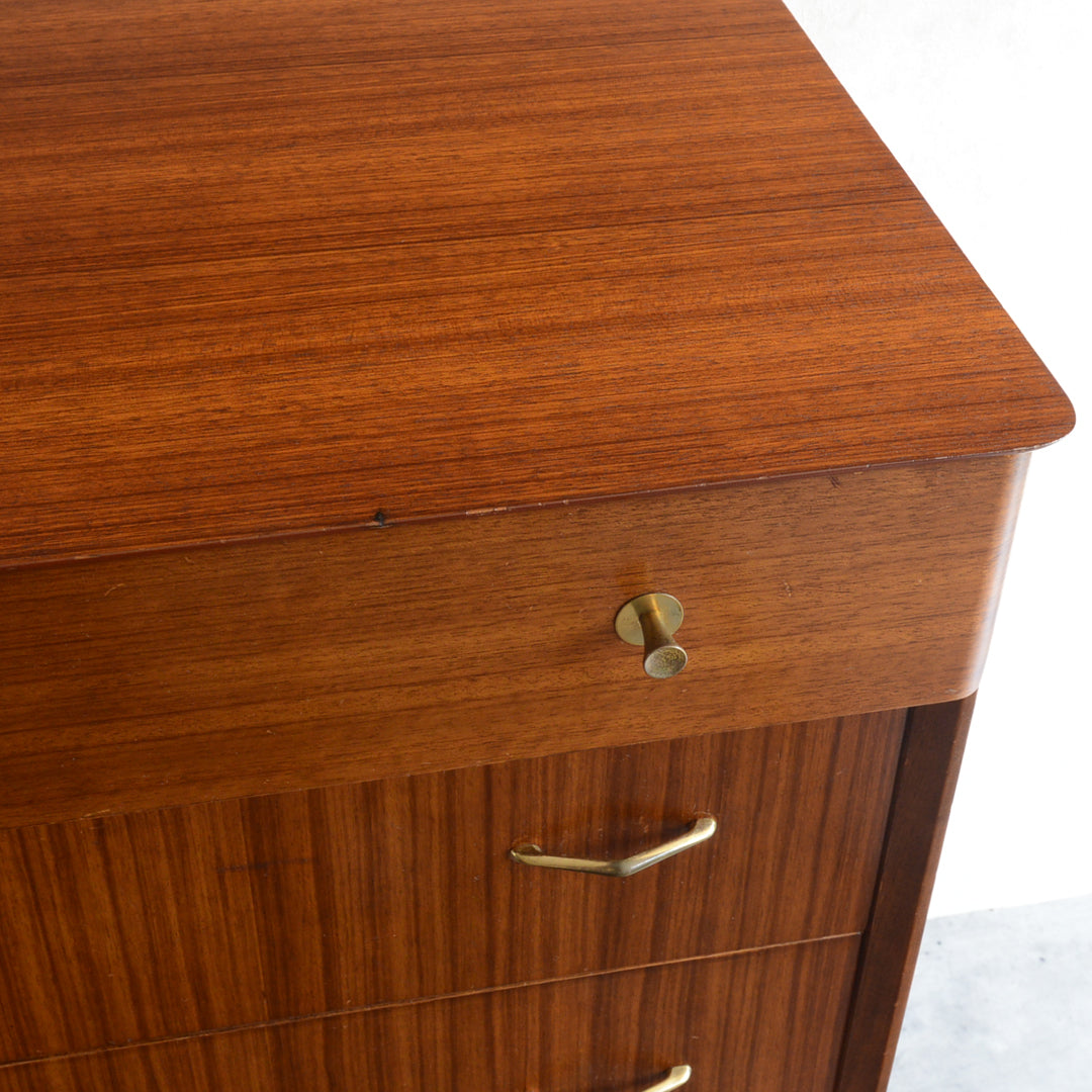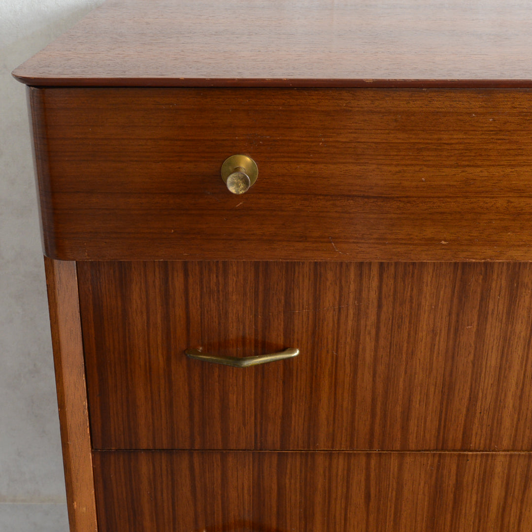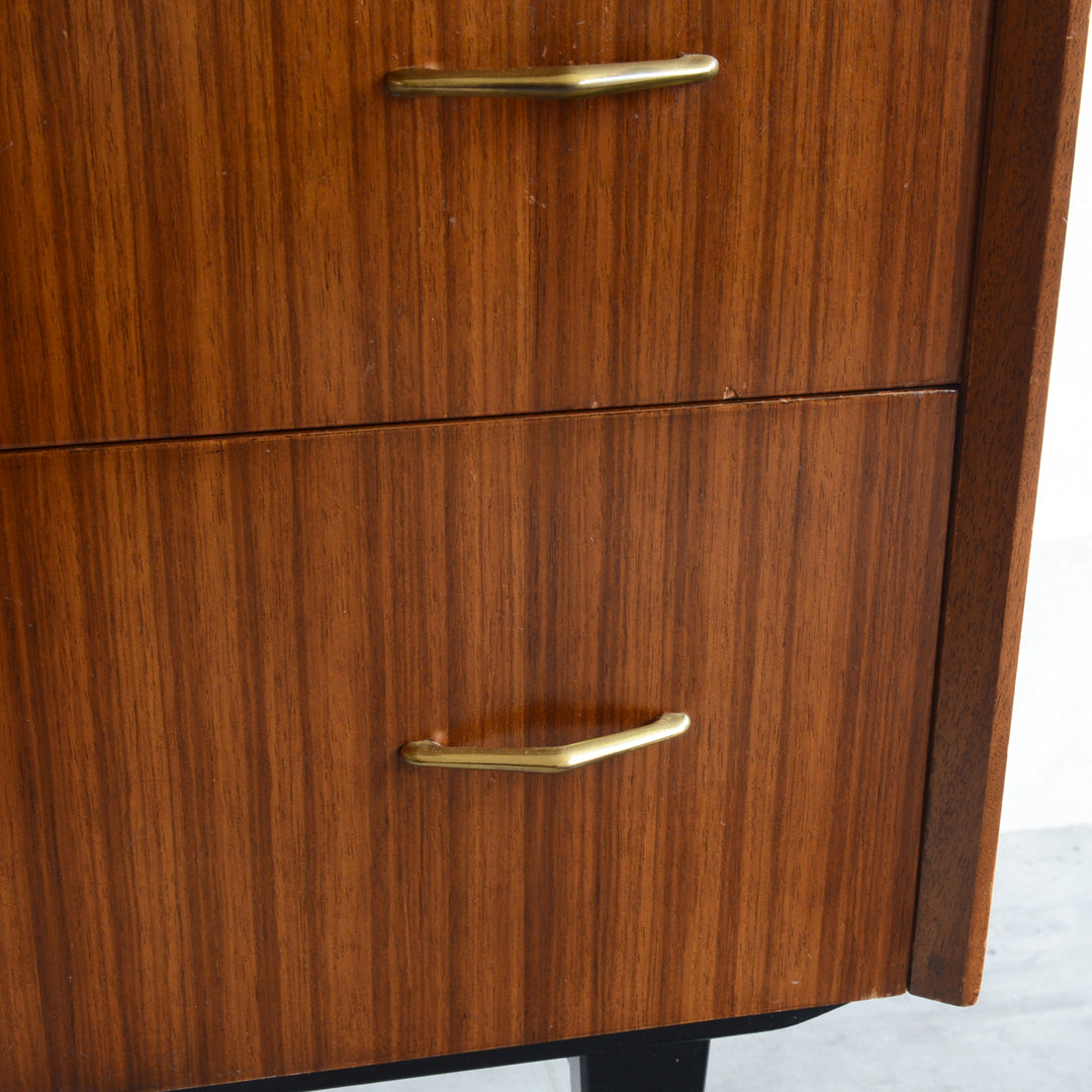 ブラックの脚部、金属の取っ手と脚先が特徴的な4段チェスト