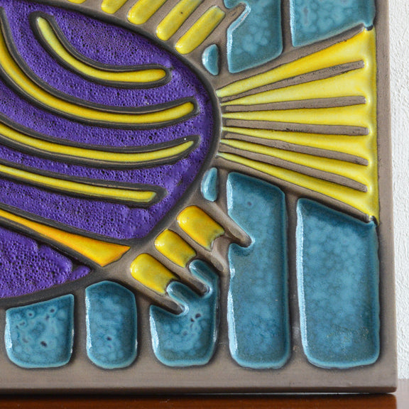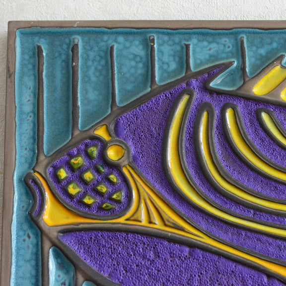 デンマークにて買い付けた鮮やかな色合いの魚のデザインの陶板。