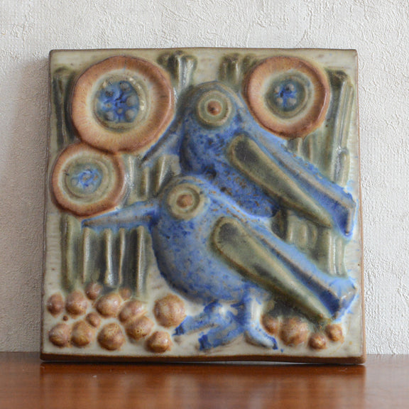 デンマークで買い付けた青い鳥の小振りな陶板。