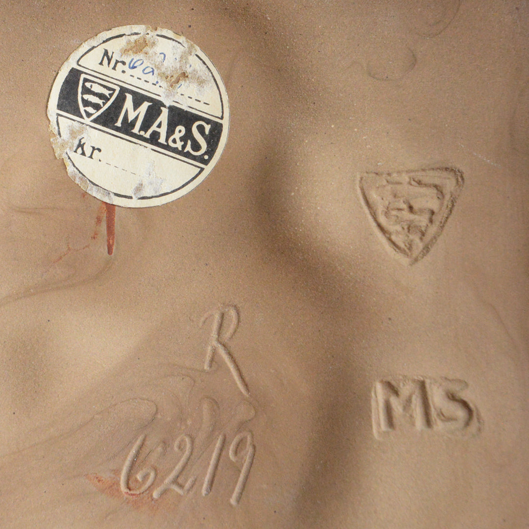 1890年にイェンス・ミケル・アナセン(1859-1931)によって、ボーンホルム島のレンネに1773年に設立された陶器工場を母体に設立されました。ロールストランドやアラビアといった他の北欧の陶器メーカーと比べると、 ミケルアナセン&サンズは、その卓越した品質、技術的に複雑な釉薬、そして美しいフォルムにもかかわらず、しばしば見過ごされがちです。彼の二人の息子の経営下で、1940年代から1950年代にかけて70人以上の従業員を擁していました。新しいオーナーのもと、現在も事業を続けています。三角形の中の三匹の可愛らしいニシンが刻印とされています。