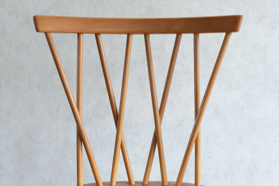 熟練職人によるの素晴らしい技術によって、背もたれの8本のスポークをクロスに。1度見かけたら忘れられないスタイリッシュなデザインですね。