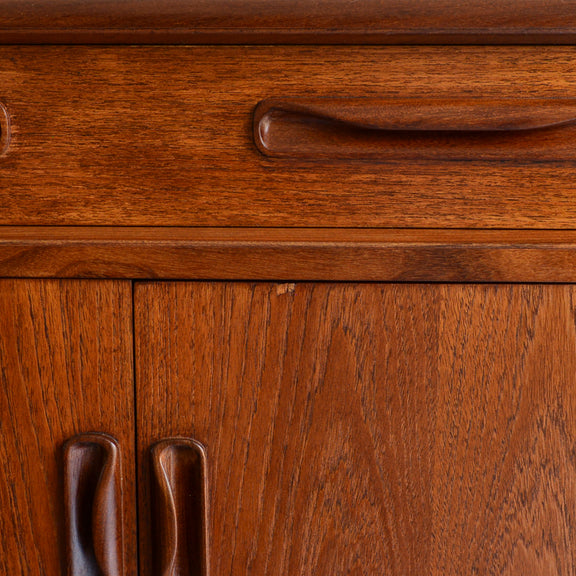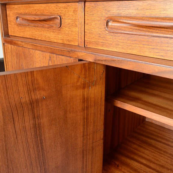 Frescoシリーズは当時のイギリスで最も人気があり、チークとアフロモシアの木材のバイカラーの美しい木目と、巻貝型の取っ手が特徴です。