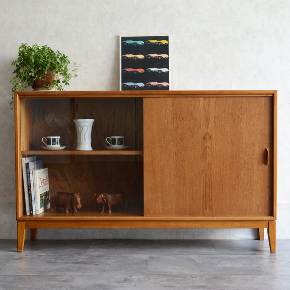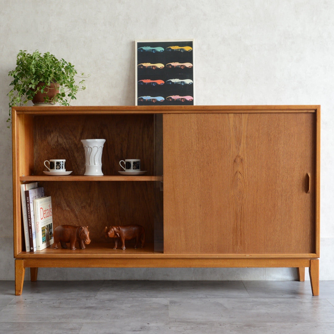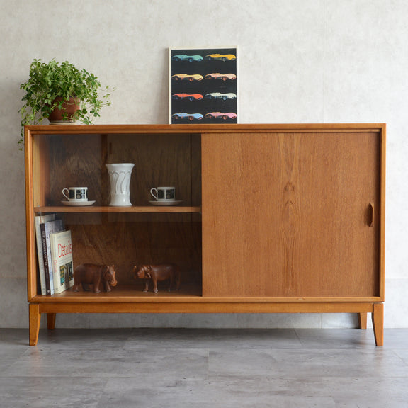 カップボードとしてガラス部分でディスプレイを楽しみながら、チーク扉内には日用品等を見せずに収納する事も出来ます。