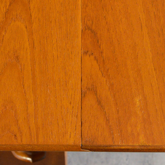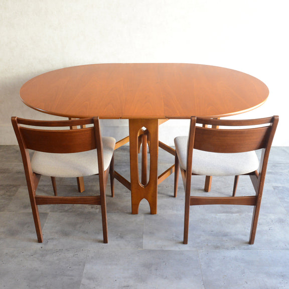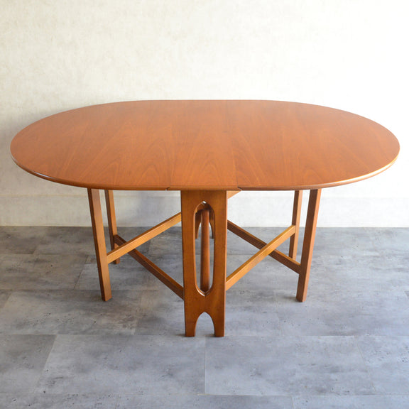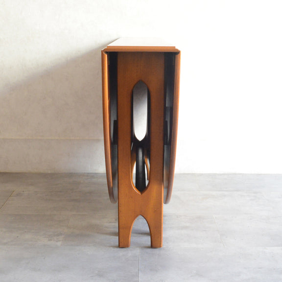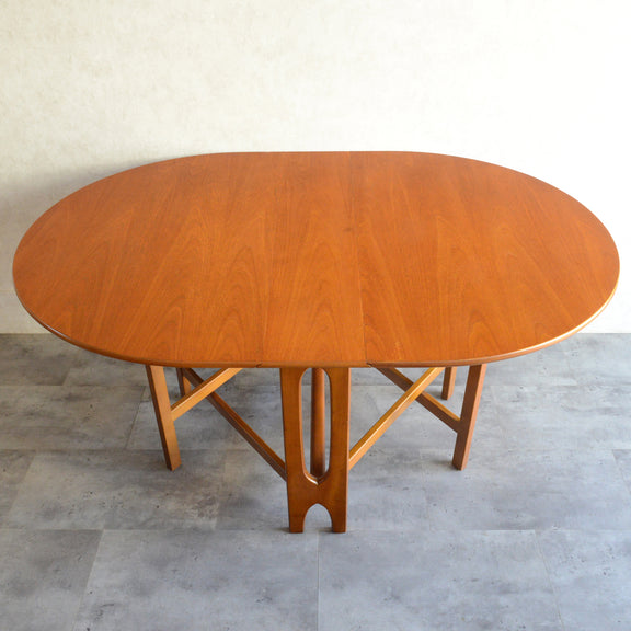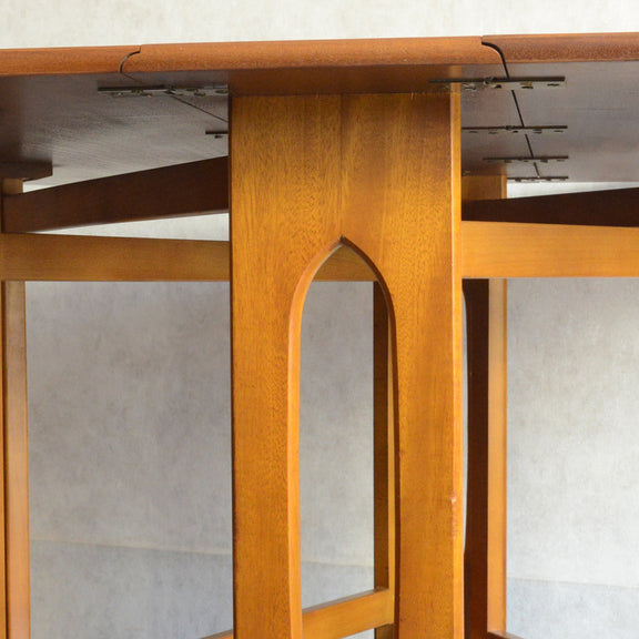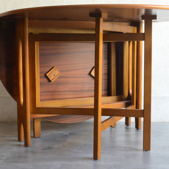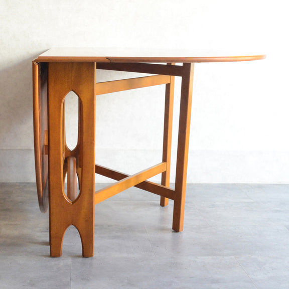こちらはDrop Leaf Tableとも呼ばれるゲートレッグスタイル。脚部を動かすことによって、広々とした幅約155cmのテーブルを約25cmまでコンパクトに畳む事ができます。
