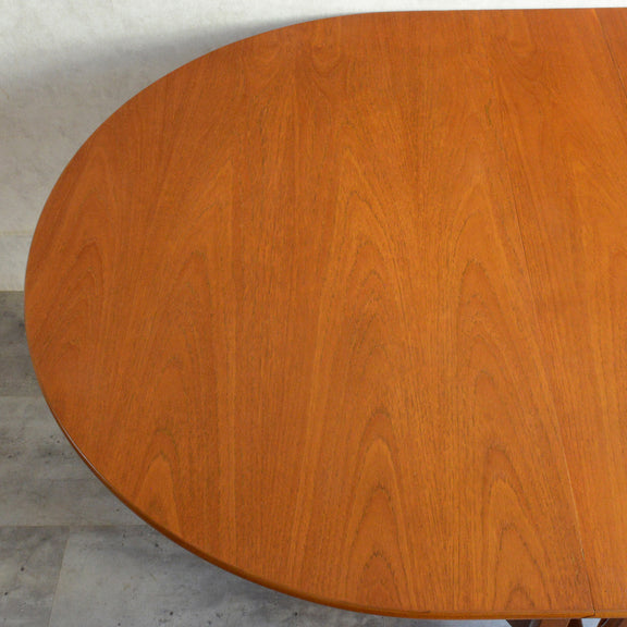良質なチークの天板が美しい楕円形(オーバル)のエクステンション(伸長式)テーブルです。