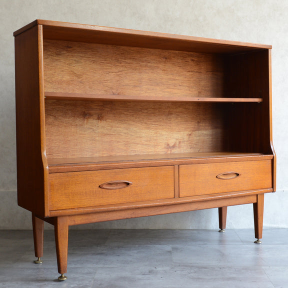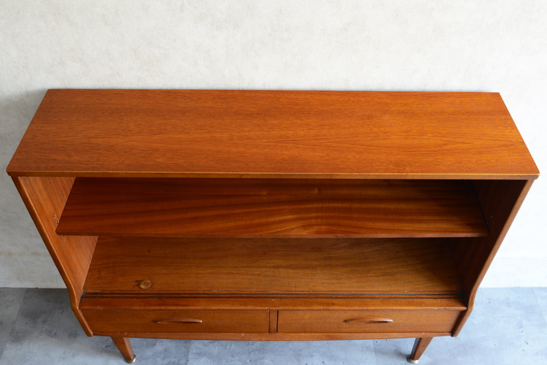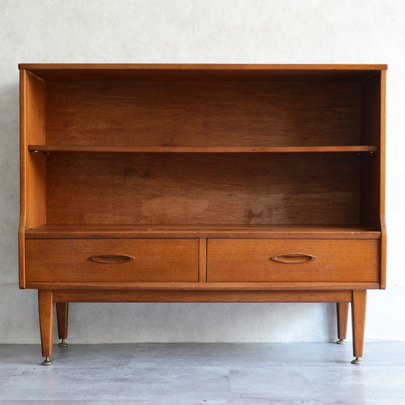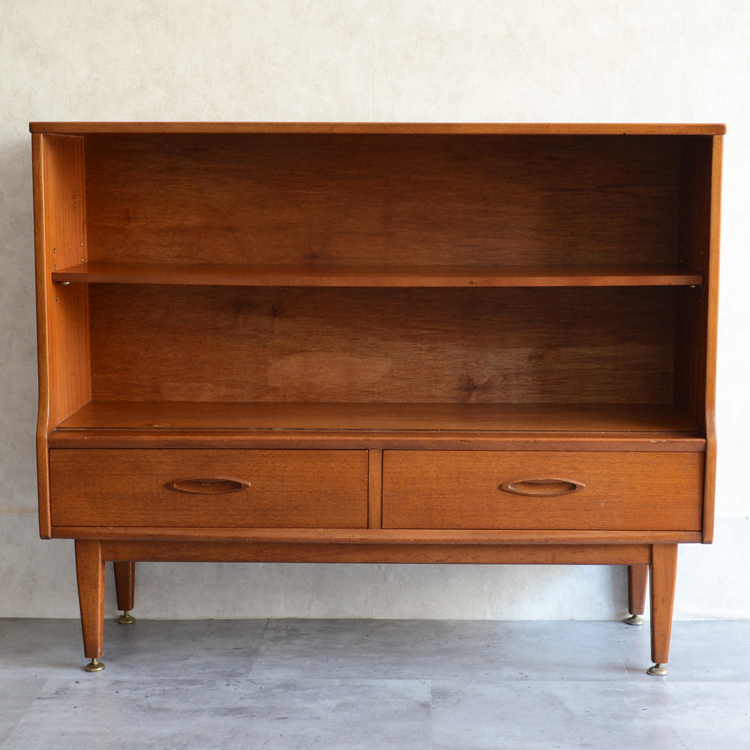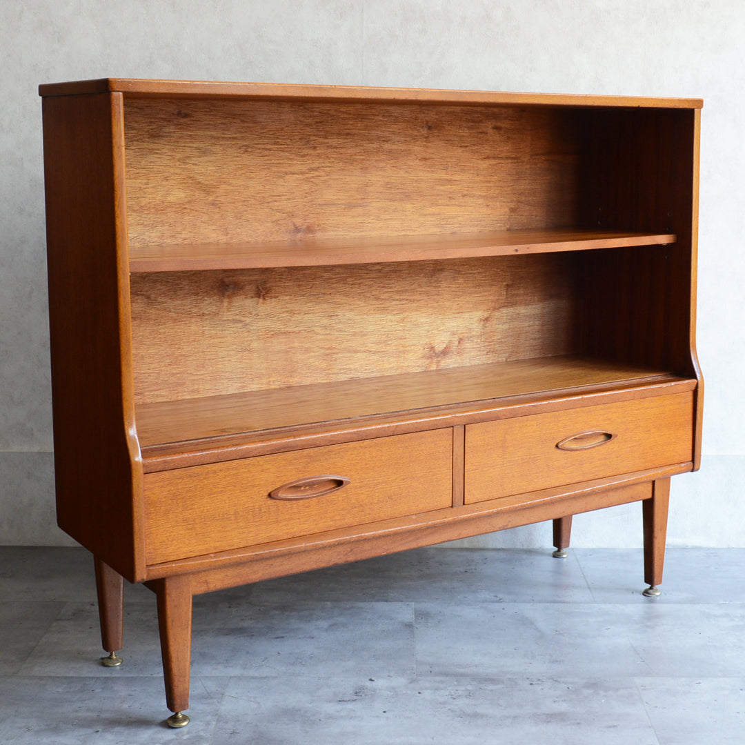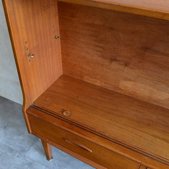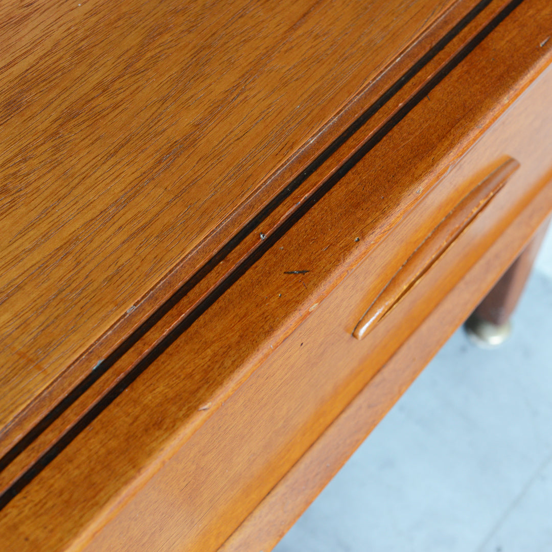 ジェンティーク独特の葉っぱの様な抽斗の把手と、金属が付いた脚部がミッドセンチュリーらしいコンパクトなキャビネット