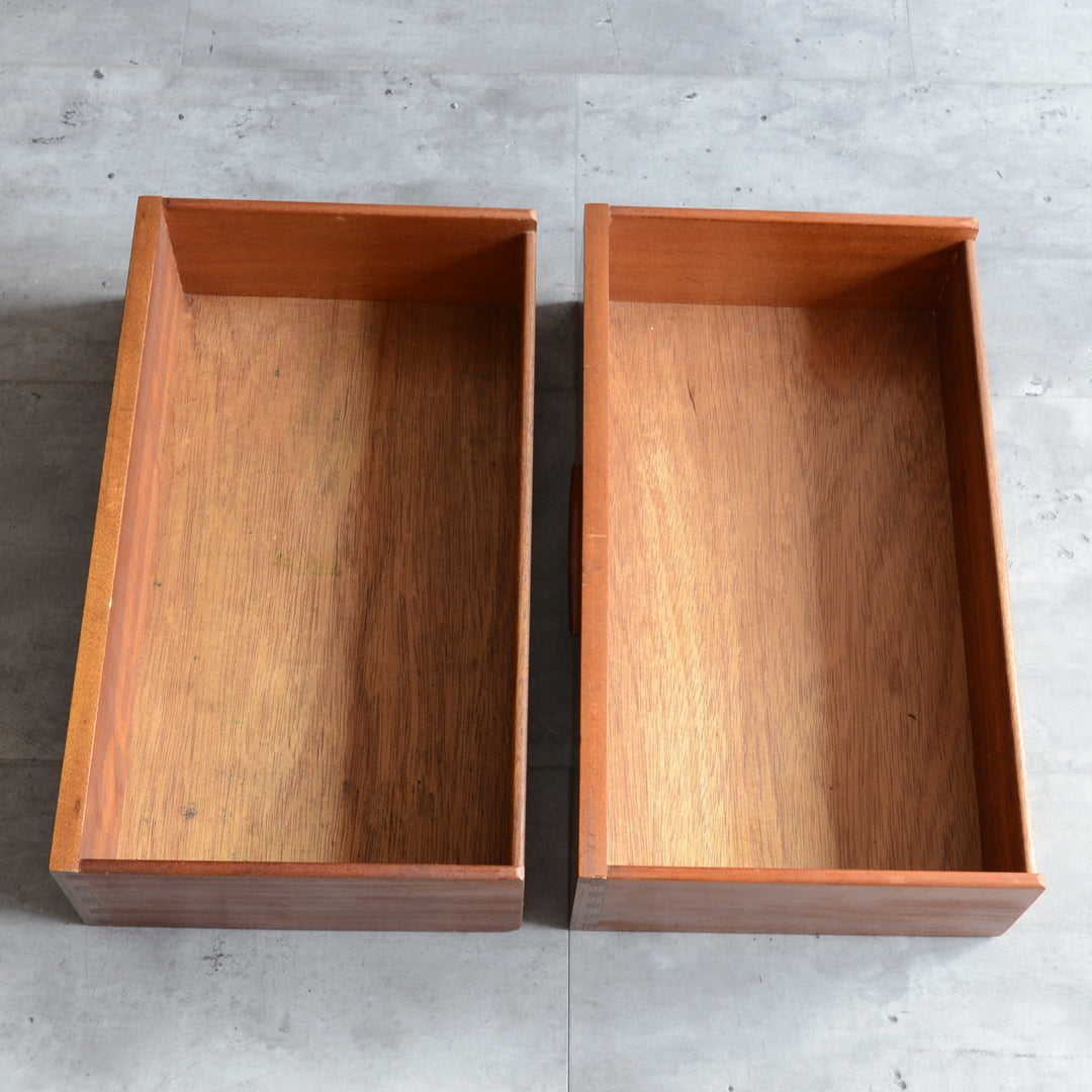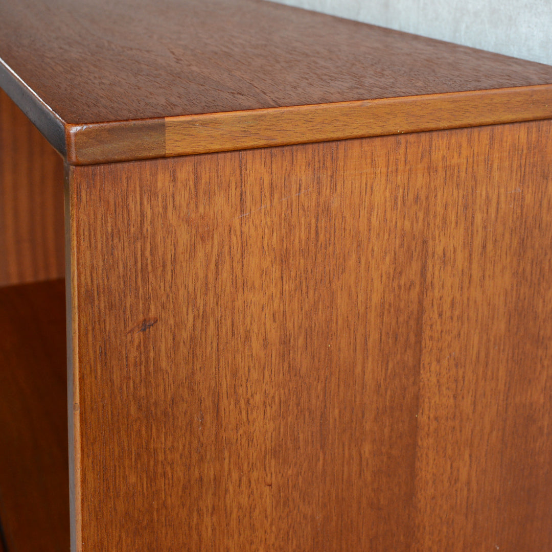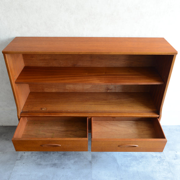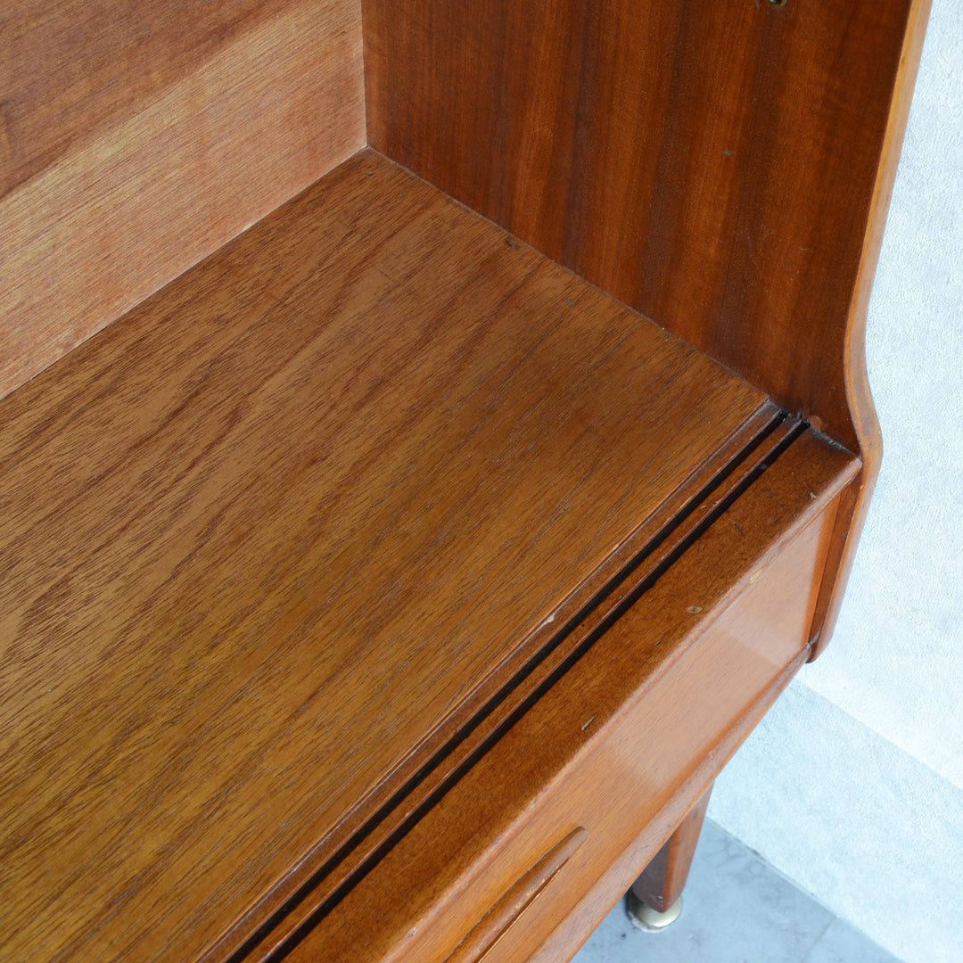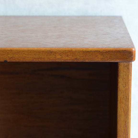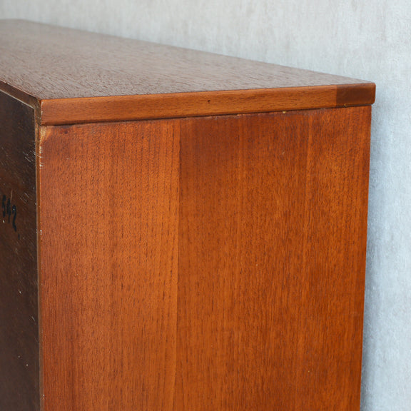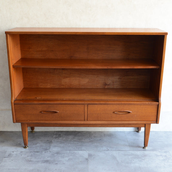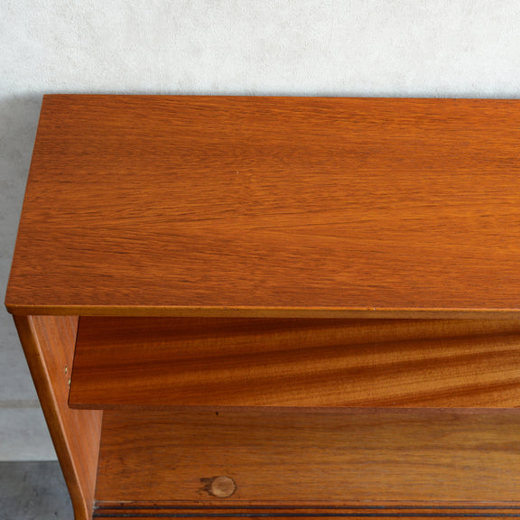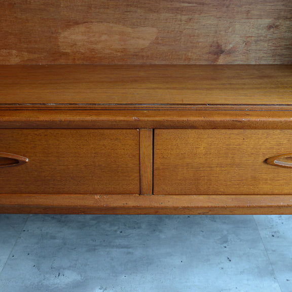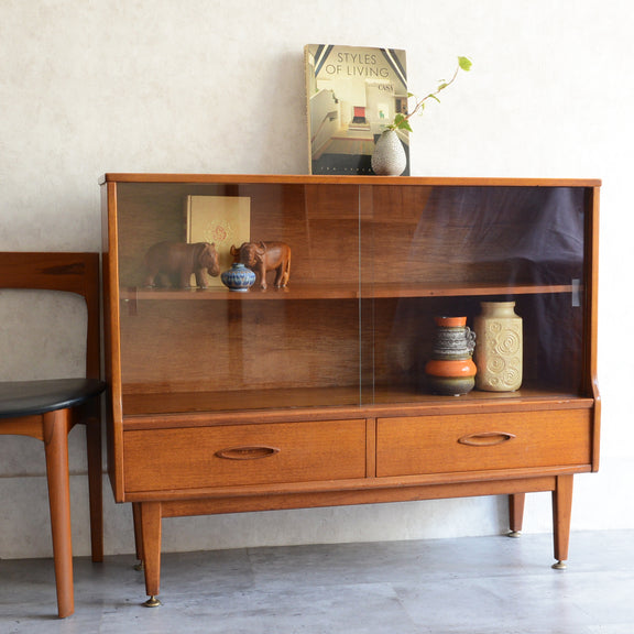 ジェンティーク独特の葉っぱの様な抽斗の把手と、金属が付いた脚部がミッドセンチュリーらしいコンパクトなキャビネット