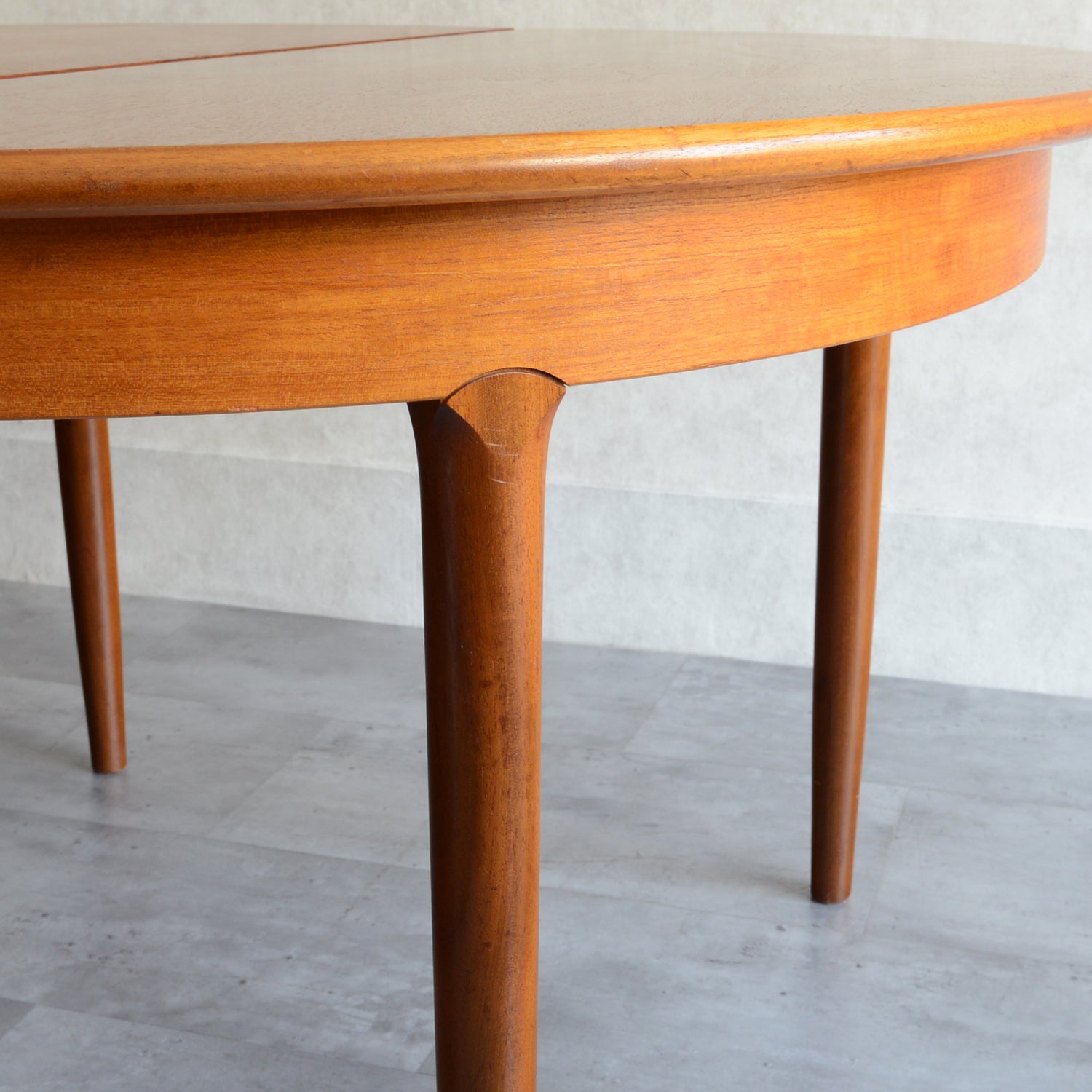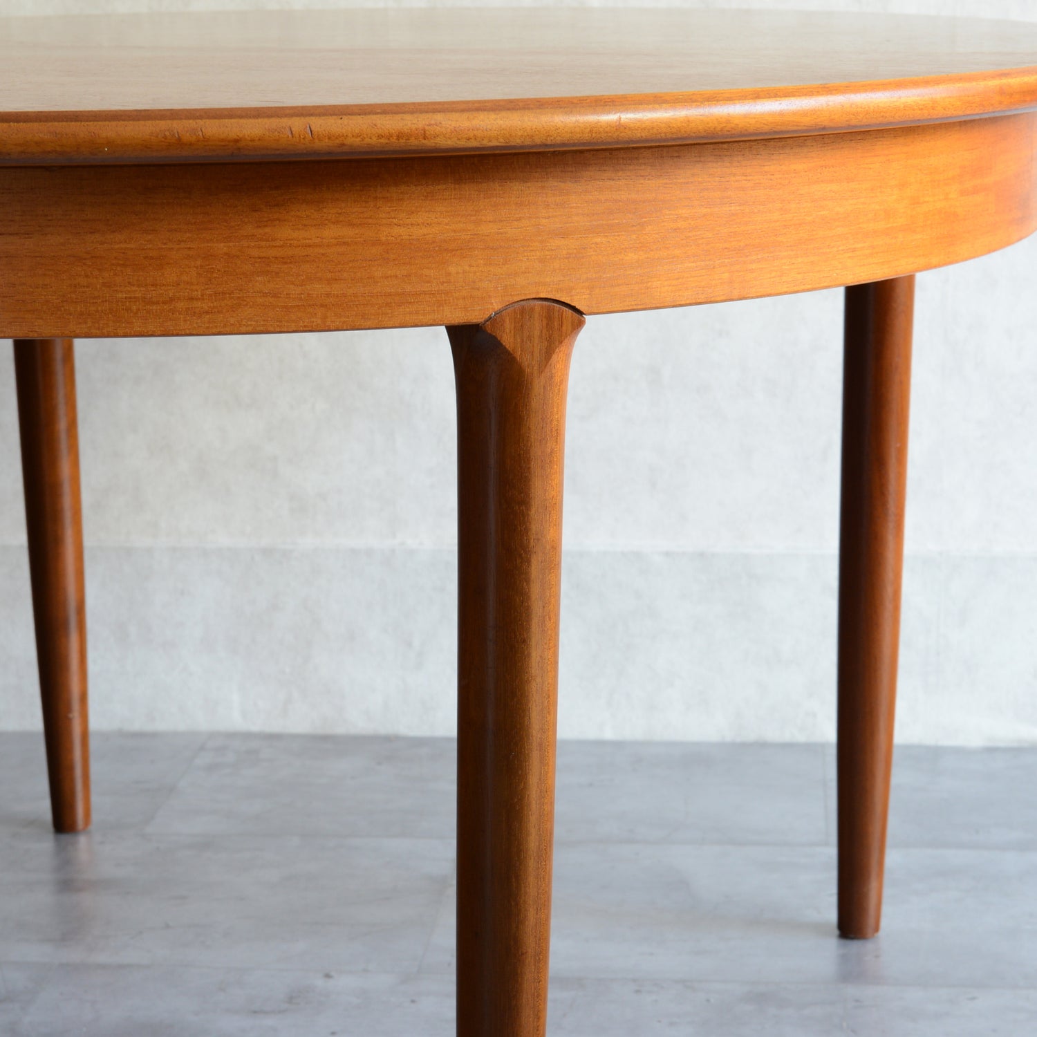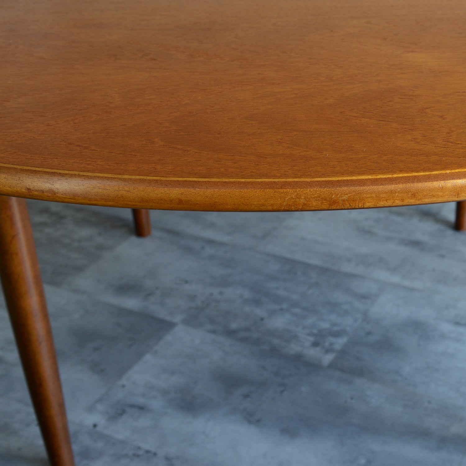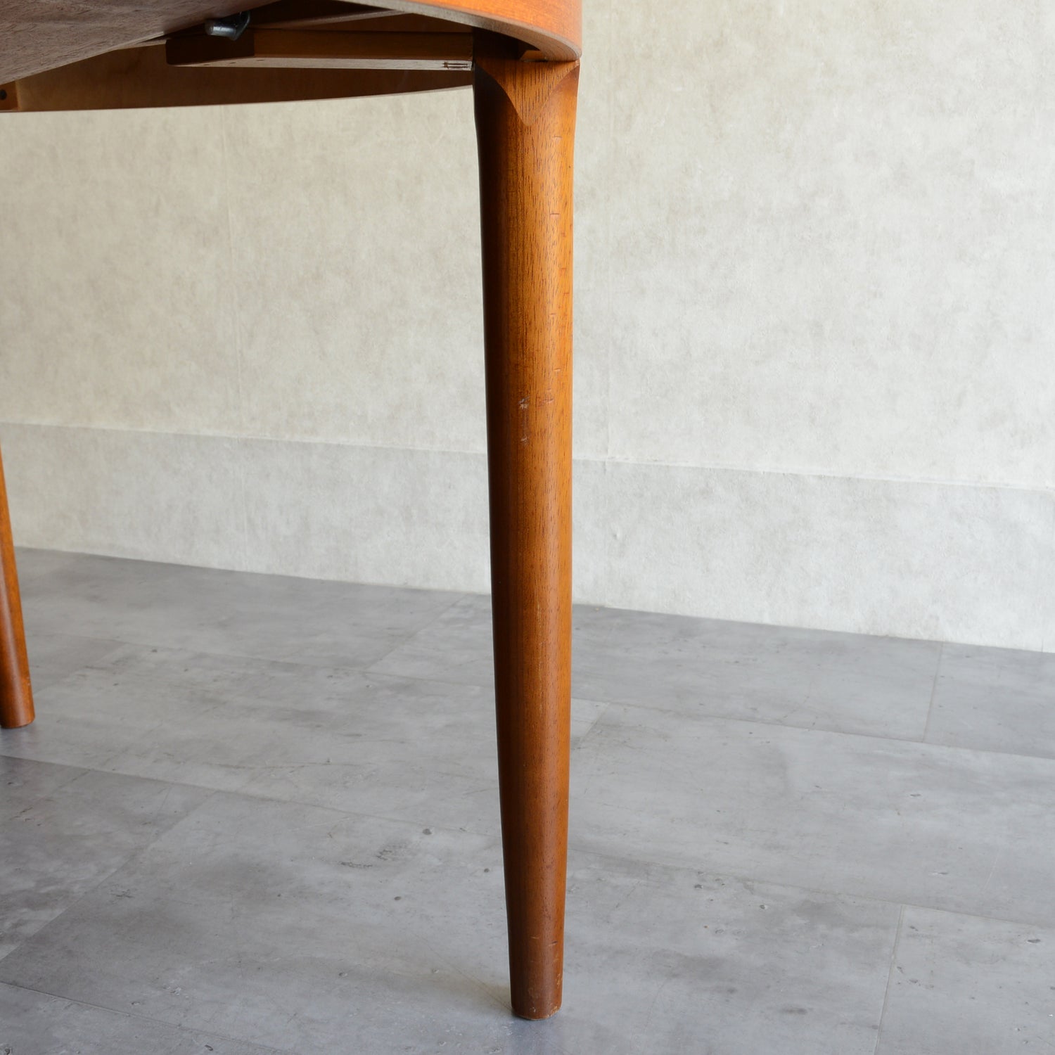 剝離再塗装済のチークの天板が美しく、脚部の付け根のデザインも丁寧に造作されています。