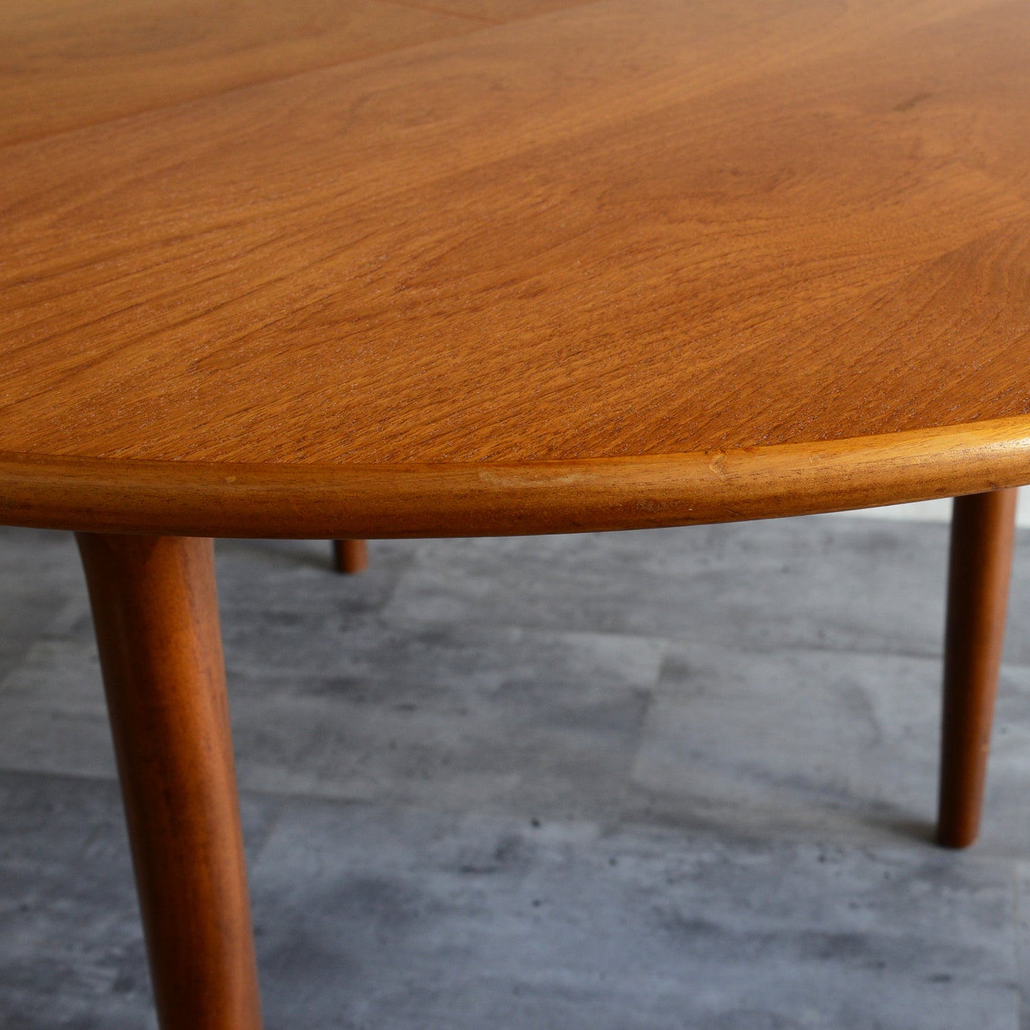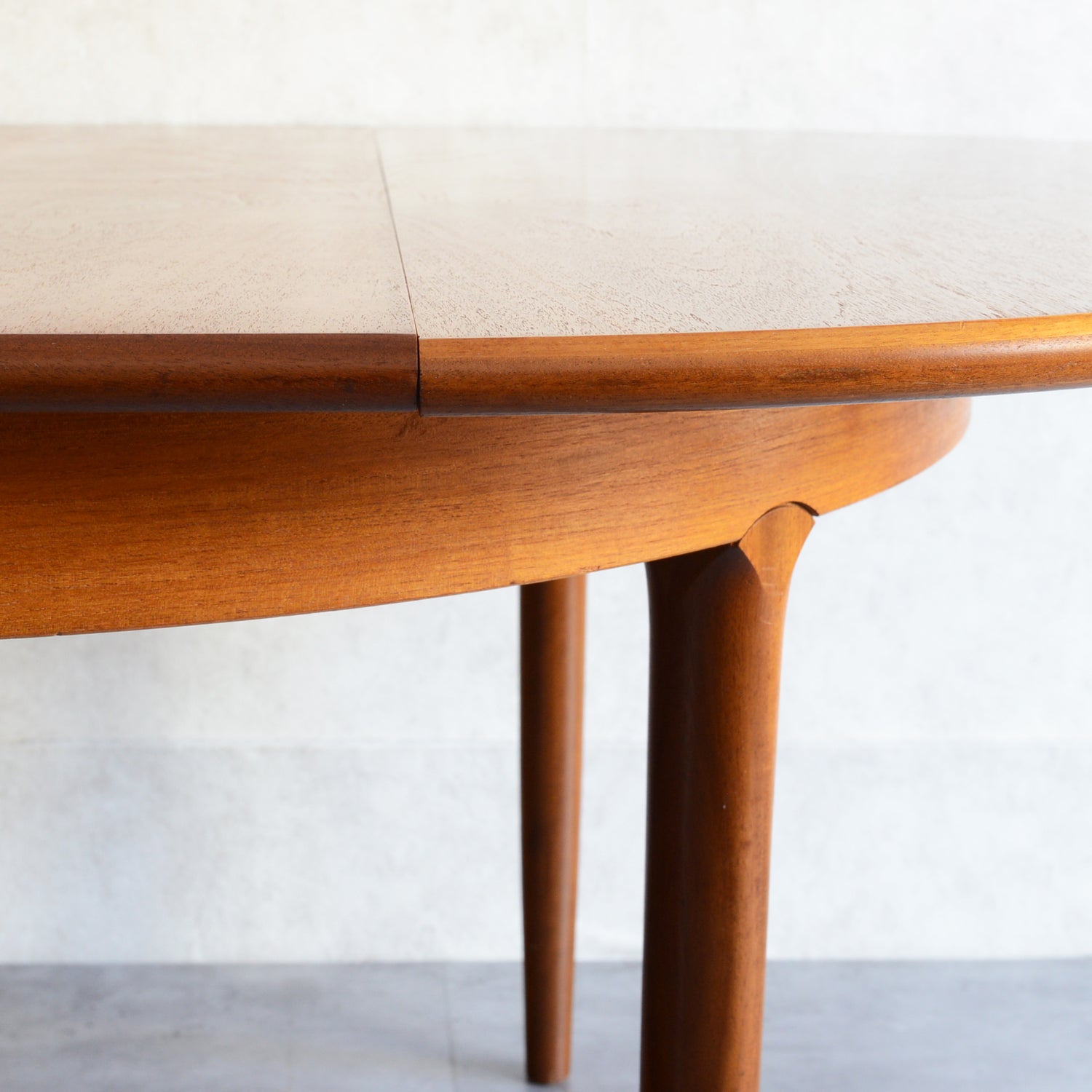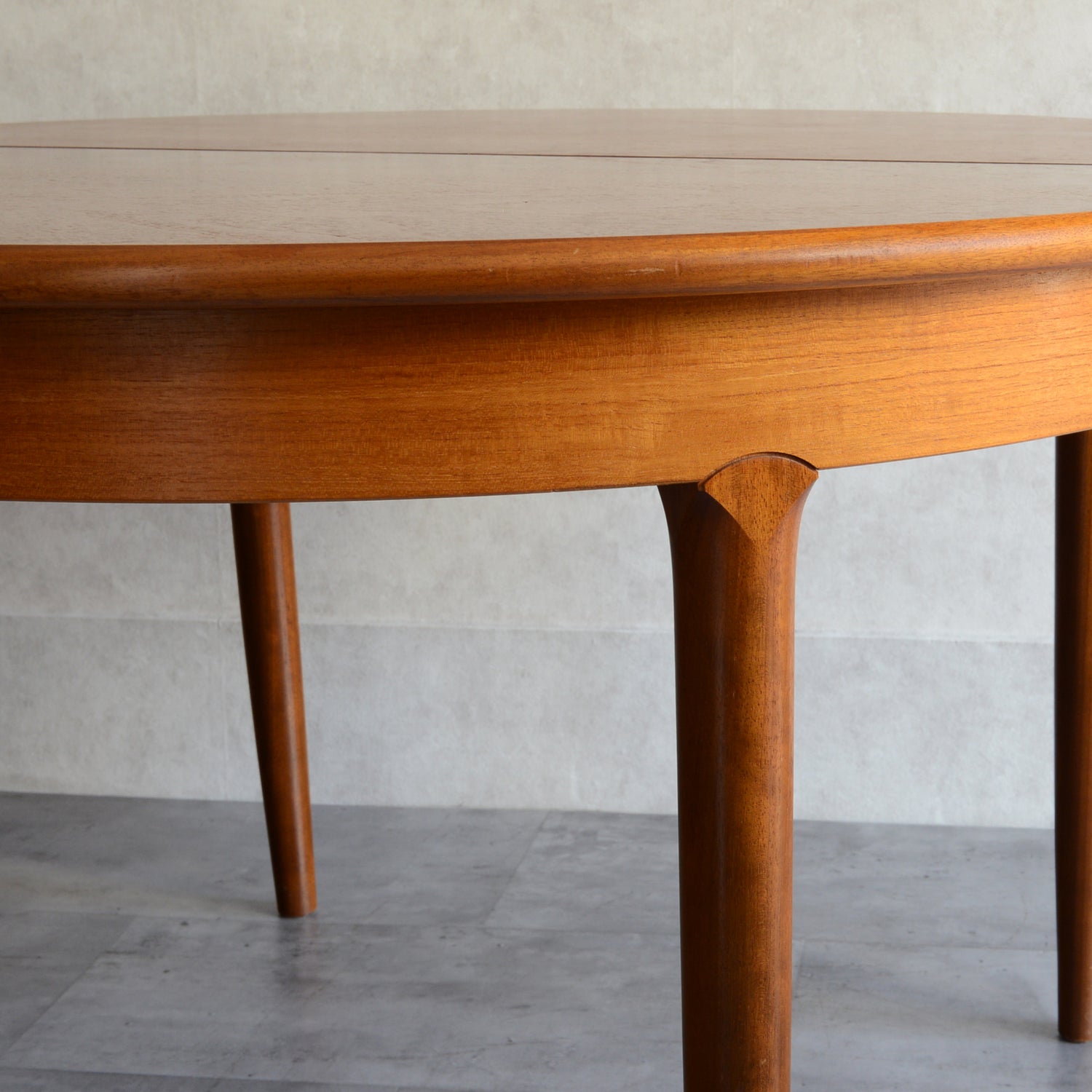 剝離再塗装済のチークの天板が美しく、脚部の付け根のデザインも丁寧に造作されています。