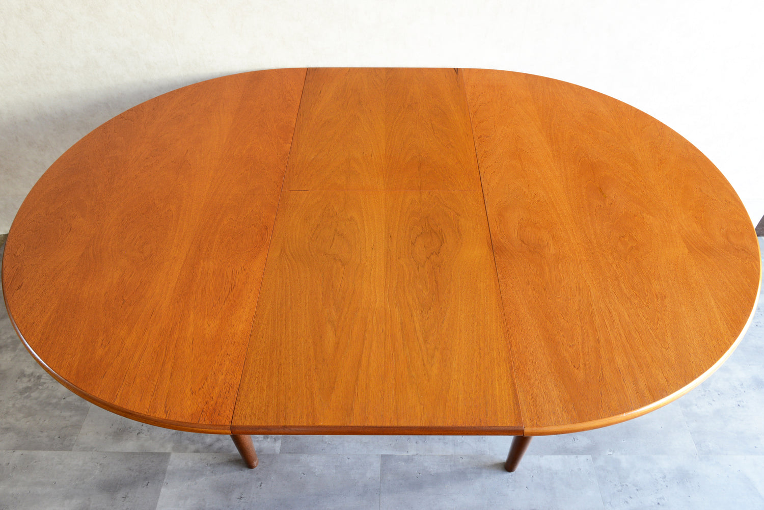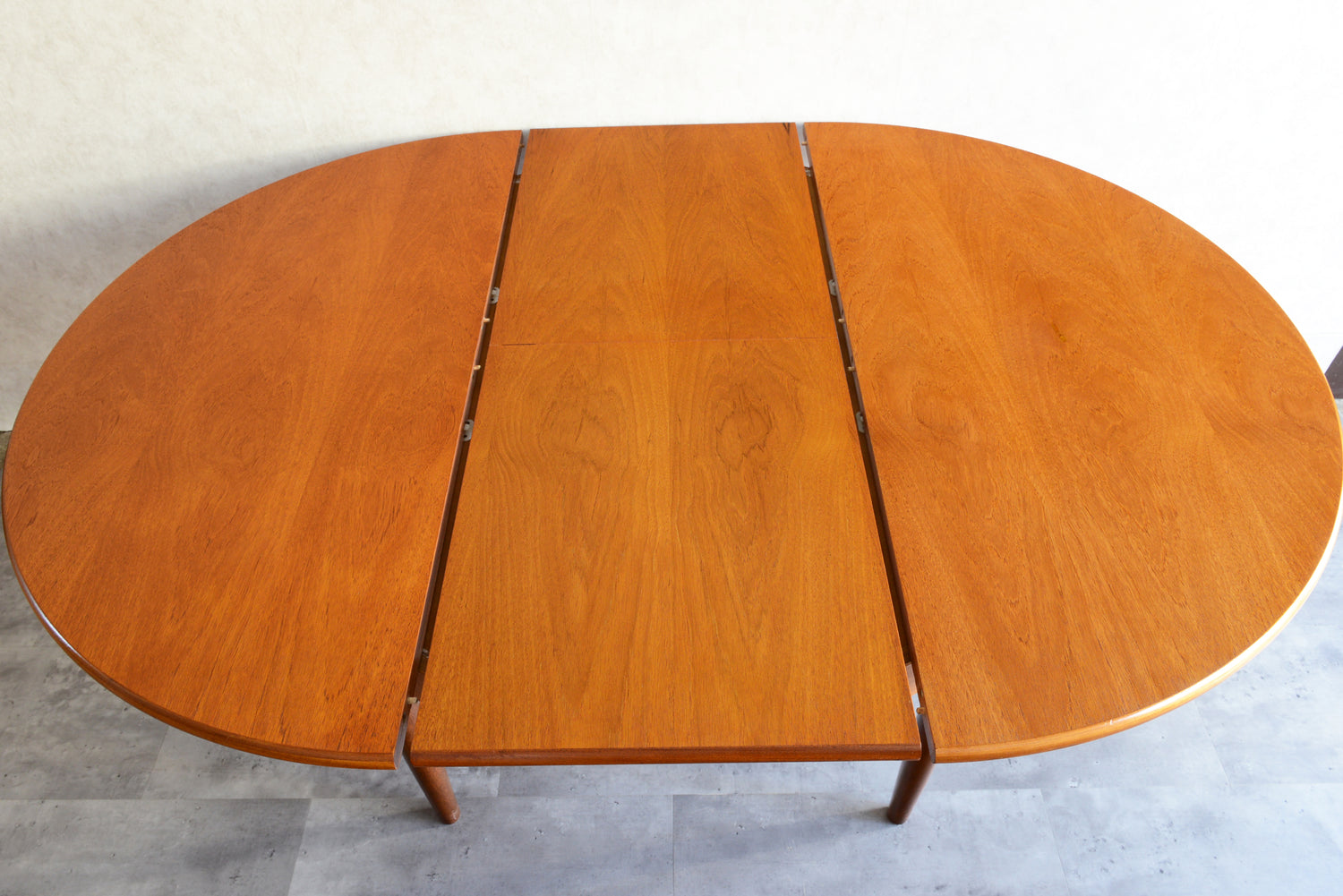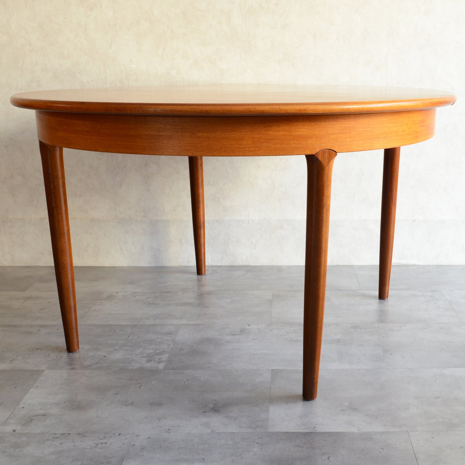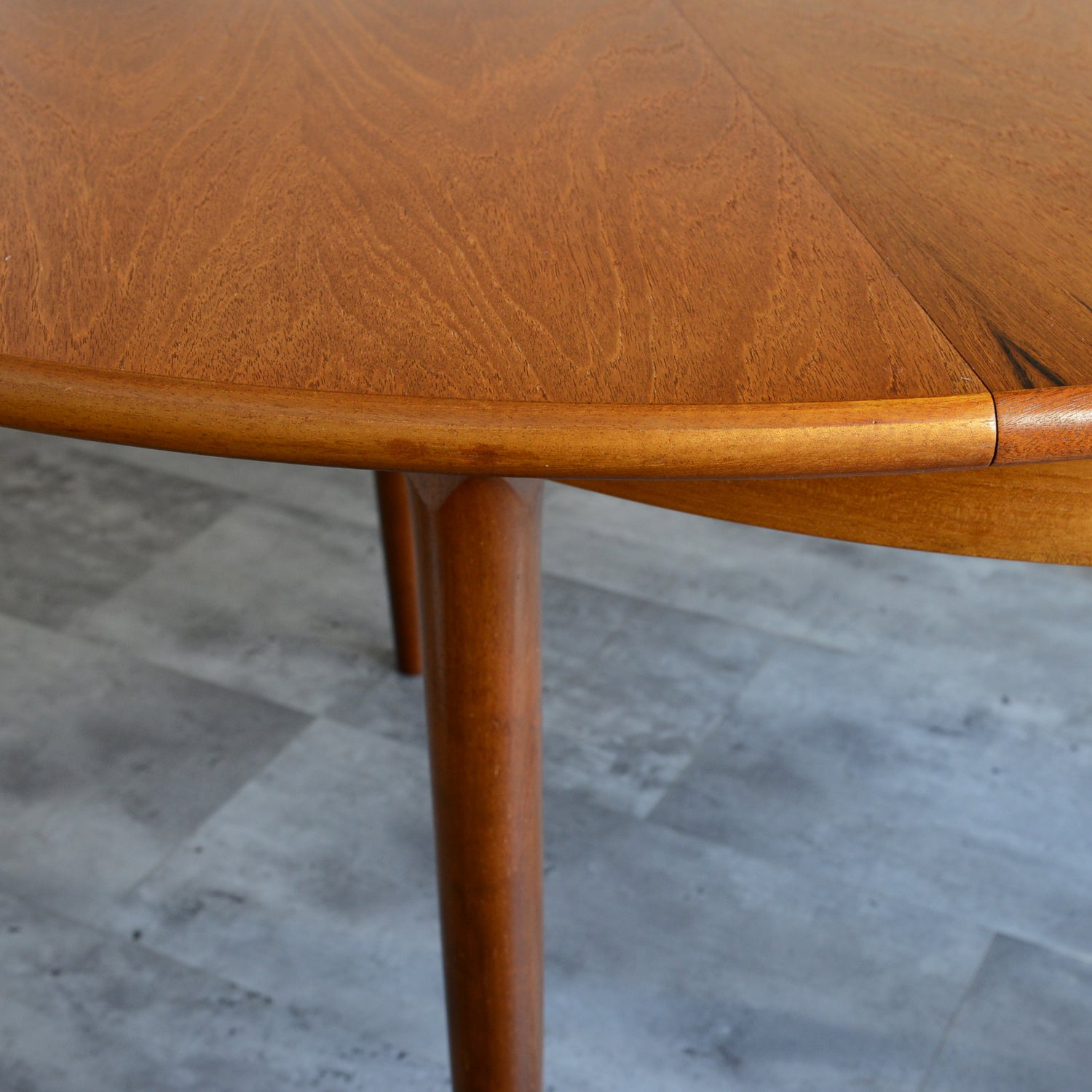 剝離再塗装済のチークの天板が美しく、脚部の付け根のデザインも丁寧に造作されています。