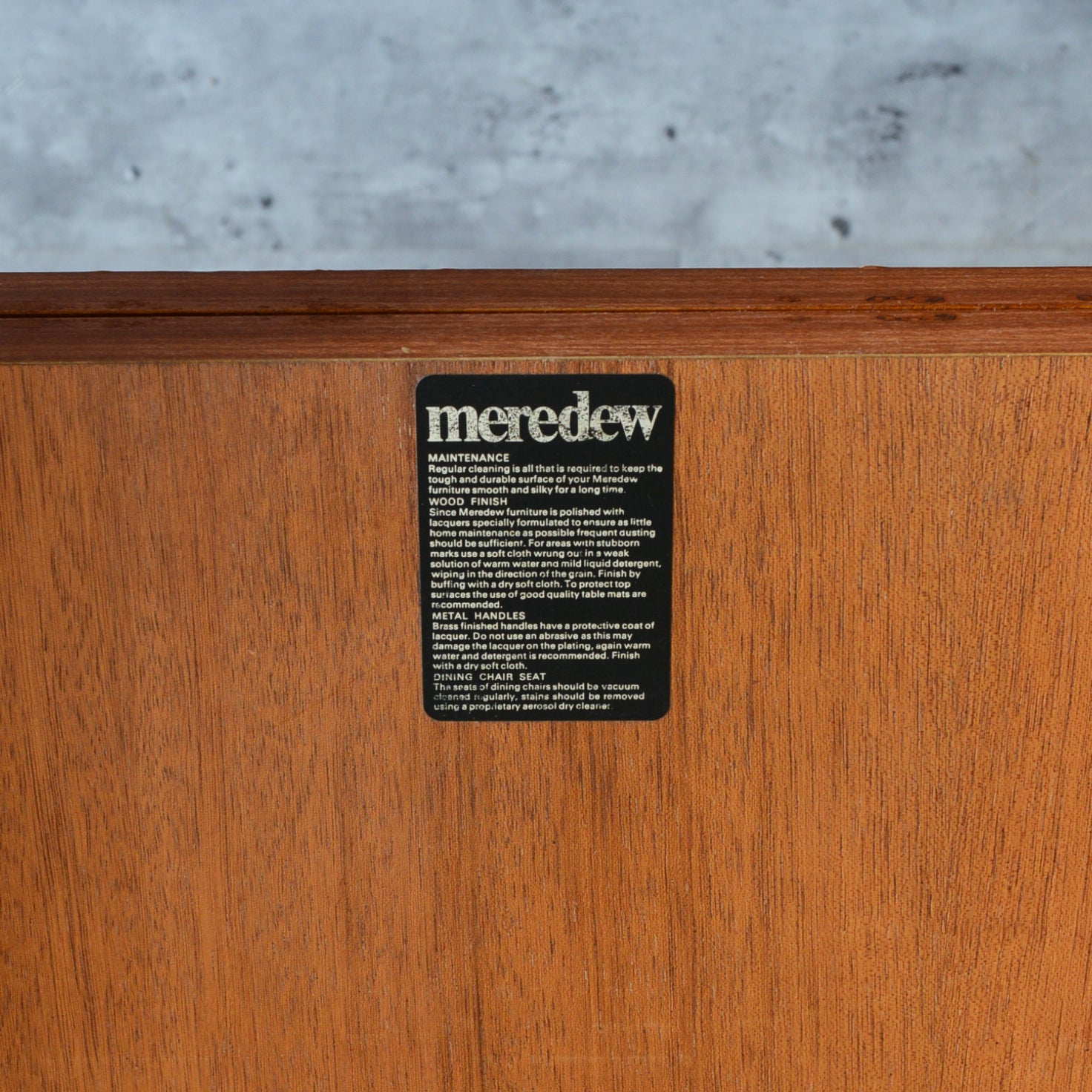 メレデューは寝室の家具で特によく知られており、オーク、チーク、トーラなどの広葉樹で幅広い作品を生産しています。同社は1970年代に買収され、ヴィンテージ品でのみ流通しています。