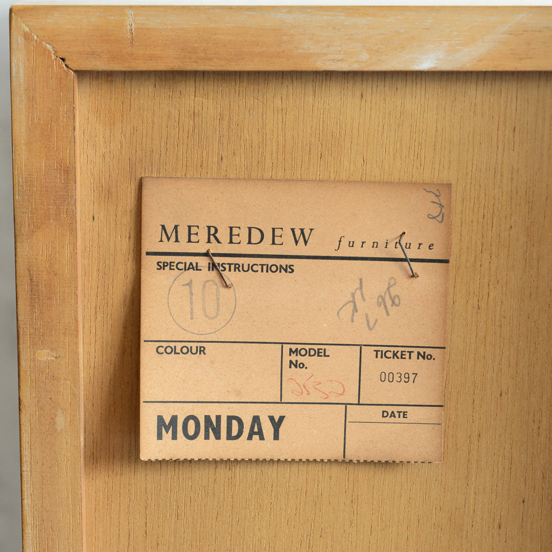 メレデューは寝室の家具で特によく知られており、オーク、チーク、トーラなどの広葉樹で幅広い作品を生産しています。同社は1970年代に買収され、ヴィンテージ品でのみ流通しています。