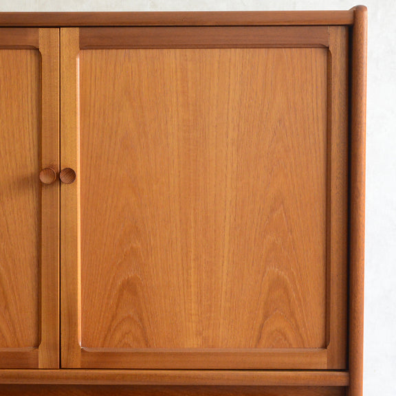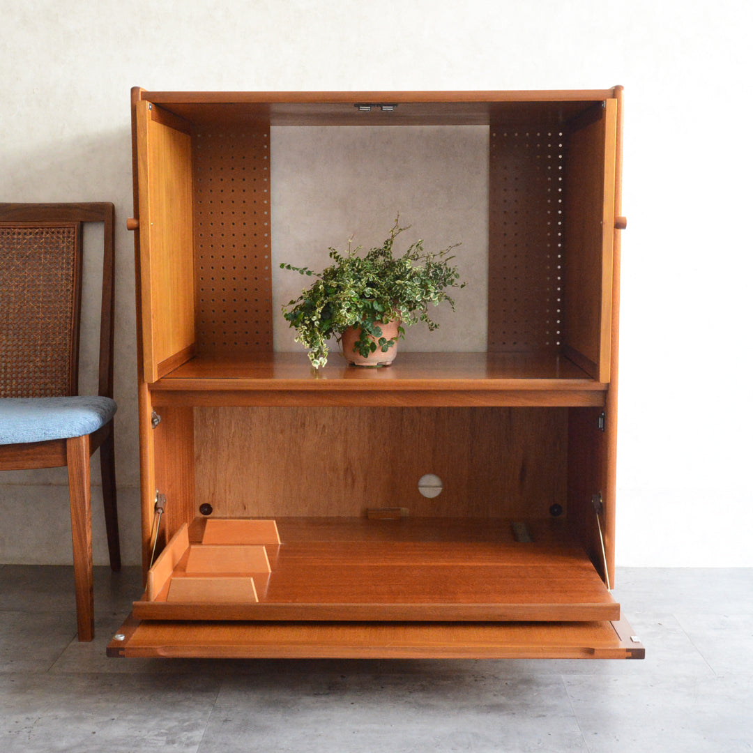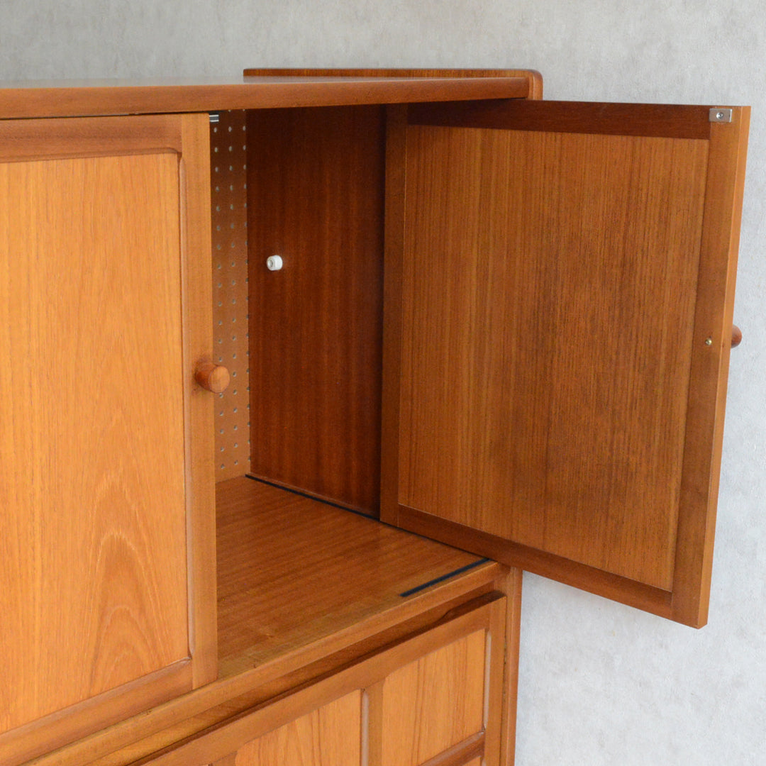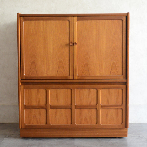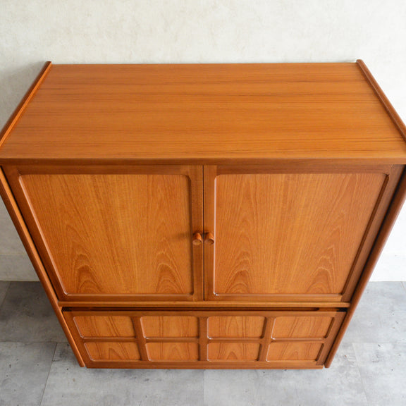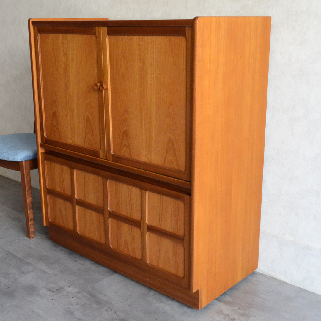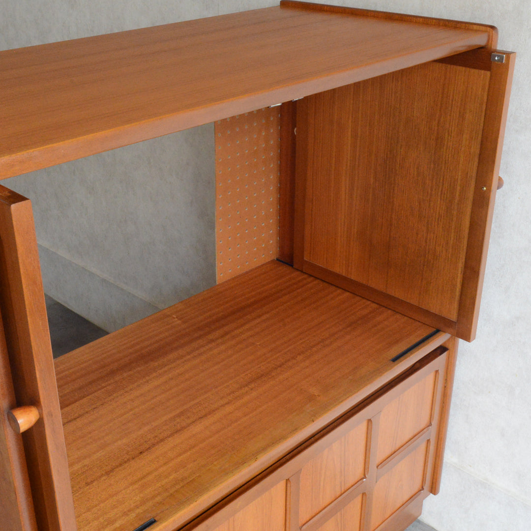 英国製キャビネットの傑作として知られるNathanが、美しく仕上げたミッドセンチュリーのテレビキャビネットです。上段はインセットスライドドア機構を備え、下段のAV機器用の収納もスムーズで省スペースな出し入れが可能です。