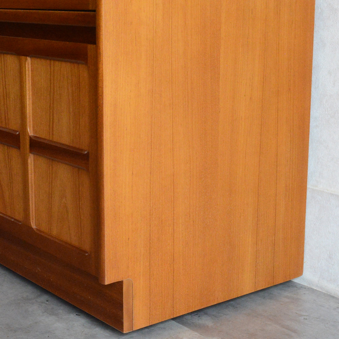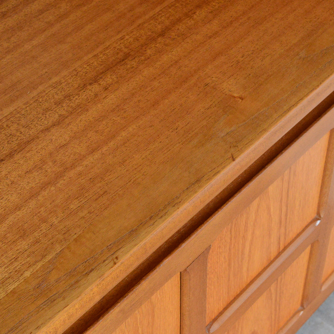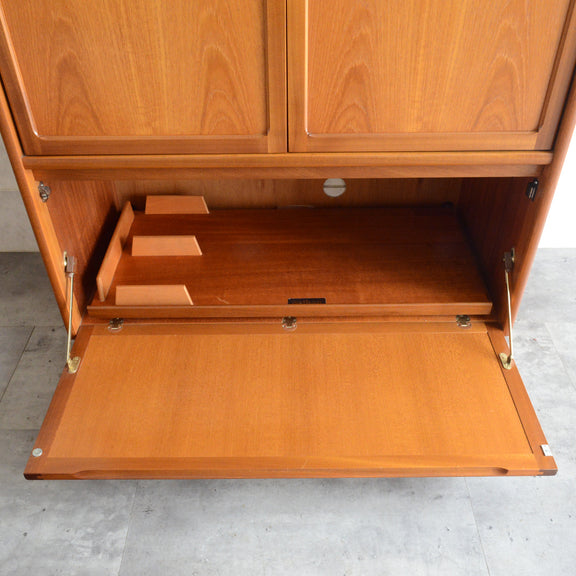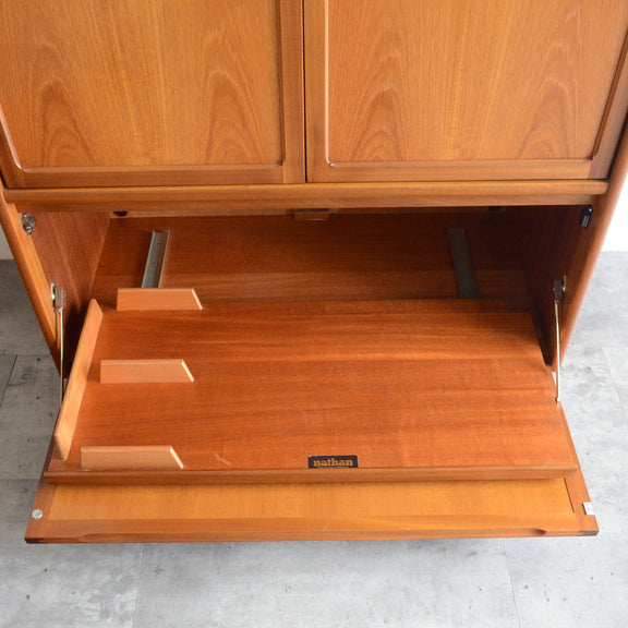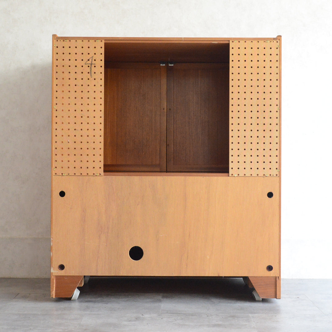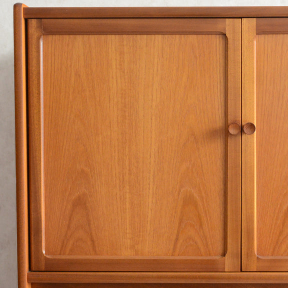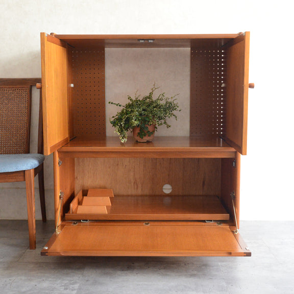 英国製キャビネットの傑作として知られるNathanが、美しく仕上げたミッドセンチュリーのテレビキャビネットです。上段はインセットスライドドア機構を備え、下段のAV機器用の収納もスムーズで省スペースな出し入れが可能です。