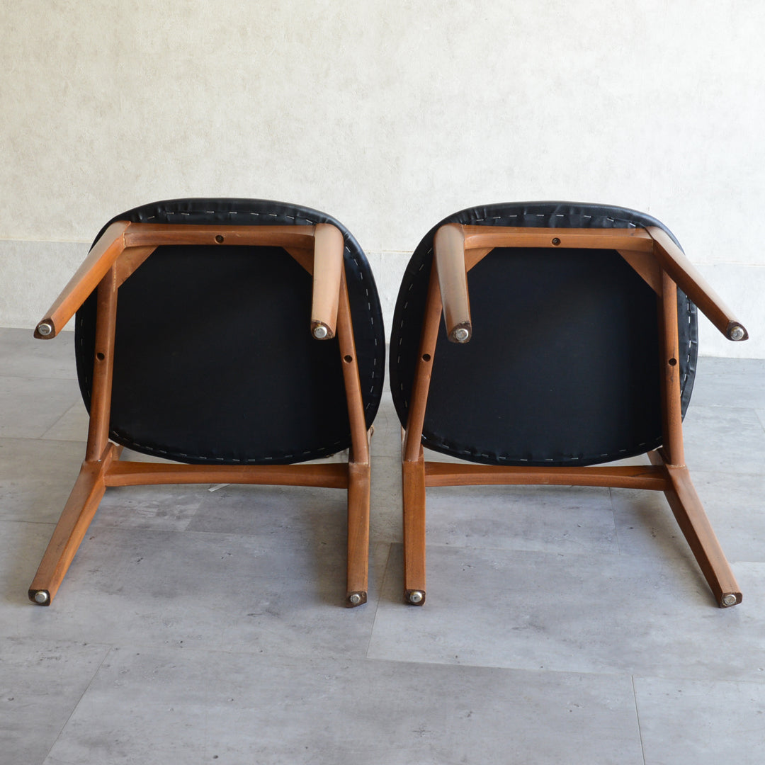 座面は、ブラックの合皮レザーで新たに張替済です。