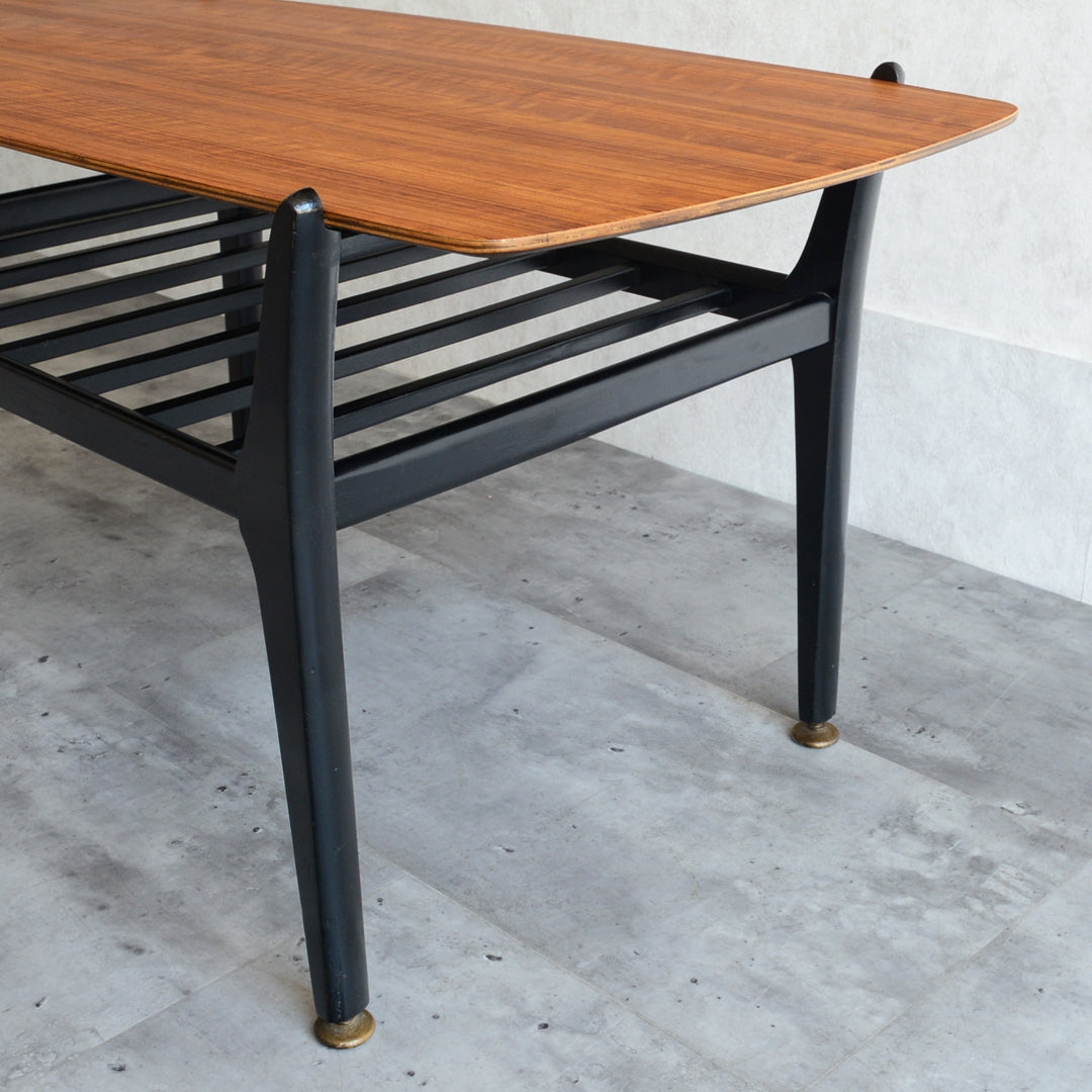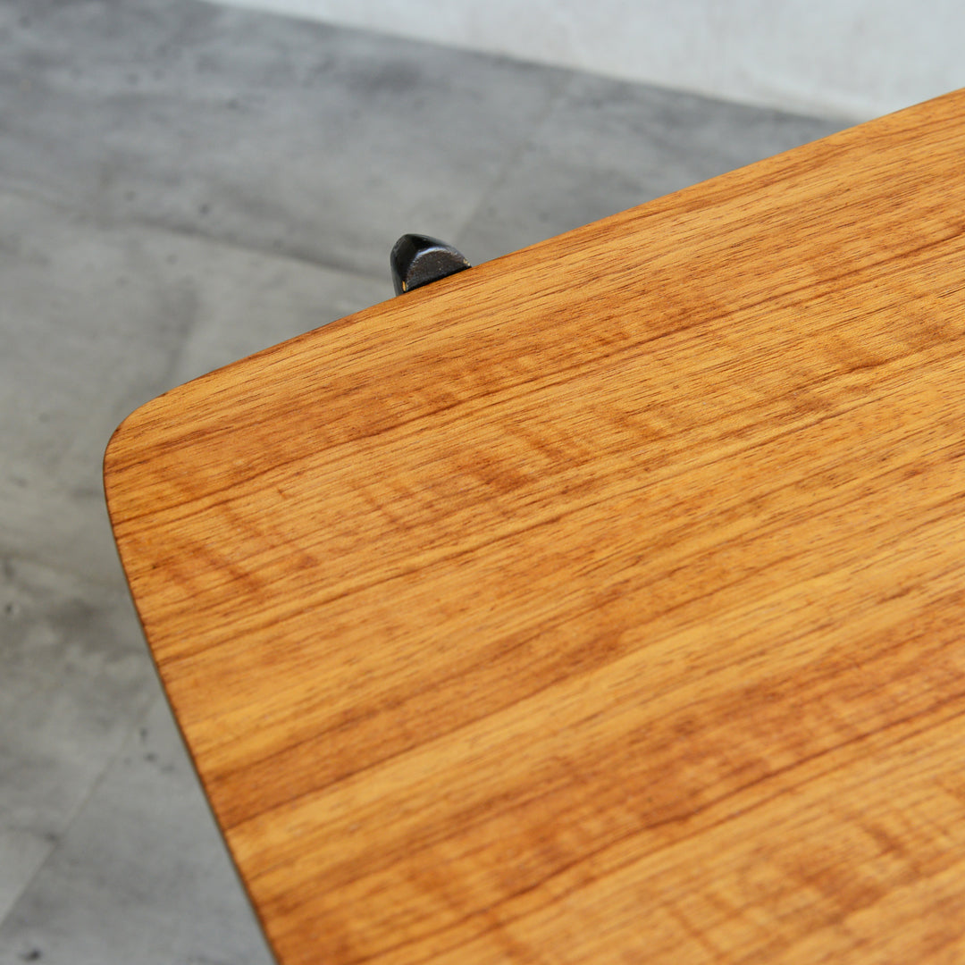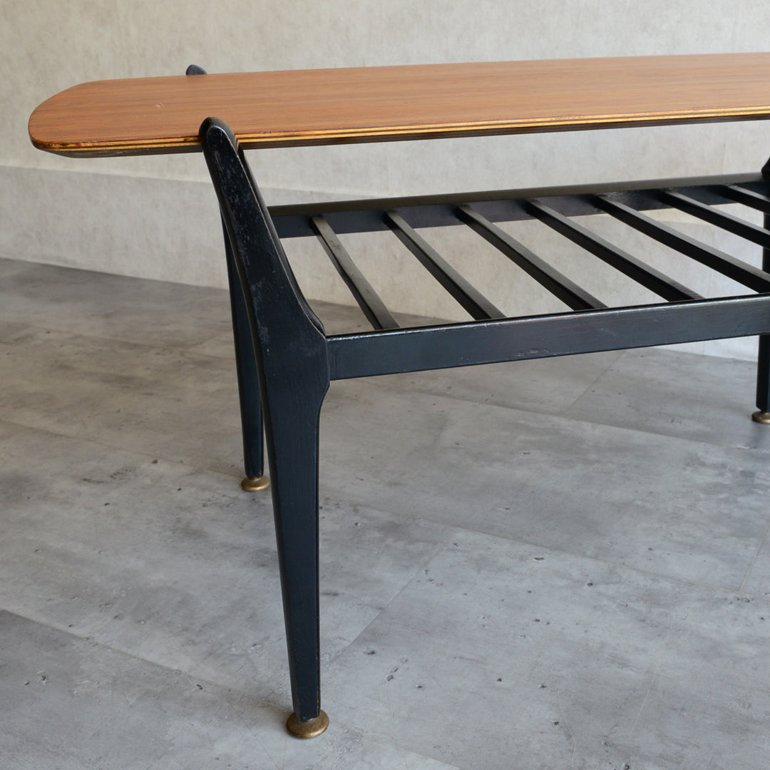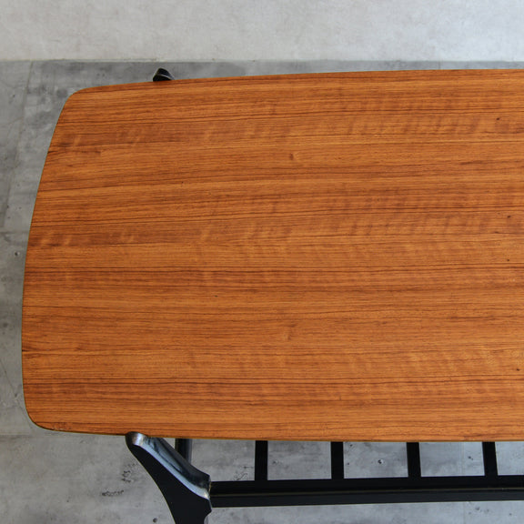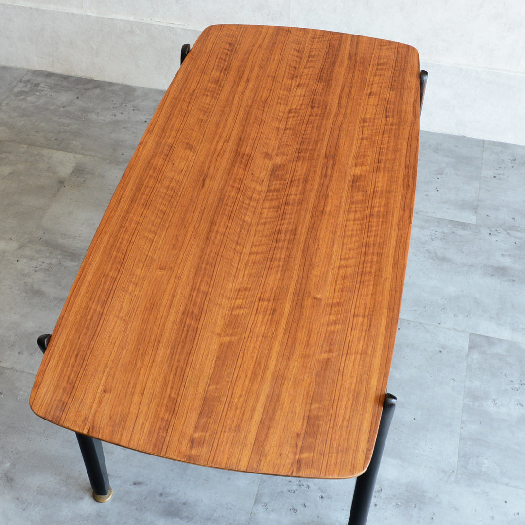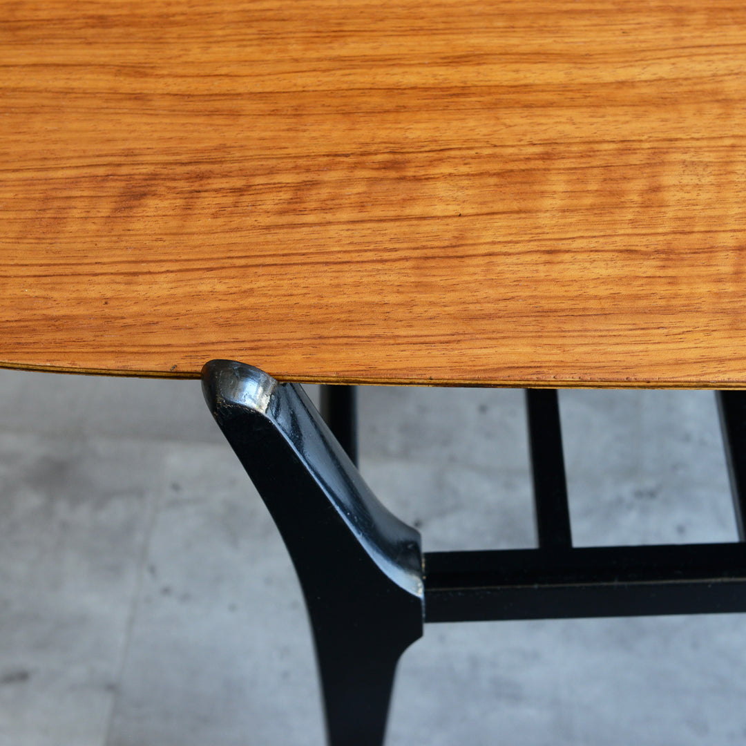 天板のトーラ材の木目も美しく、ブラックにペイントされた木製の脚部もスタイリッシュです。