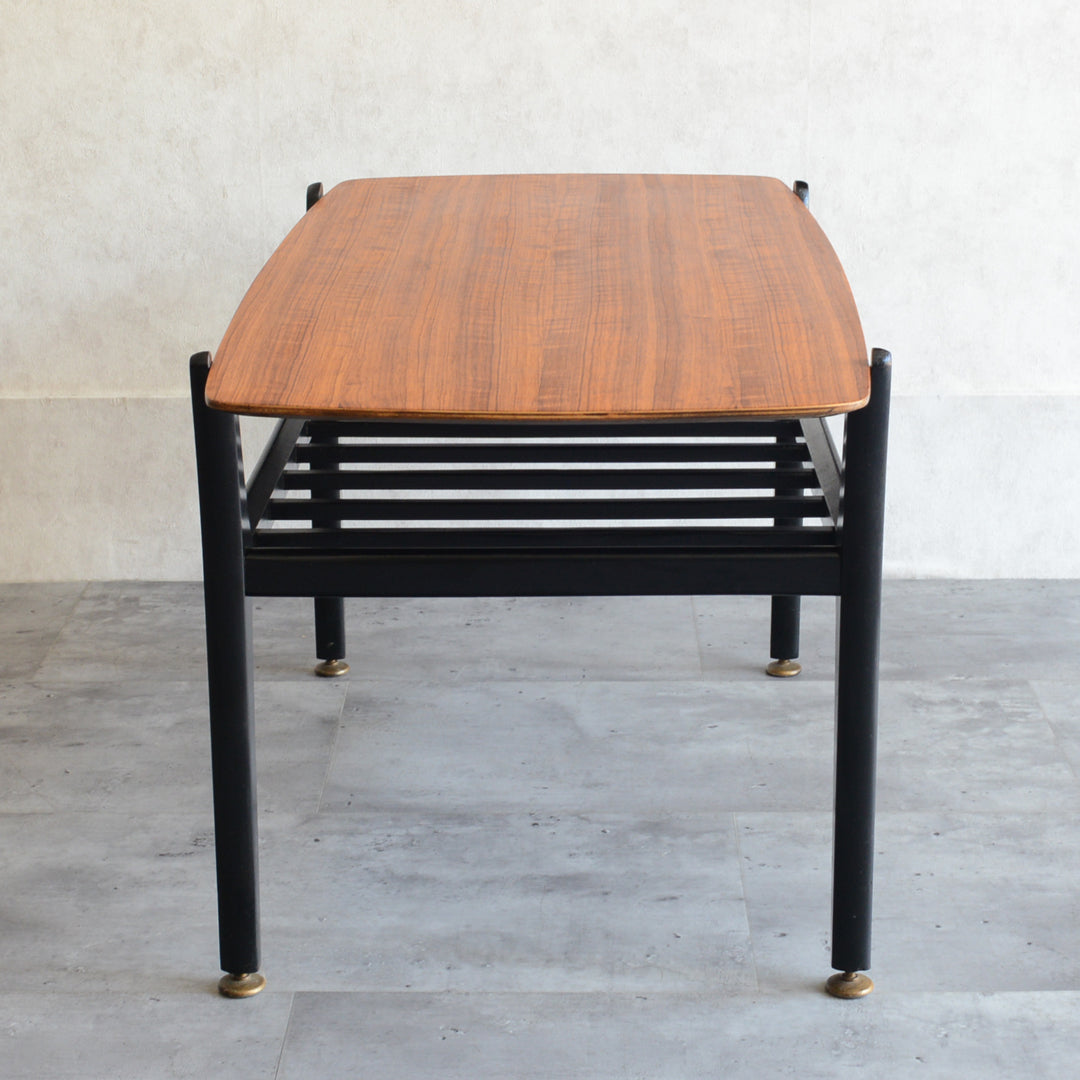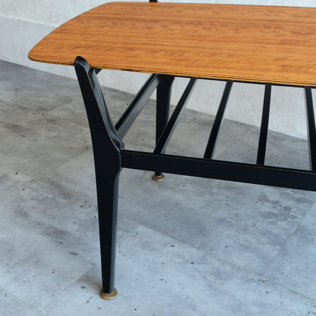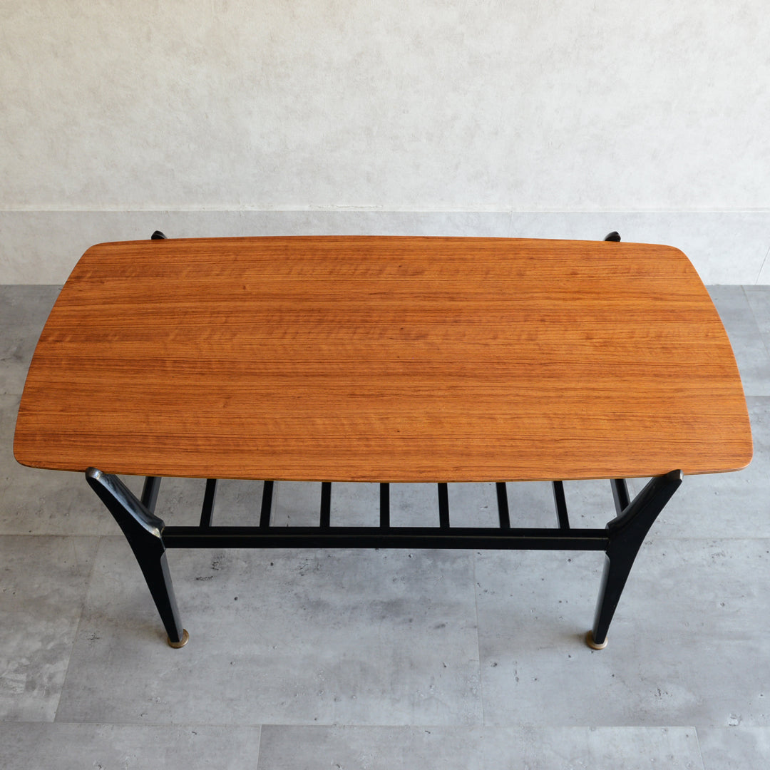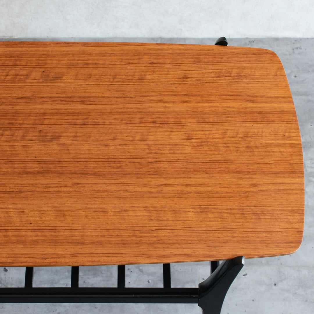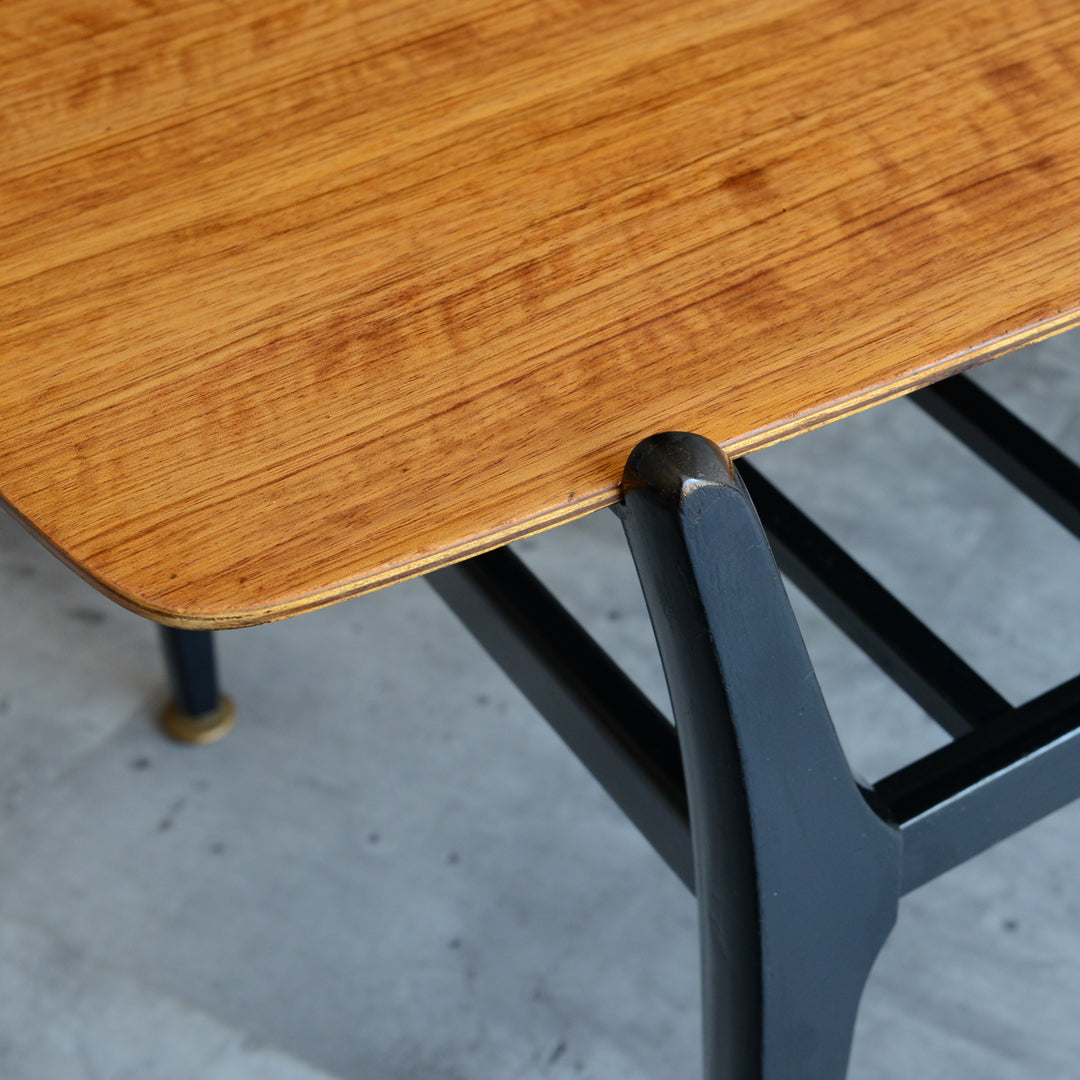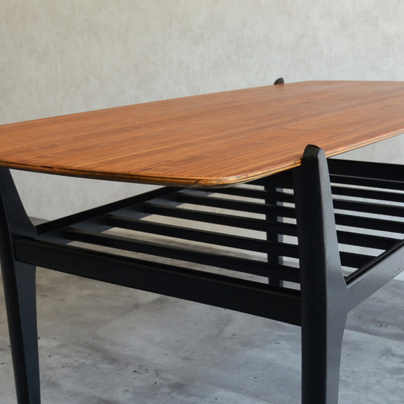 天板のトーラ材の木目も美しく、ブラックにペイントされた木製の脚部もスタイリッシュです。