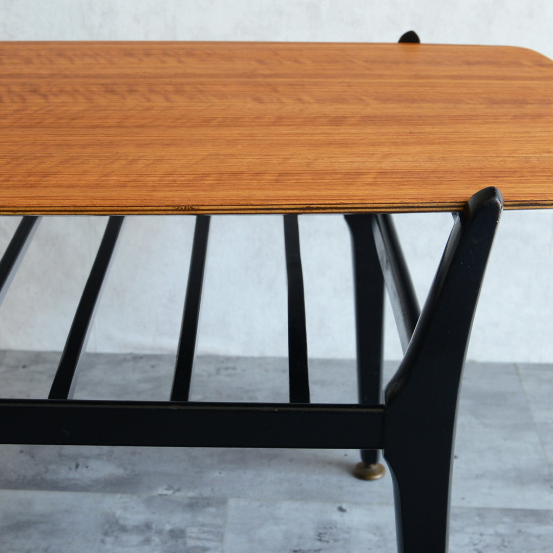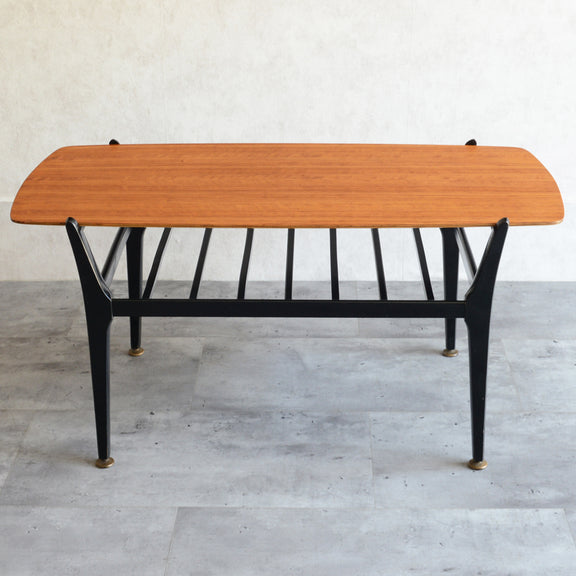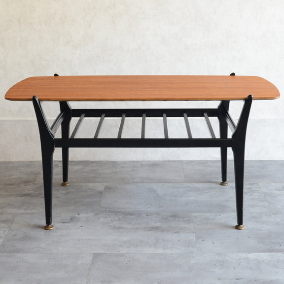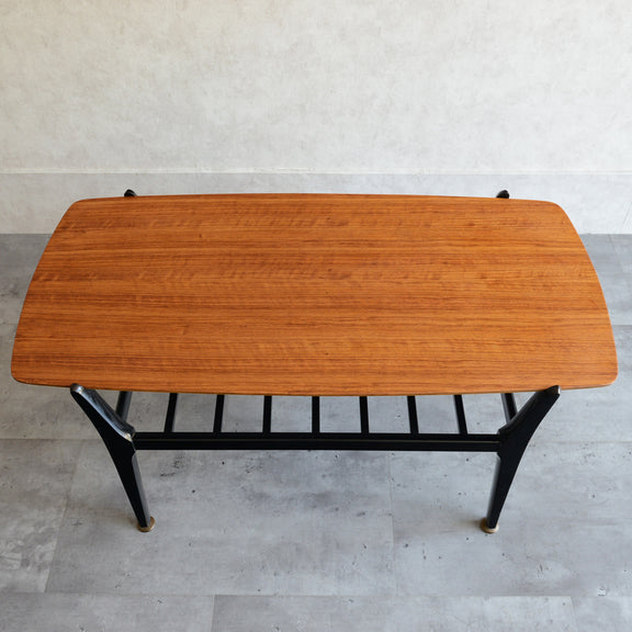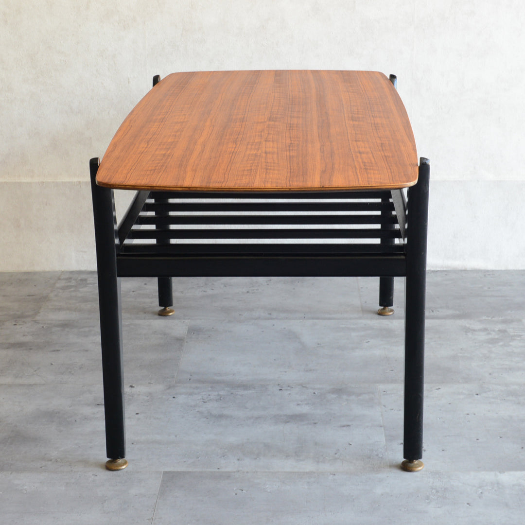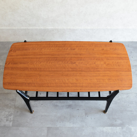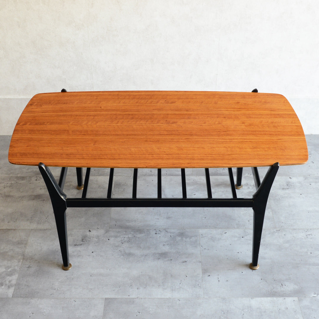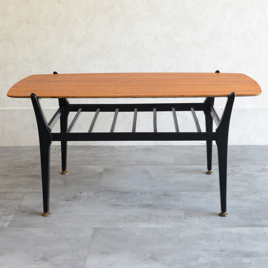 天板のトーラ材の木目も美しく、ブラックにペイントされた木製の脚部もスタイリッシュです。